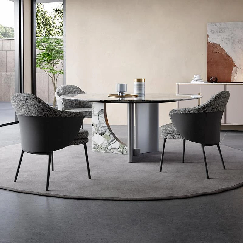 Natural marble round table [53.15 in with turntable] +4 dining chairs