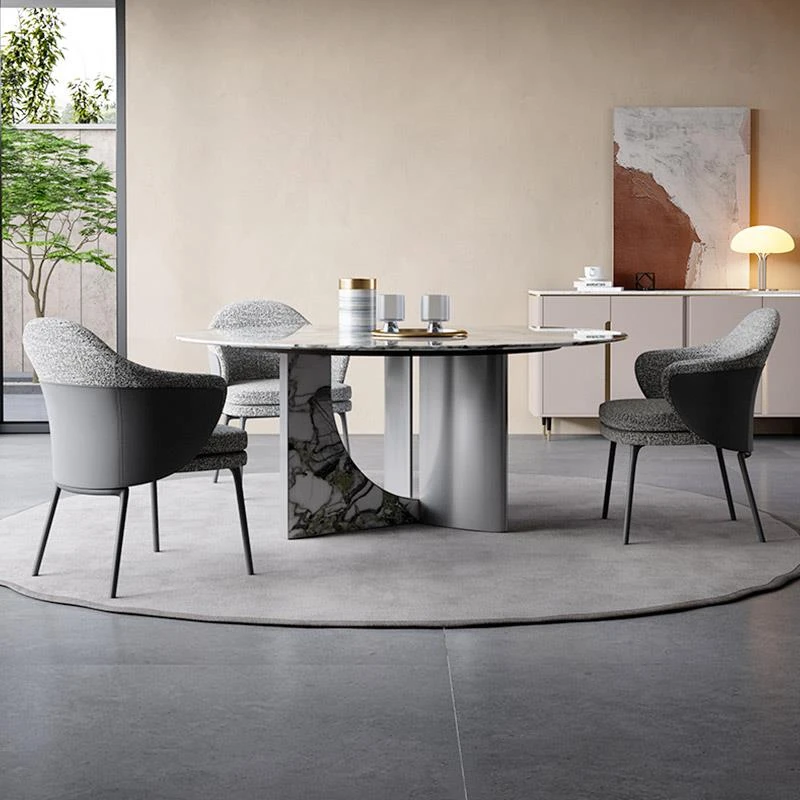 Natural marble round table [59.06 in with turntable] +6 dining chairs