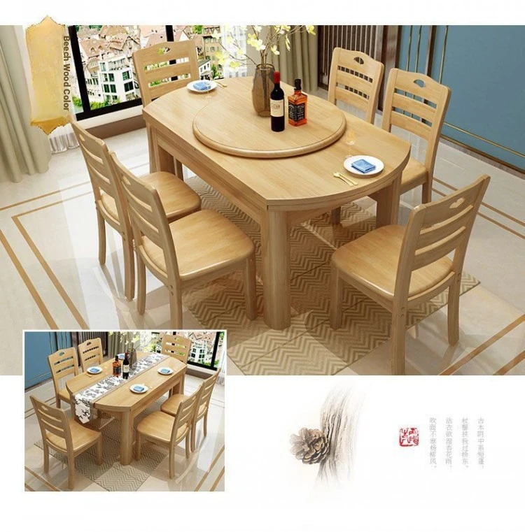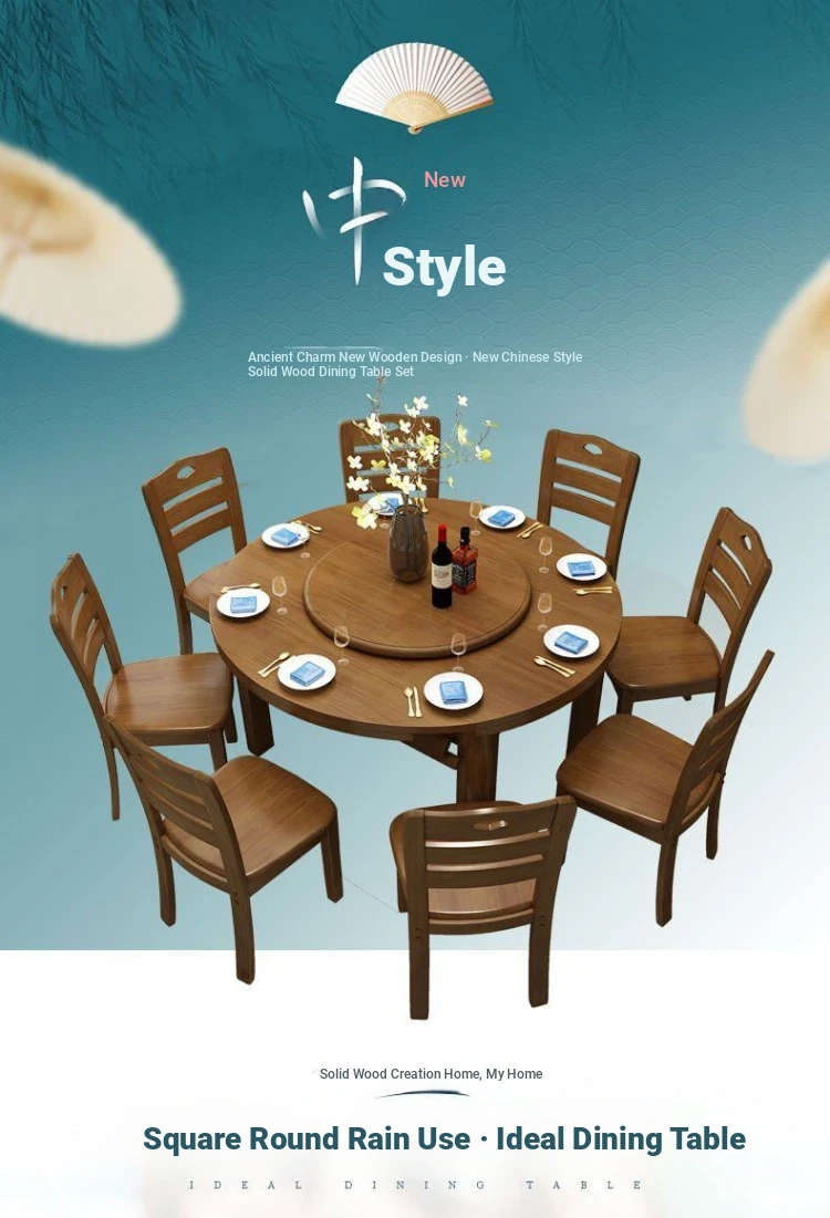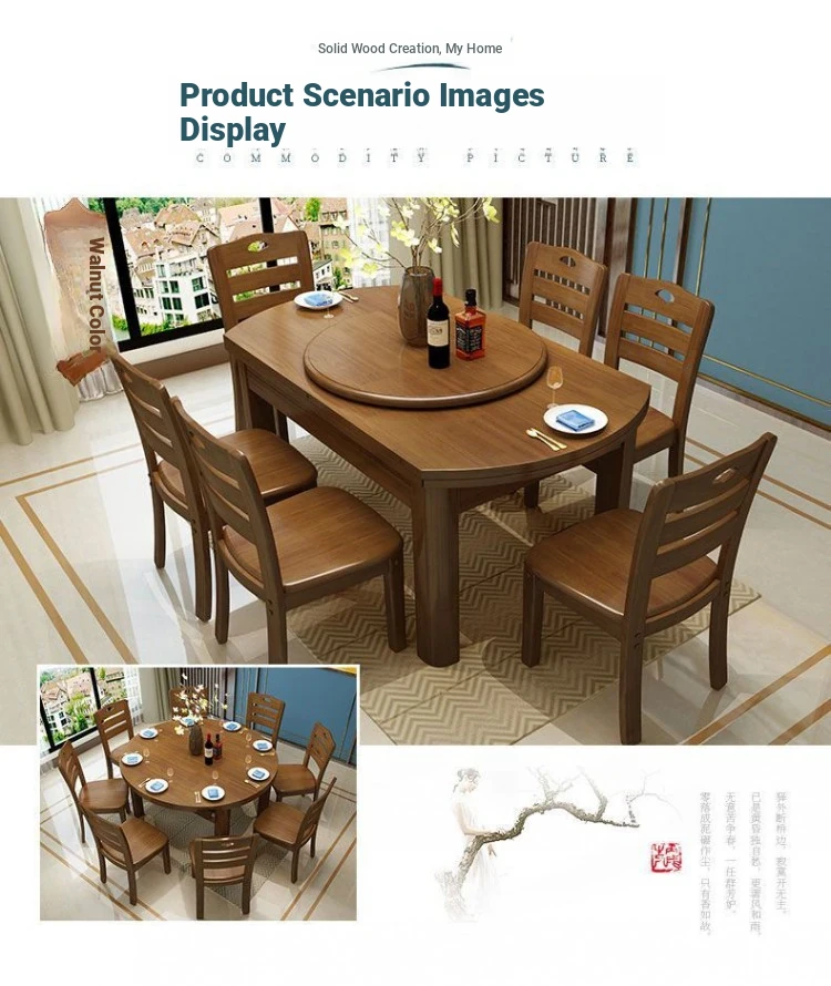 Versatile Solid Wood Dining Table and Chair Set with Rotating Turntable - Space-Saving, Expandable, and Foldable Design for Small Homes and Restaurants