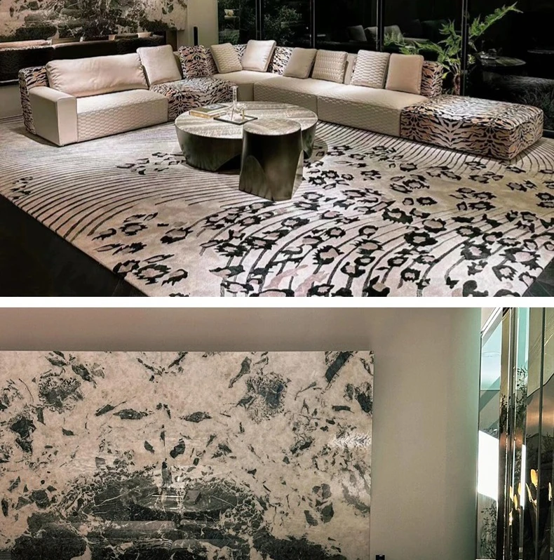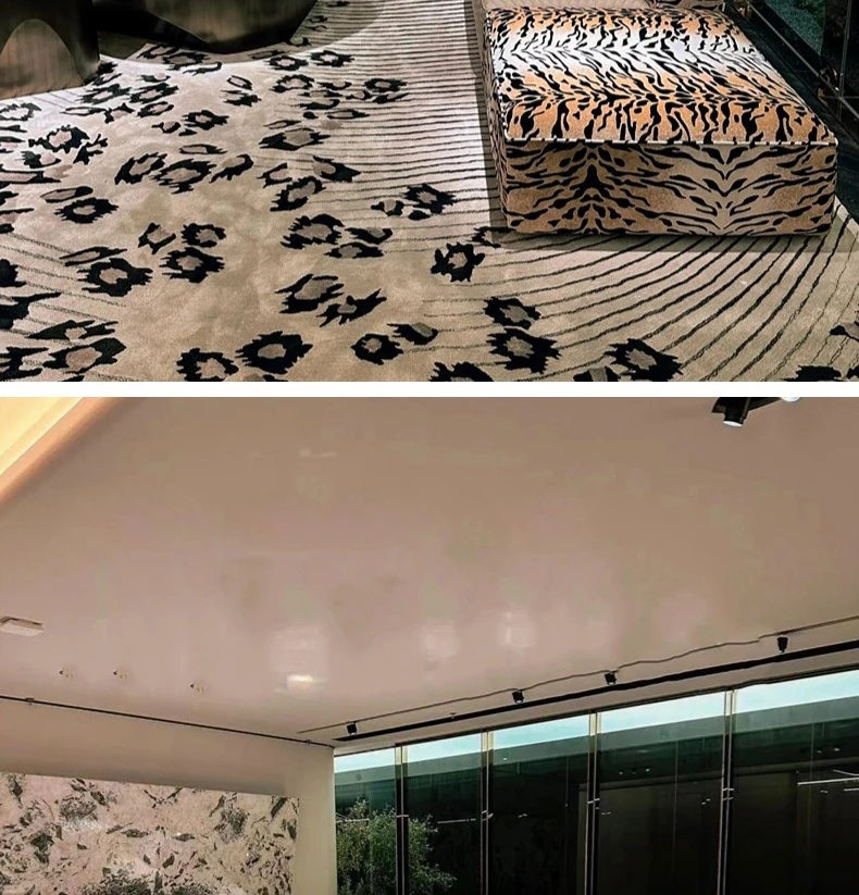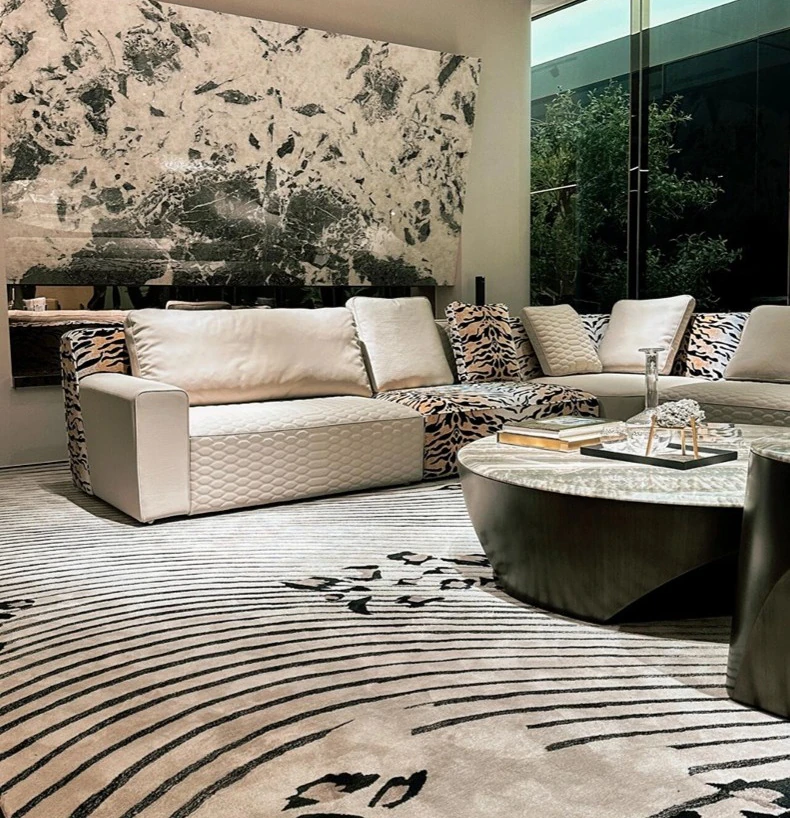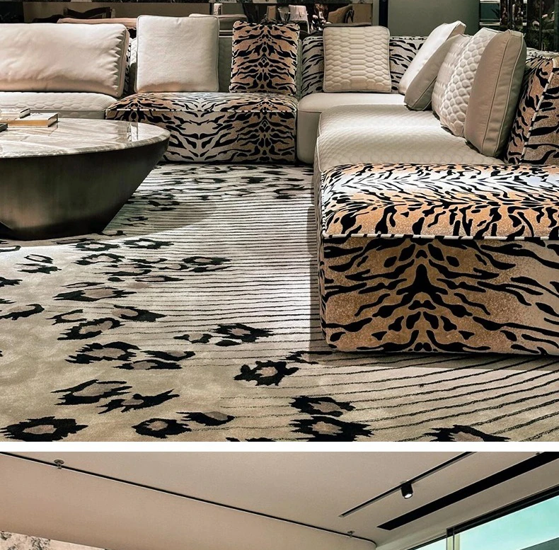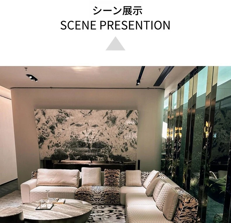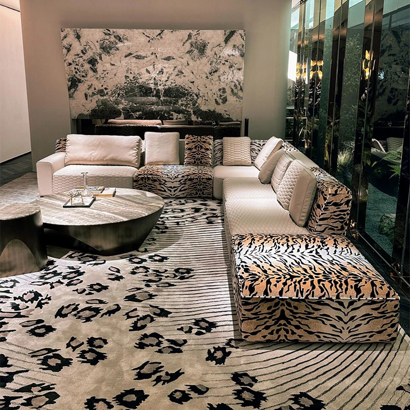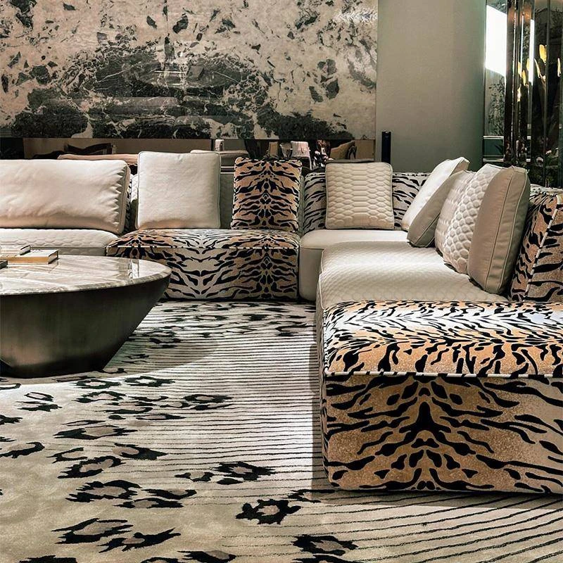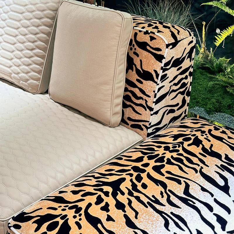 2024年新作!イタリアンラグジュアリー本革ソファー – ヴィラのリビングにぴったりな角型ヒョウ柄ファブリック・マルチモジュールソファ!洗練されたデザインと快適さを兼ね備えた、あなたの空間を格上げする一品。