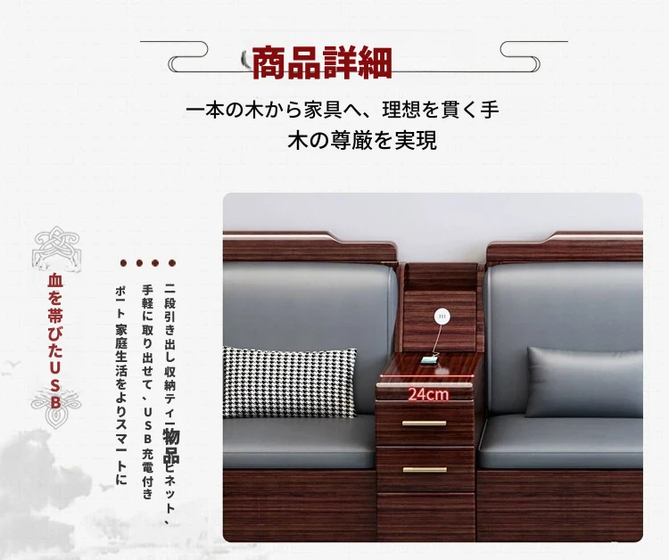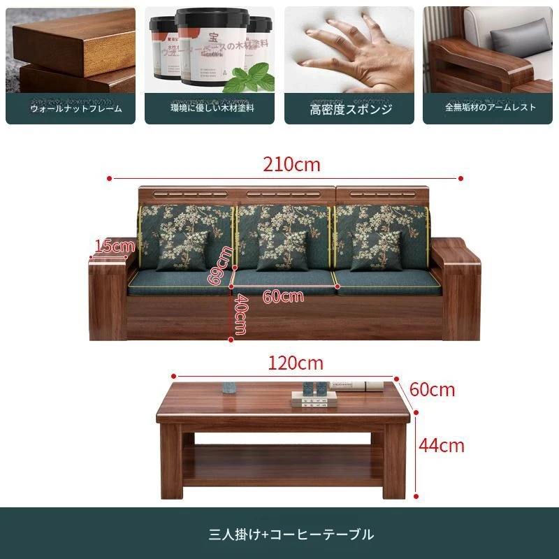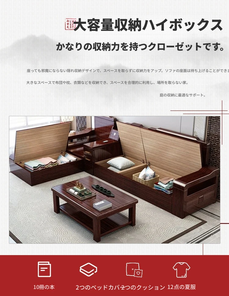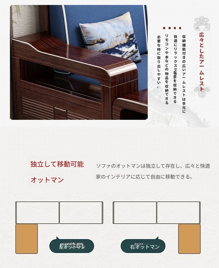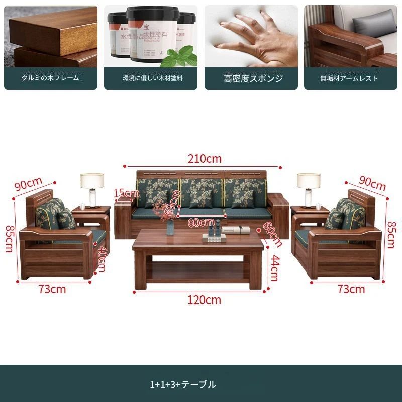 三人用+茶水キャビネット+貴妃ソファ+茶卓