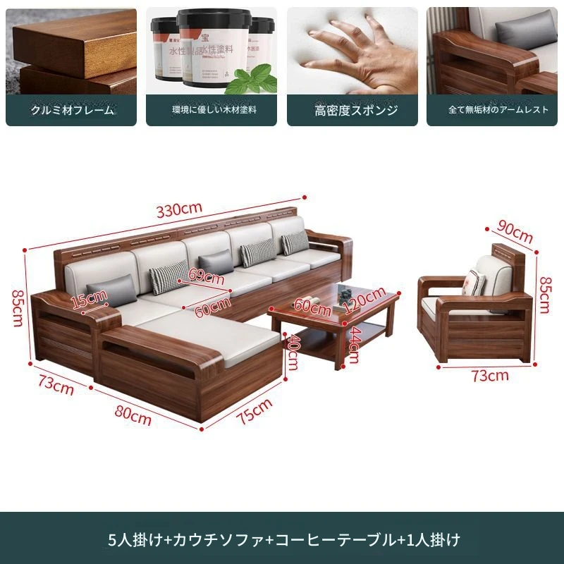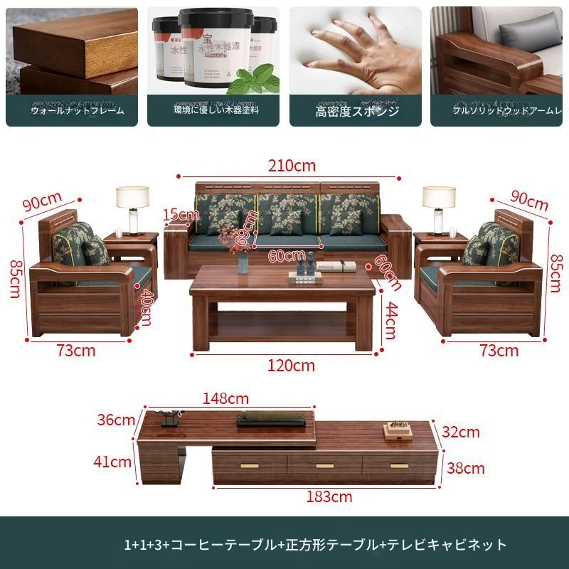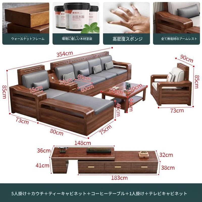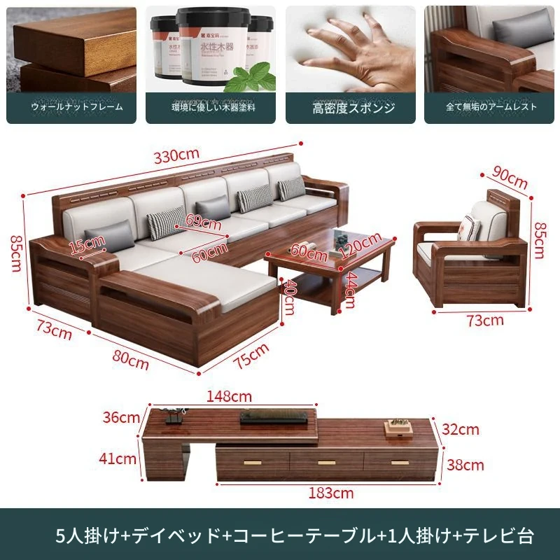 五人用+貴妃ソファ+茶卓+一人用+テレビキャビネット