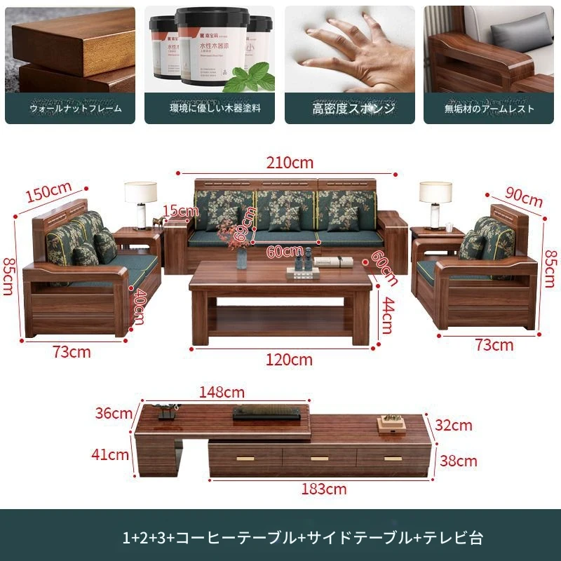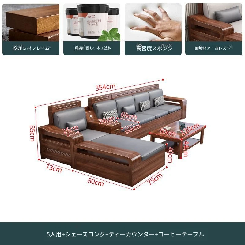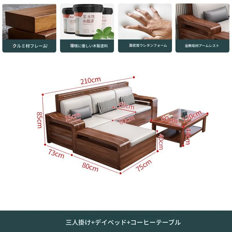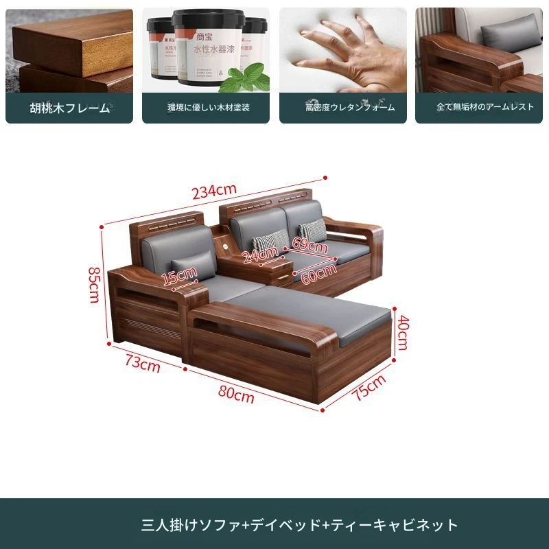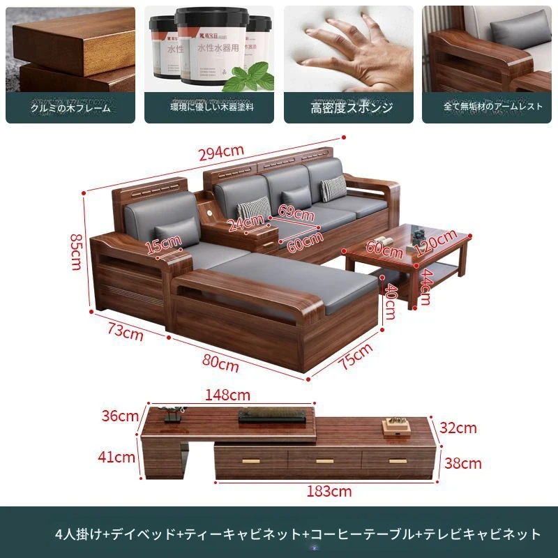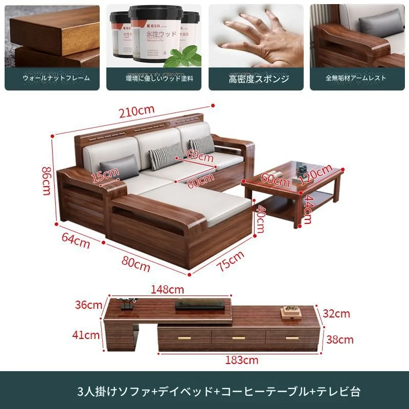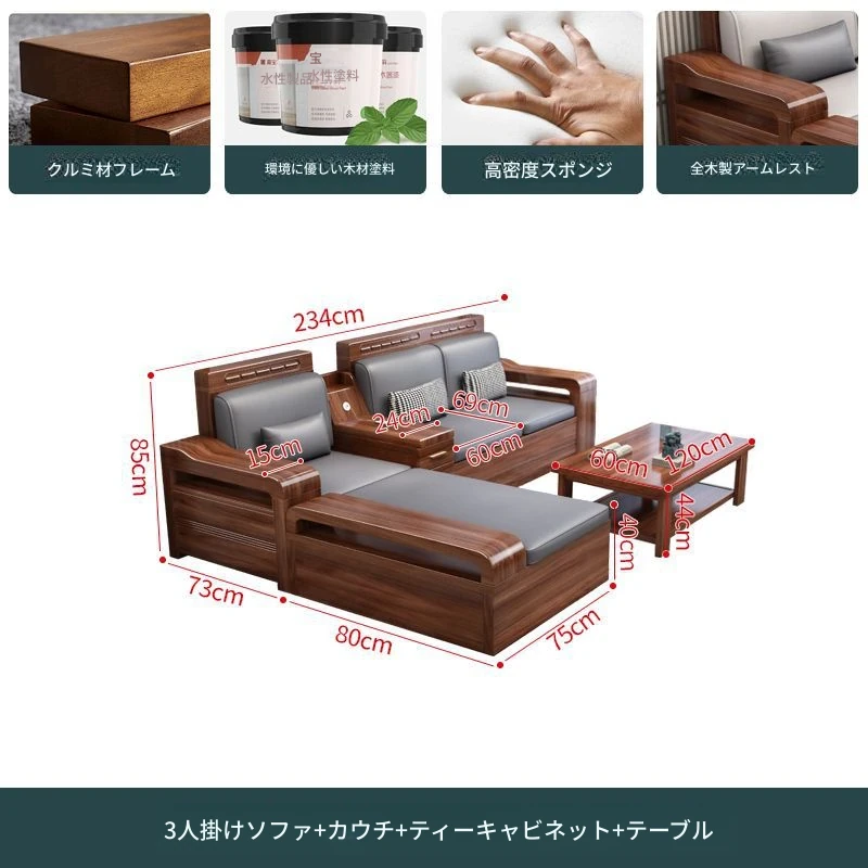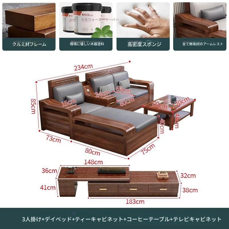 三人用+貴妃ソファ+茶卓+テレビキャビネット