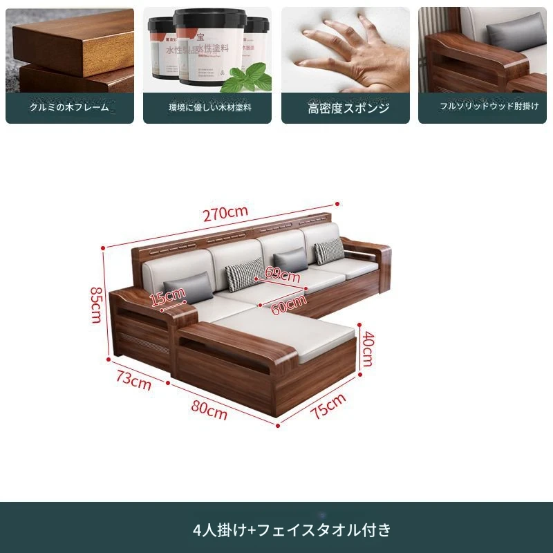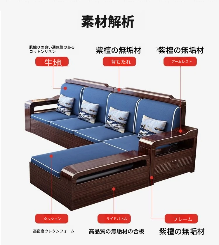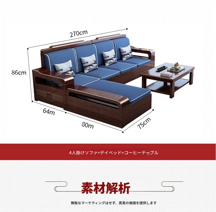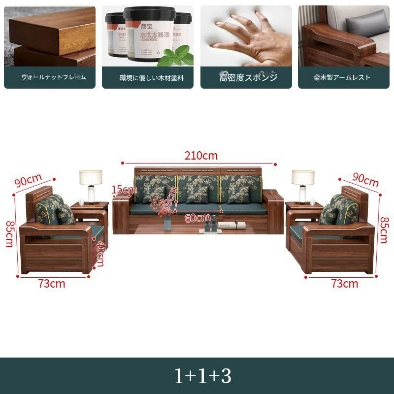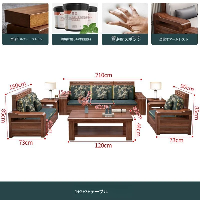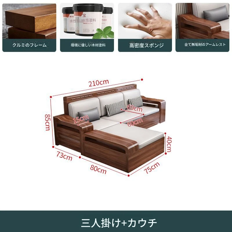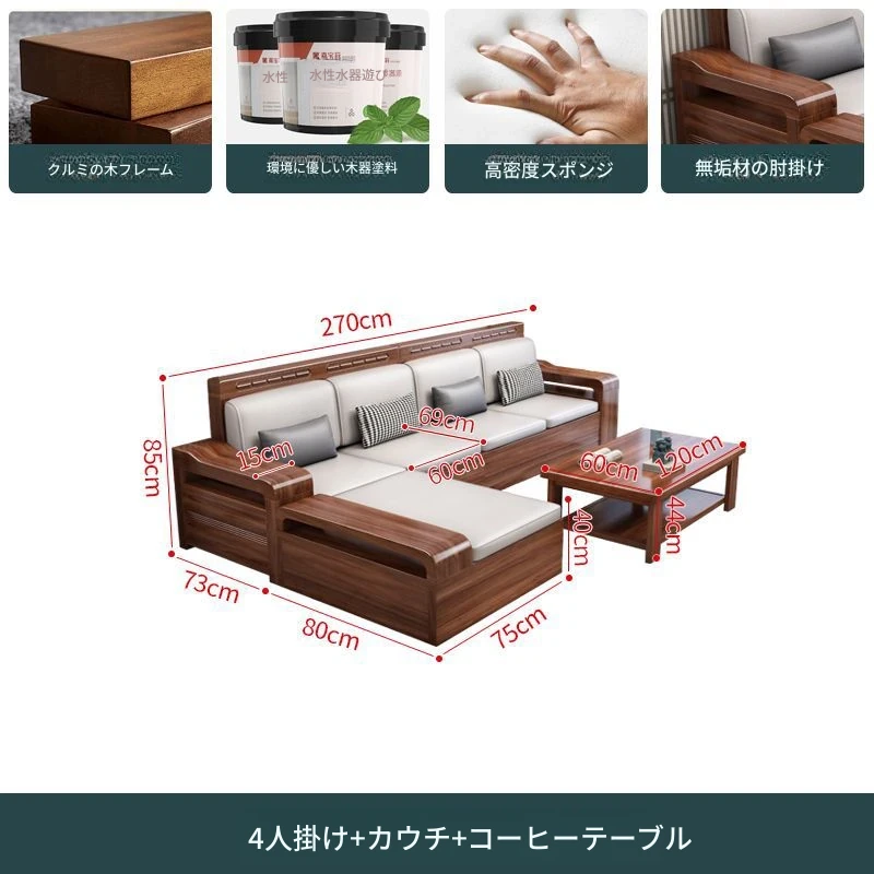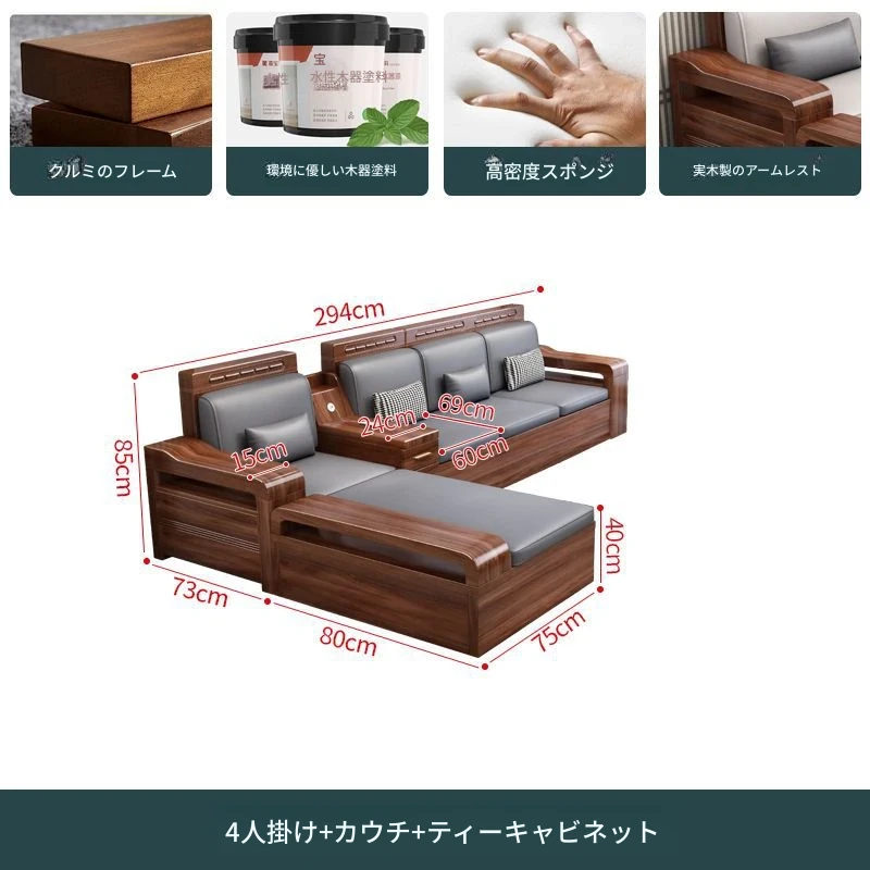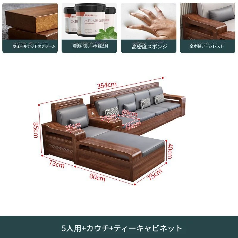 三人用+貴妃ソファ+茶卓+テレビキャビネット