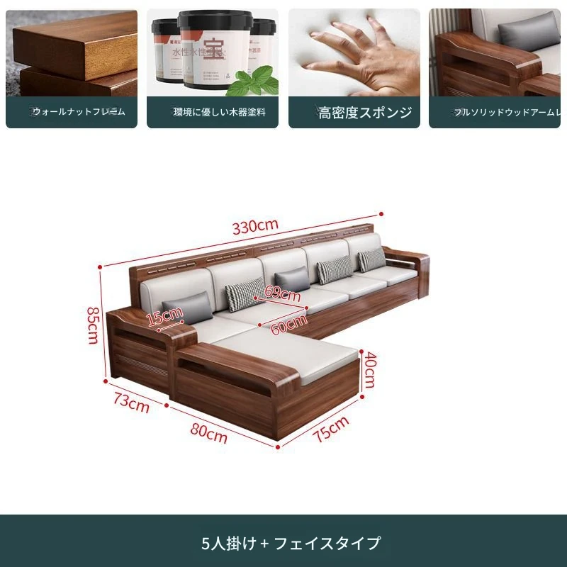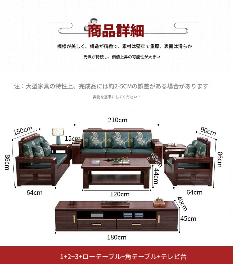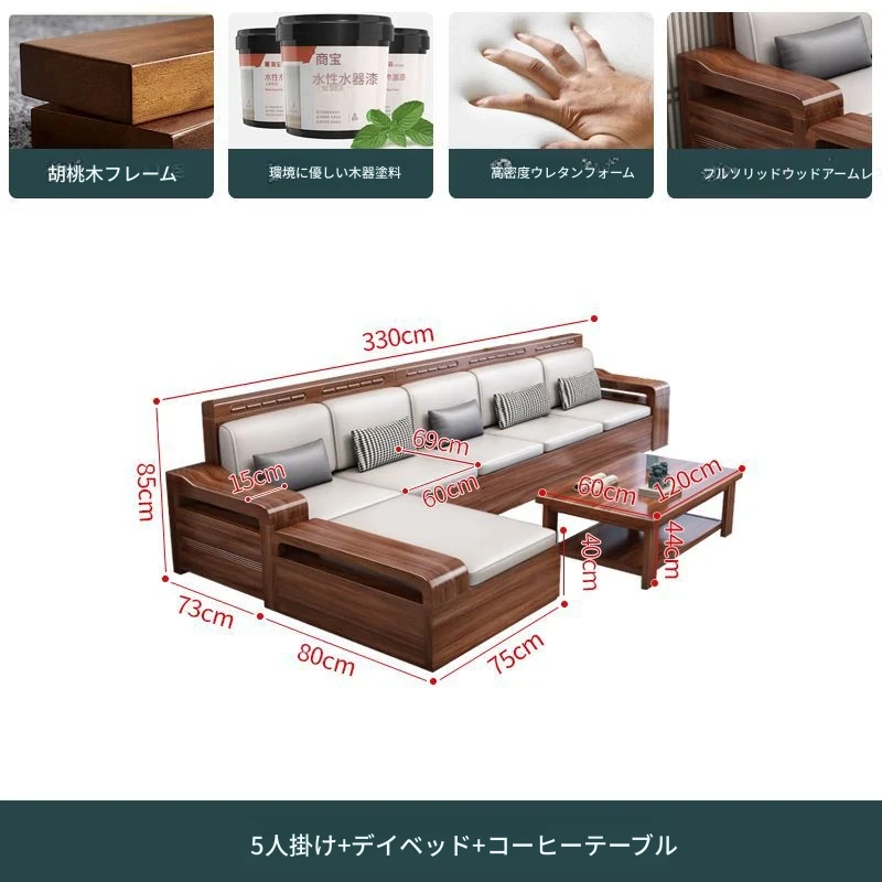 五人用+貴妃ソファ+茶水キャビネット+茶卓+テレビキャビネット