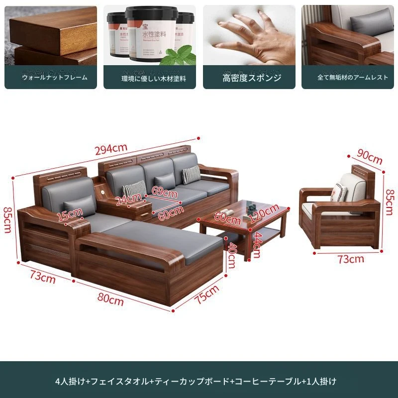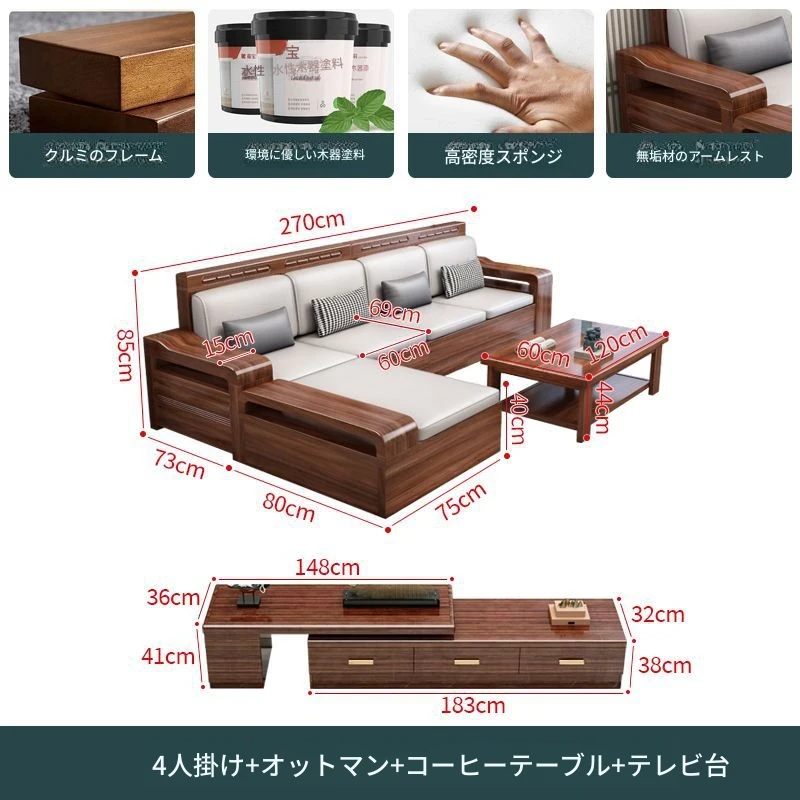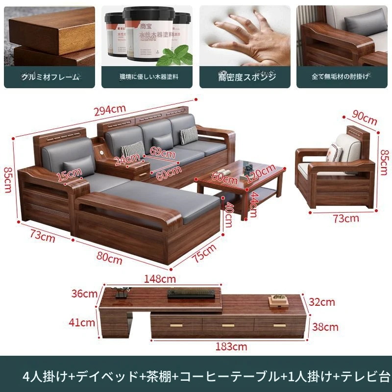 四人用+貴妃ソファ+茶卓+テレビキャビネット