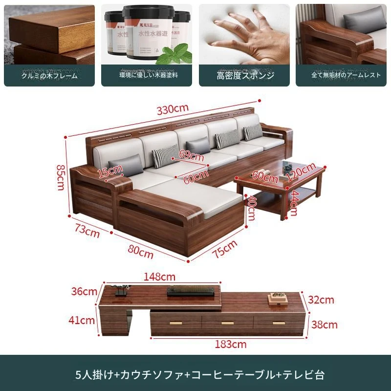 五人用+貴妃ソファ+茶卓+テレビキャビネット