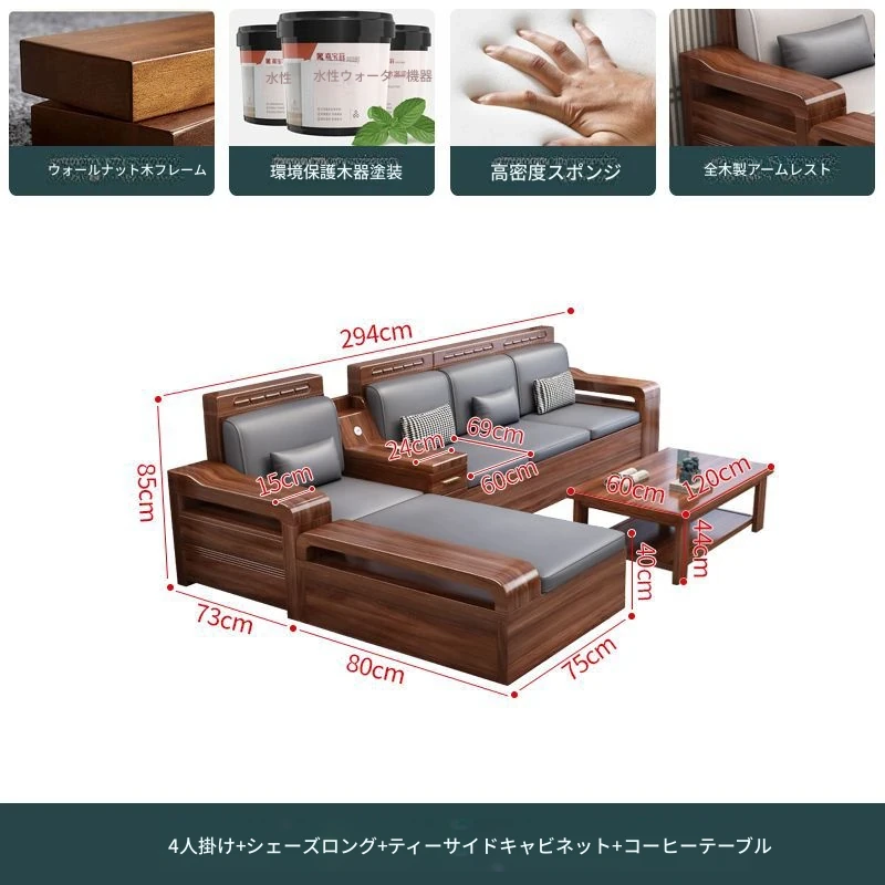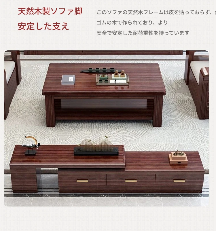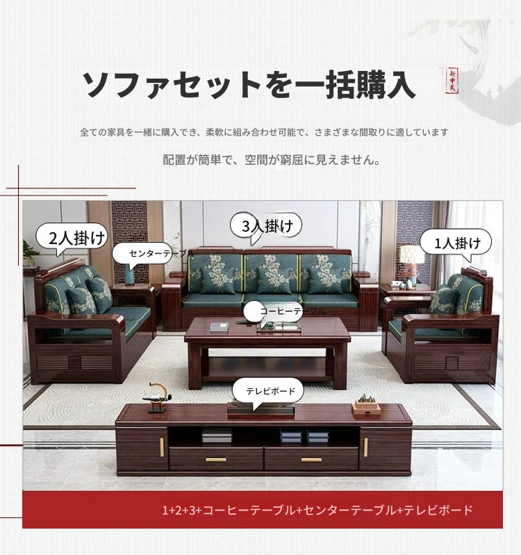 四人用+貴妃ソファ+茶水キャビネット+茶卓+テレビキャビネット