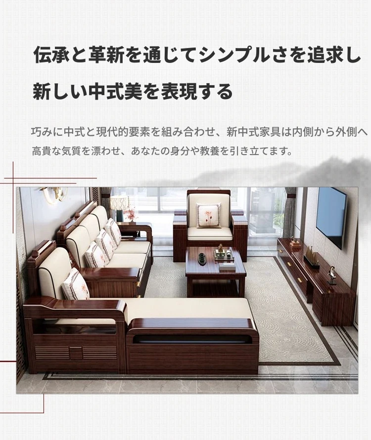 三人用+茶水キャビネット+貴妃ソファ+茶卓+テレビキャビネット