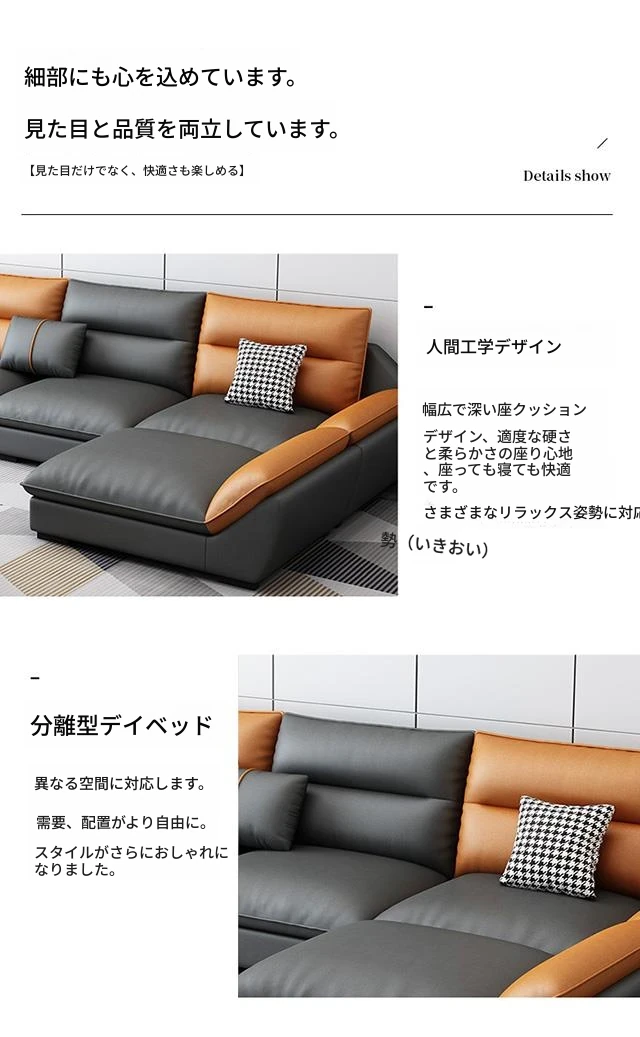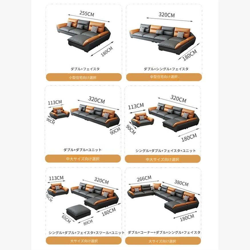 ダブルソファ+分体型デイベッド+フットスツール+一人用3.2メートル