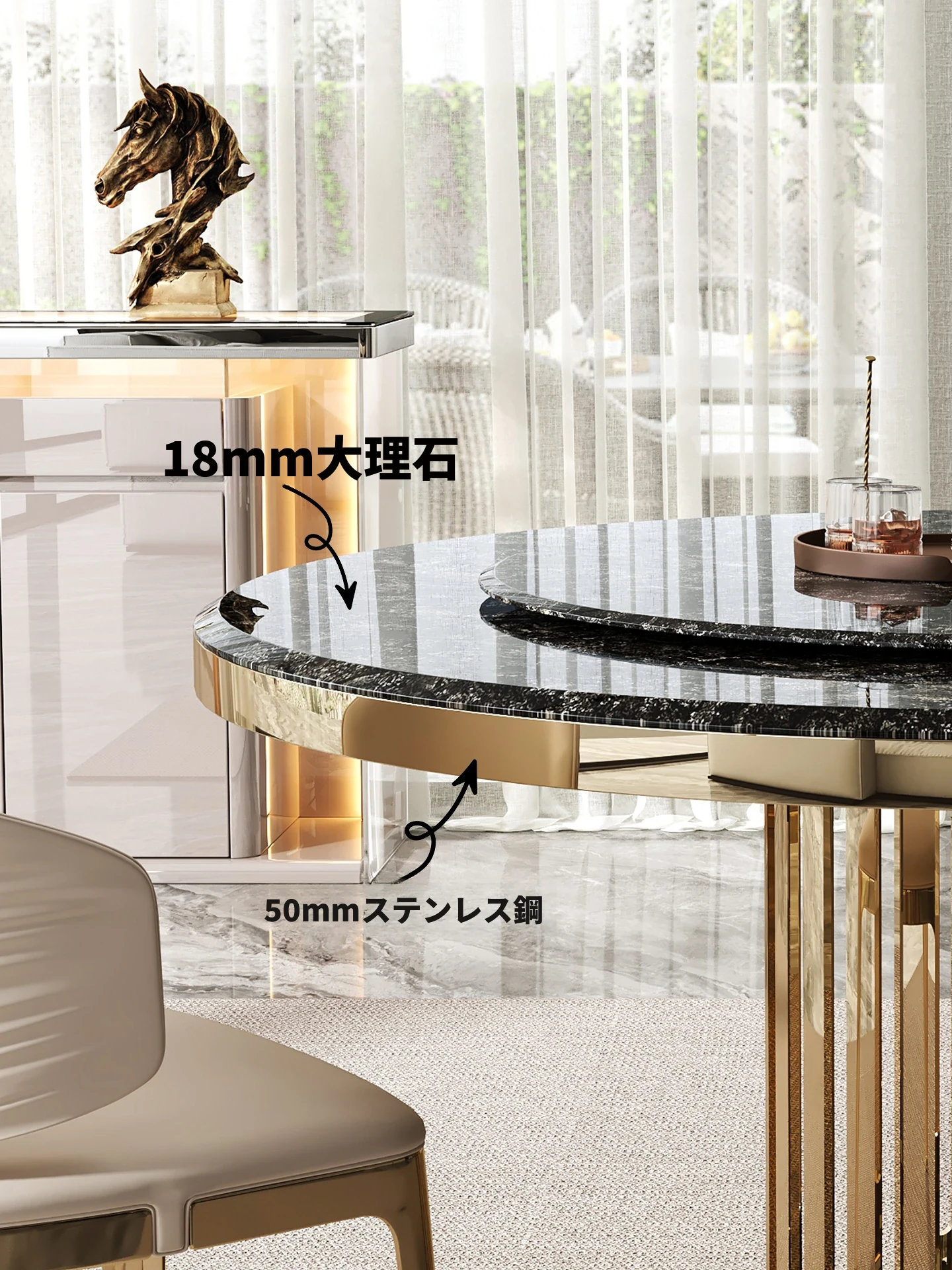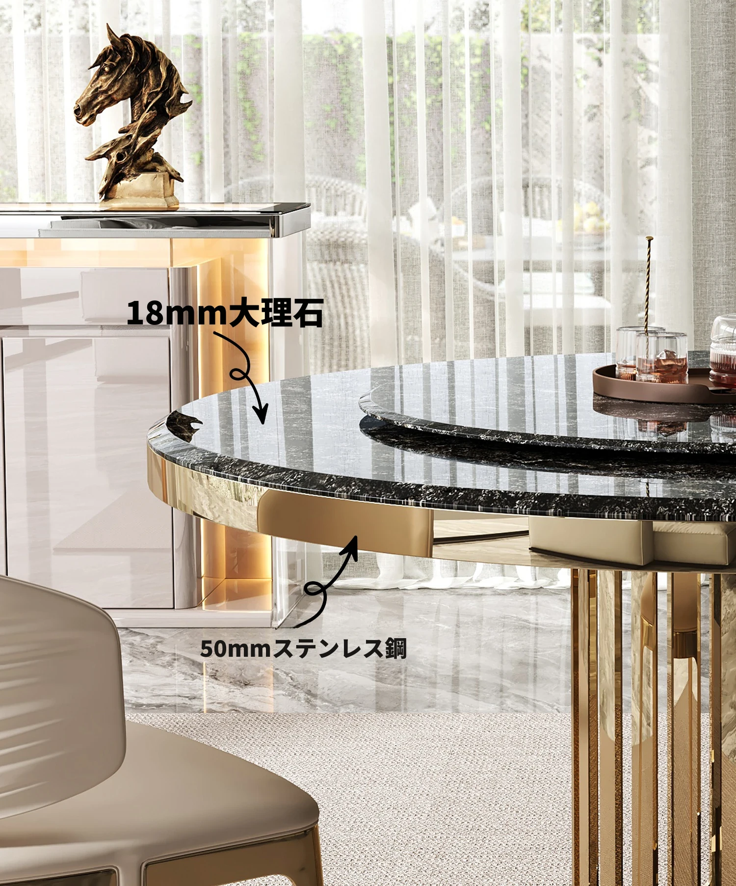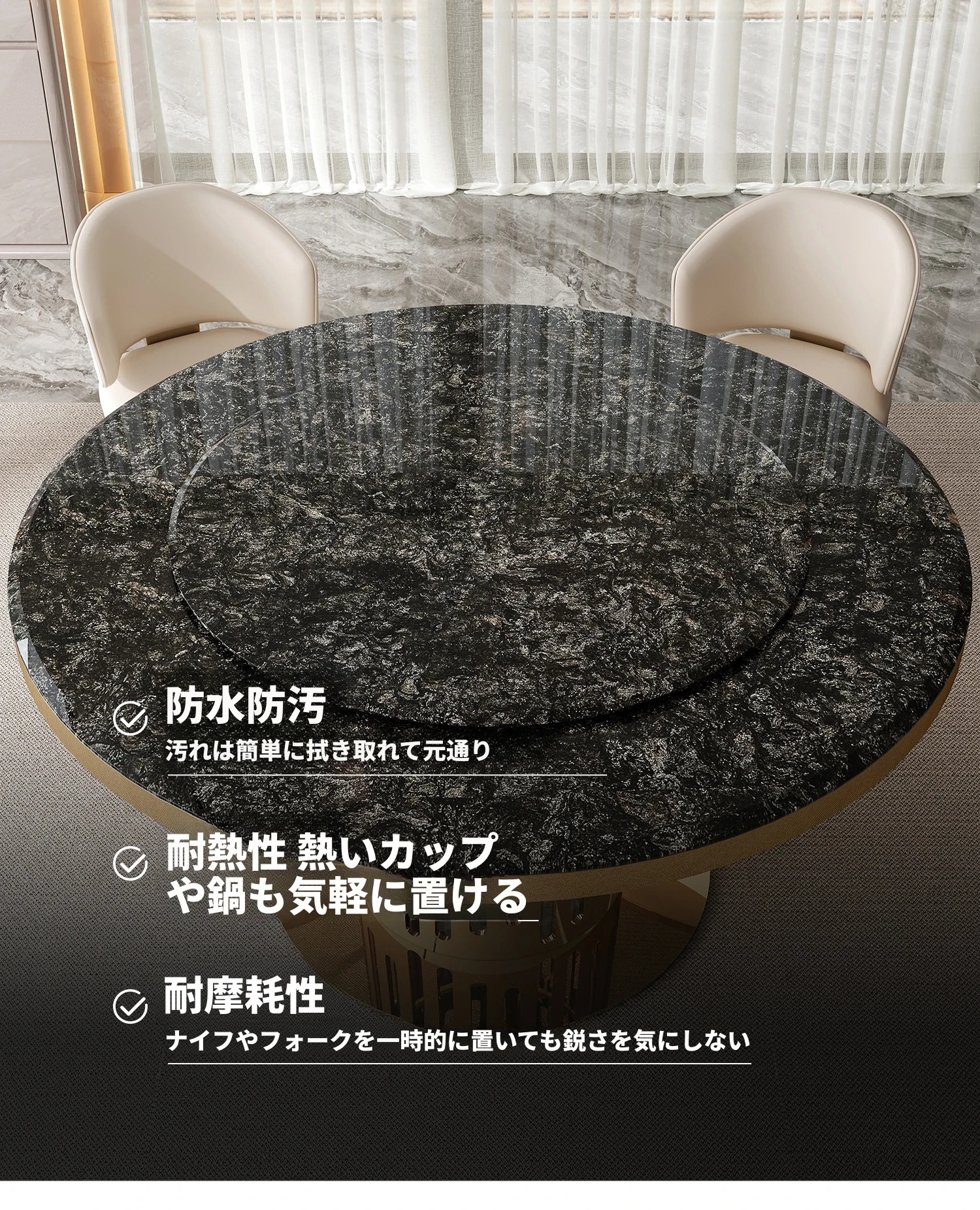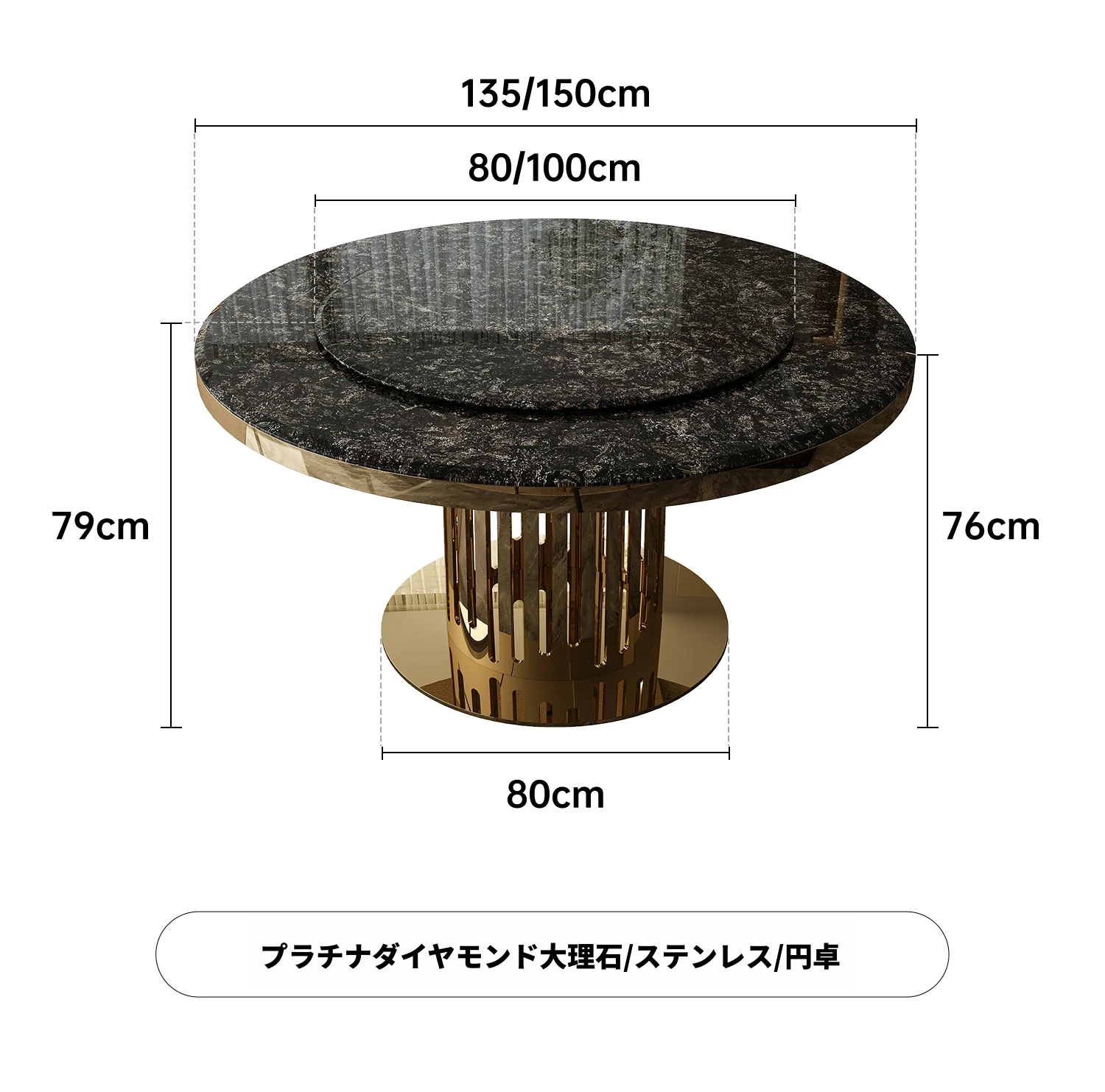 1.35メートル/プラチナダイヤモンド大理石ダイニングテーブル + 回転台