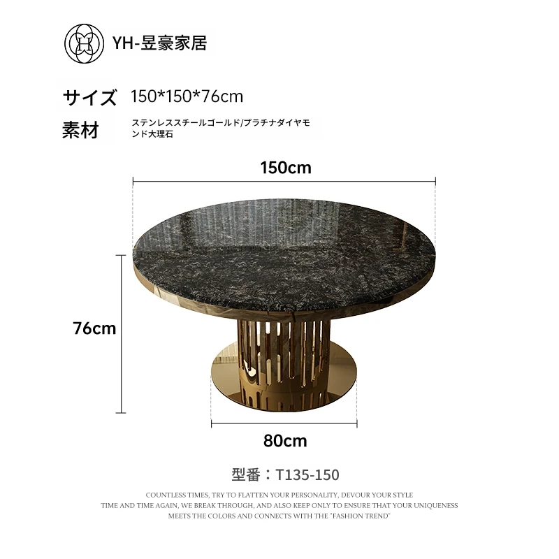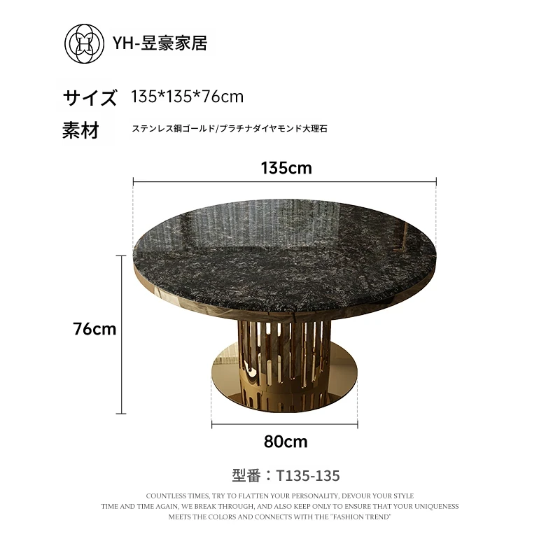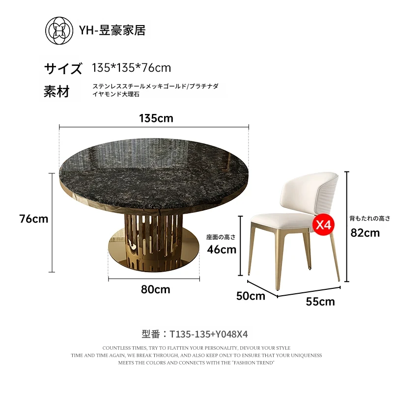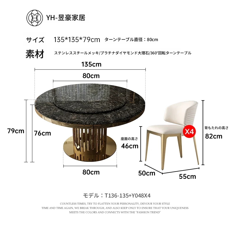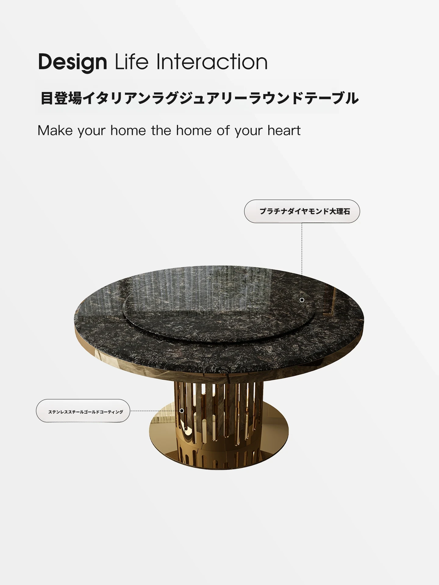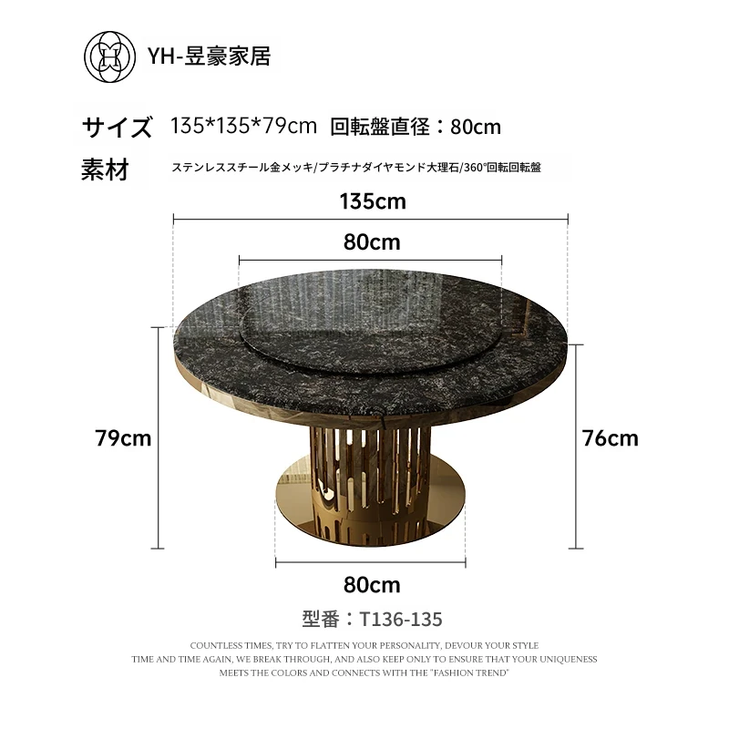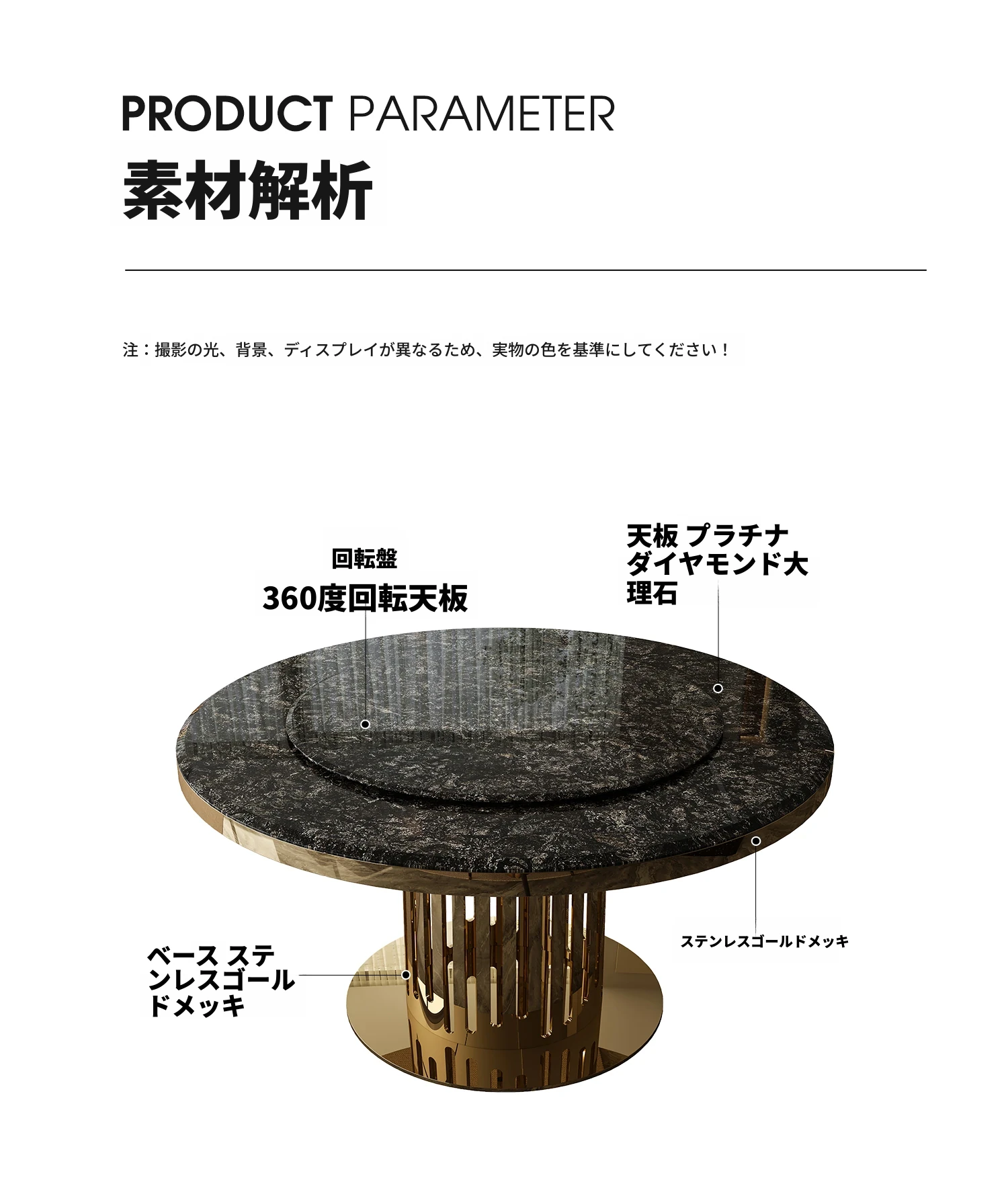 1.35メートル/プラチナダイヤモンド大理石ダイニングテーブル + 回転台