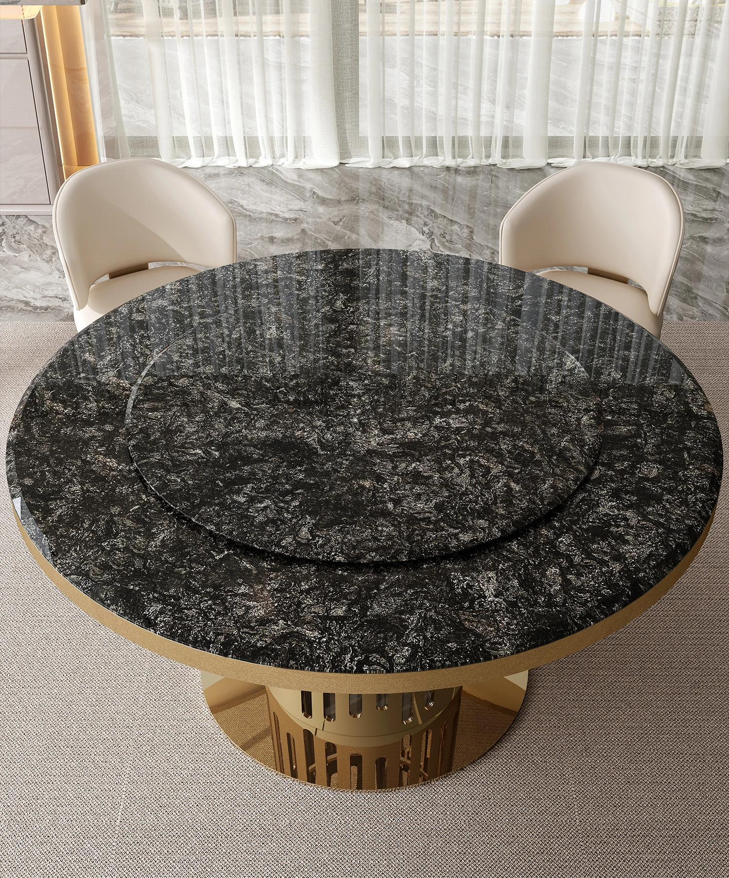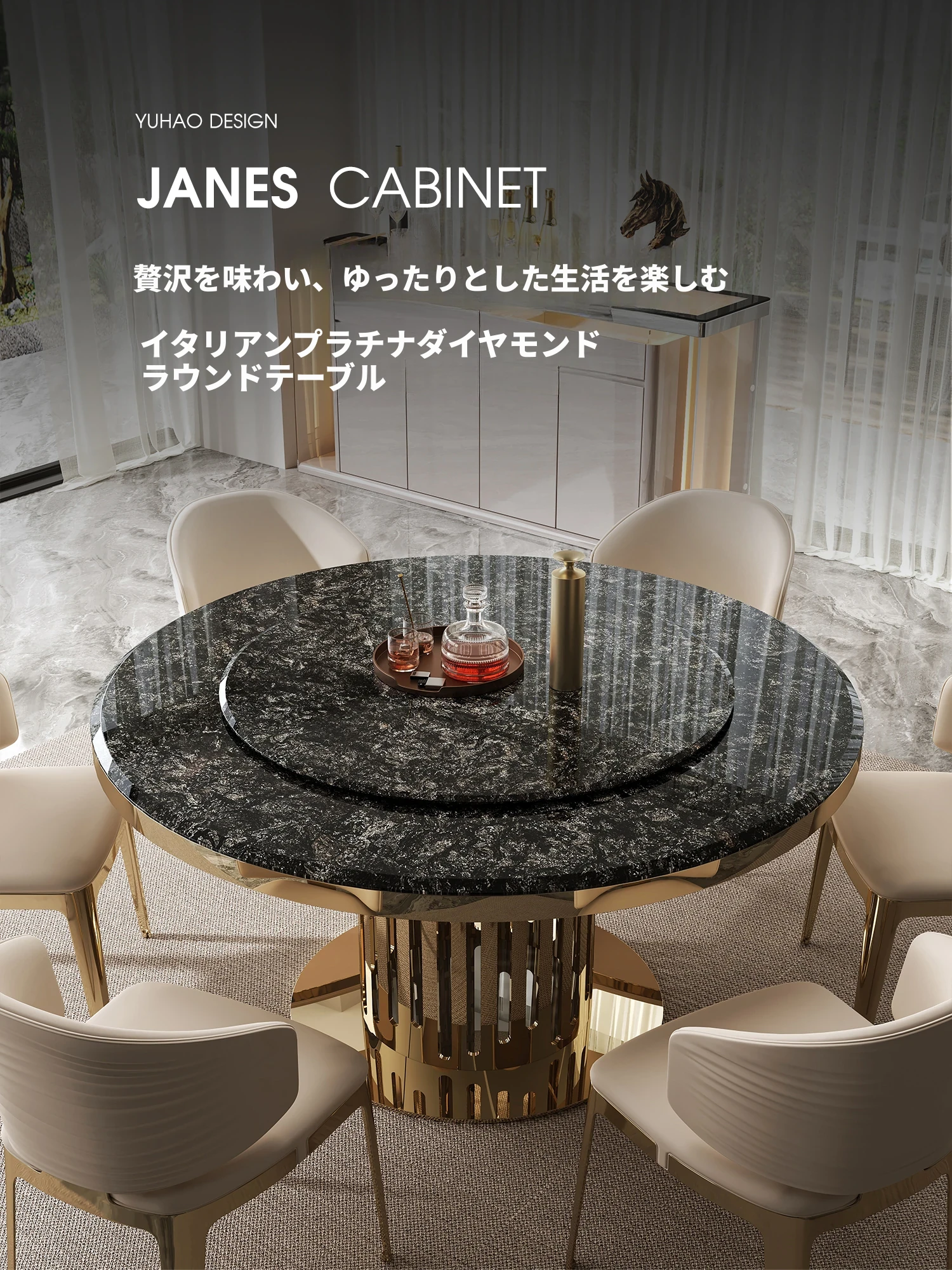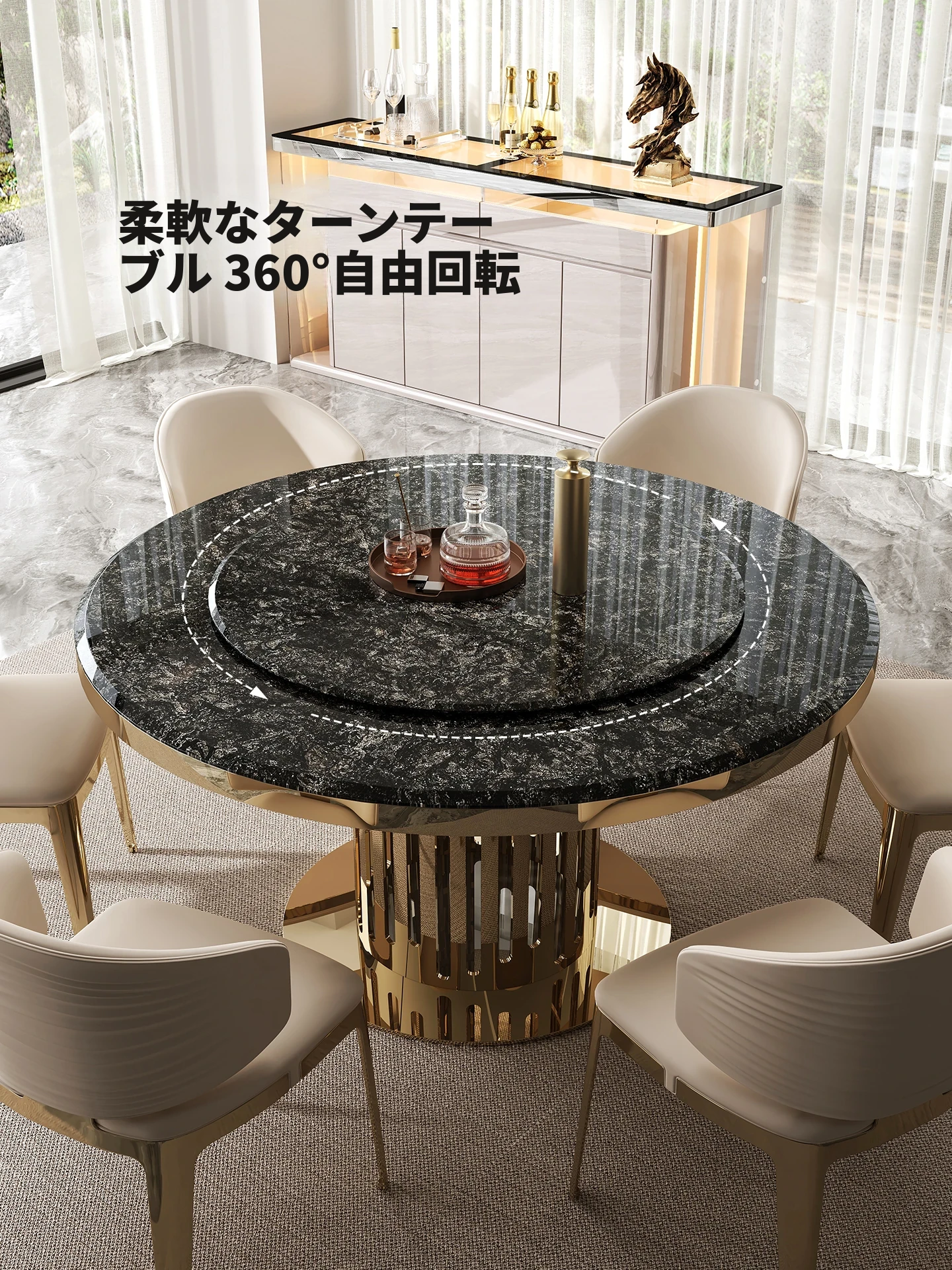 1.5メートル/プラチナダイヤモンド大理石ダイニングテーブル + 回転台