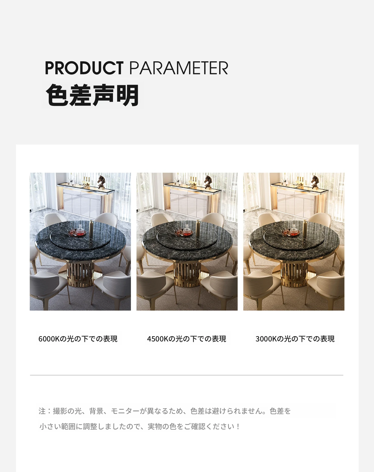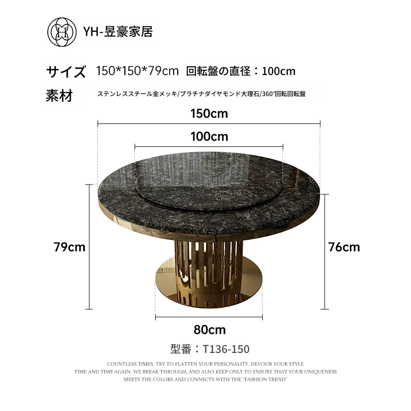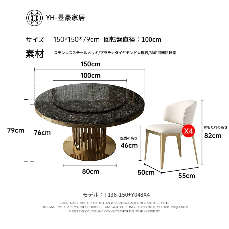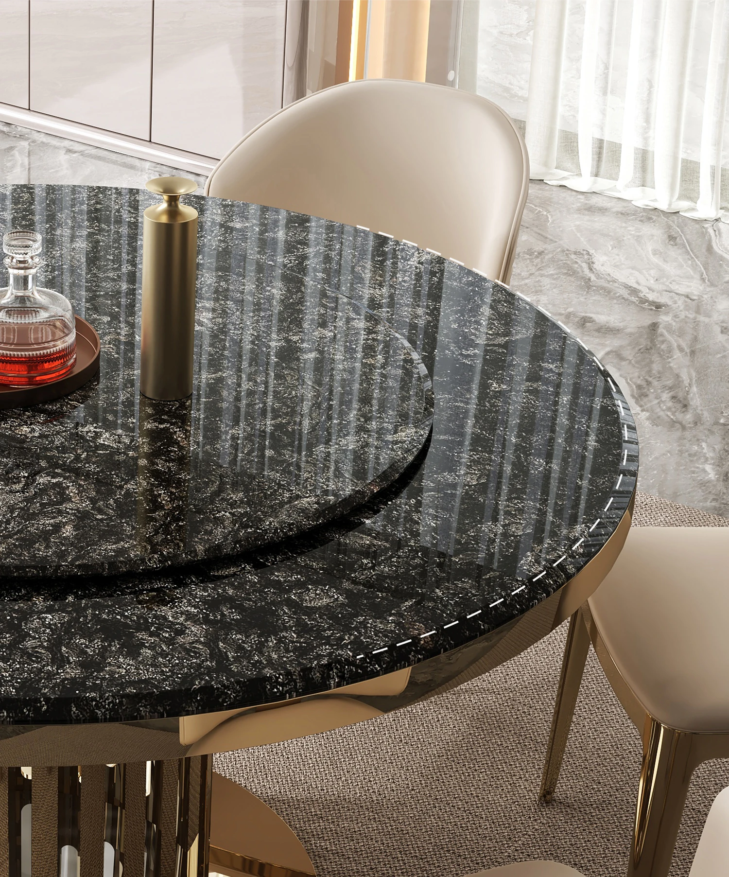 1.5メートル/プラチナダイヤモンド大理石ダイニングテーブル + 回転台