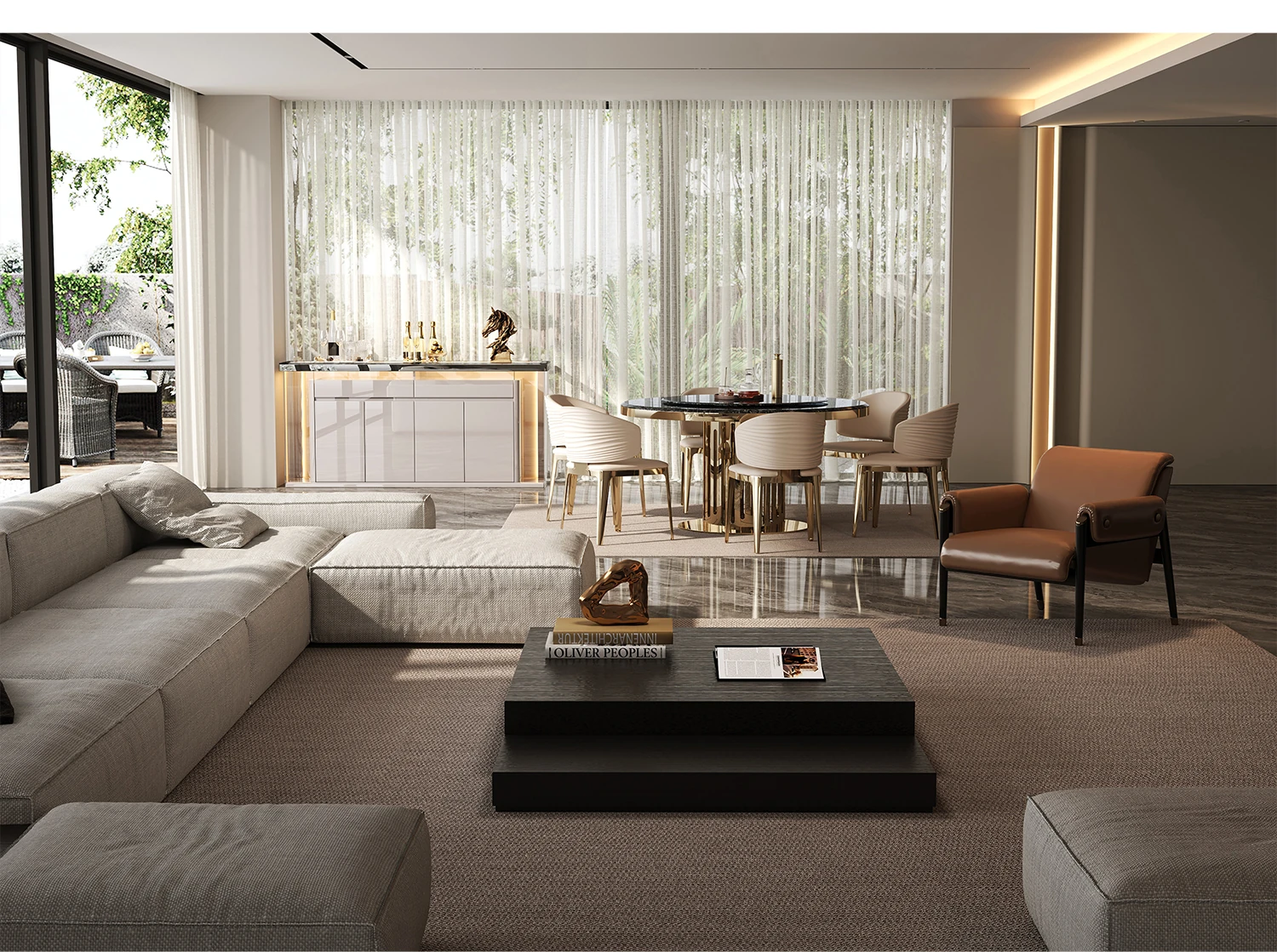 1.35メートル/プラチナダイヤモンド大理石ダイニングテーブル + 4脚のラグジュアリーなダイニングチェア