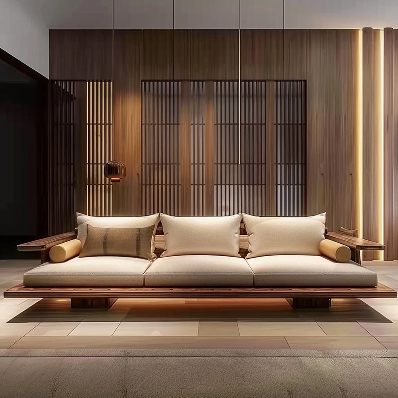 新中式ホワイトアッシュウッドソファ2025年新作!高級感あふれるライトラグジュアリーなブラックウォールナット製、リビングルームにぴったりな直線デザインの本格的な無垢材家具。快適さと美しさを兼ね備えた一品をぜひお求めください!