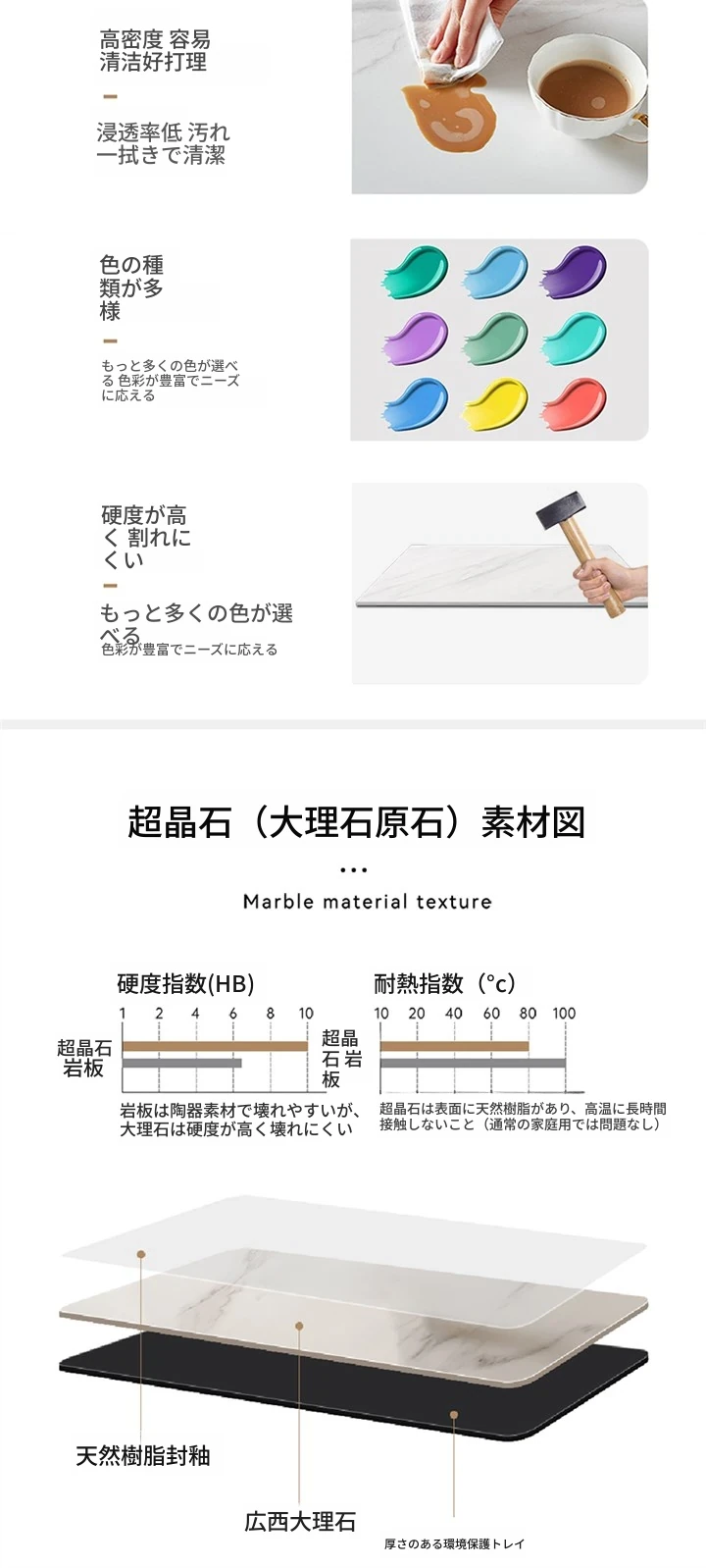 プラチナダイヤモンド-単体テーブル【18mm厚大理石天板】