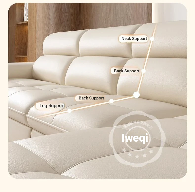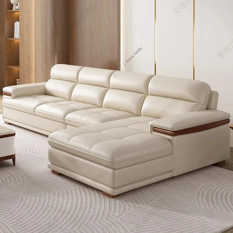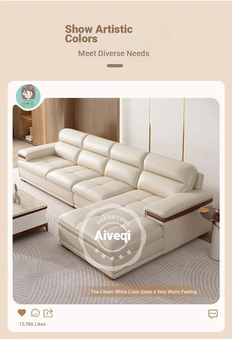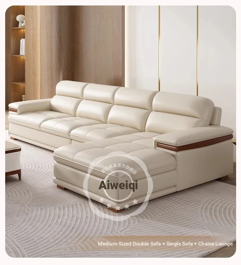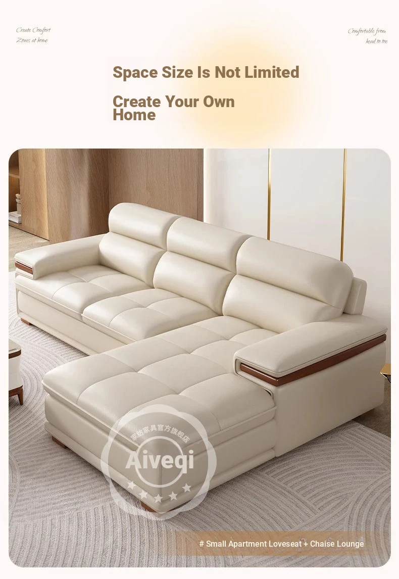 Aiveki Genuine Leather Sofa - Modern Minimalist Cream Style, Top-Grain Cowhide Chaise Lounge for Living Room, Perfect for Any Size Home