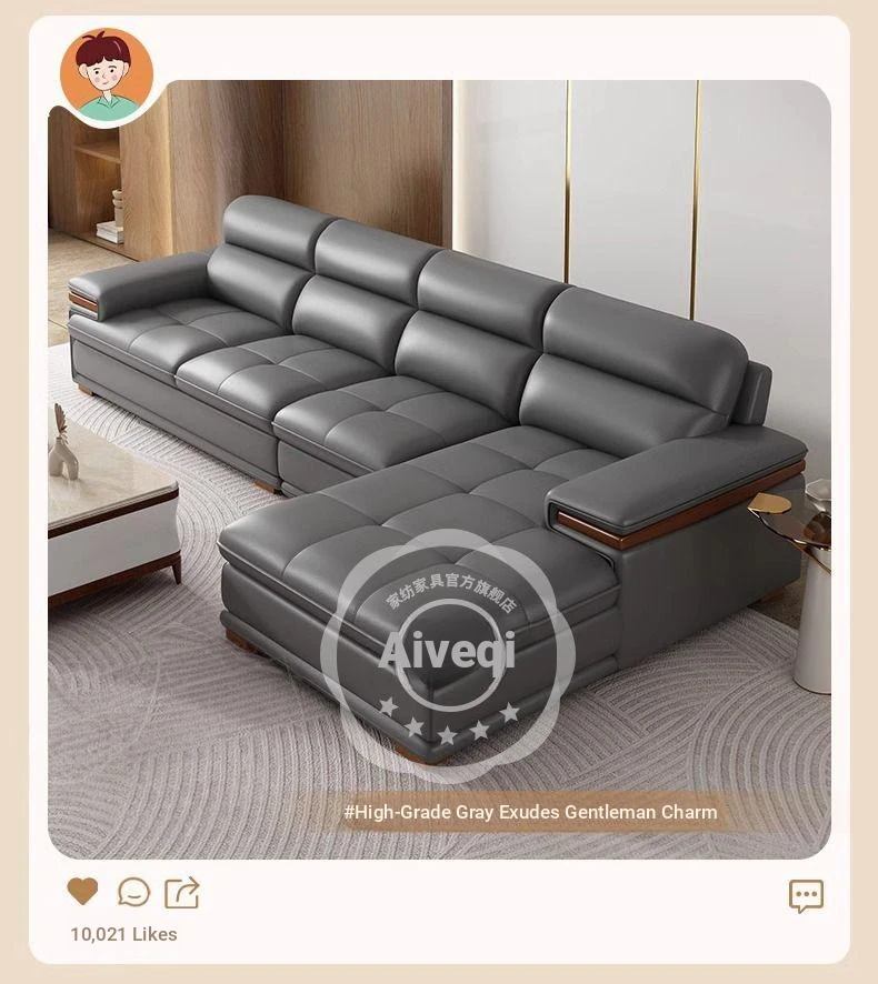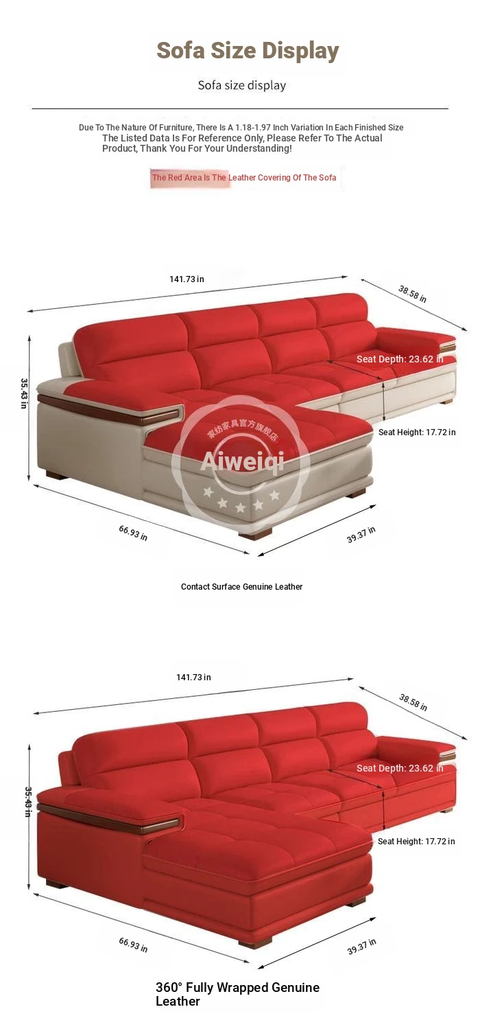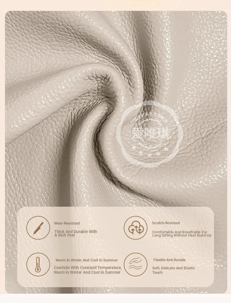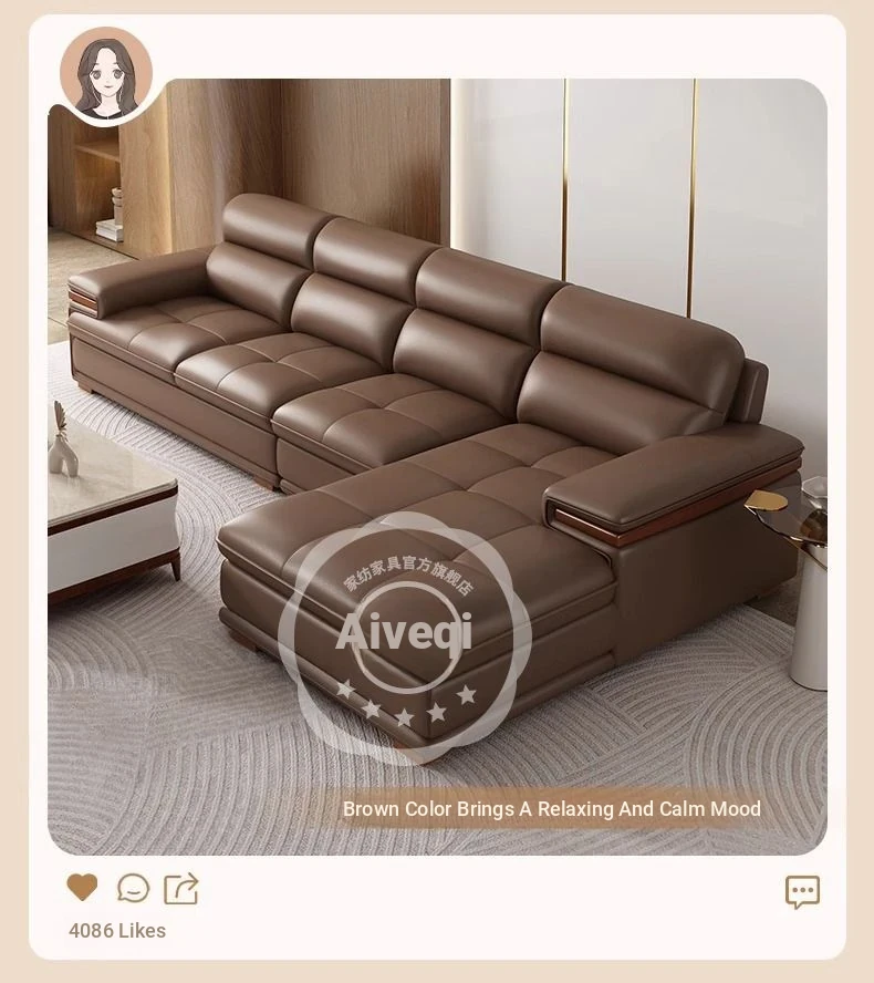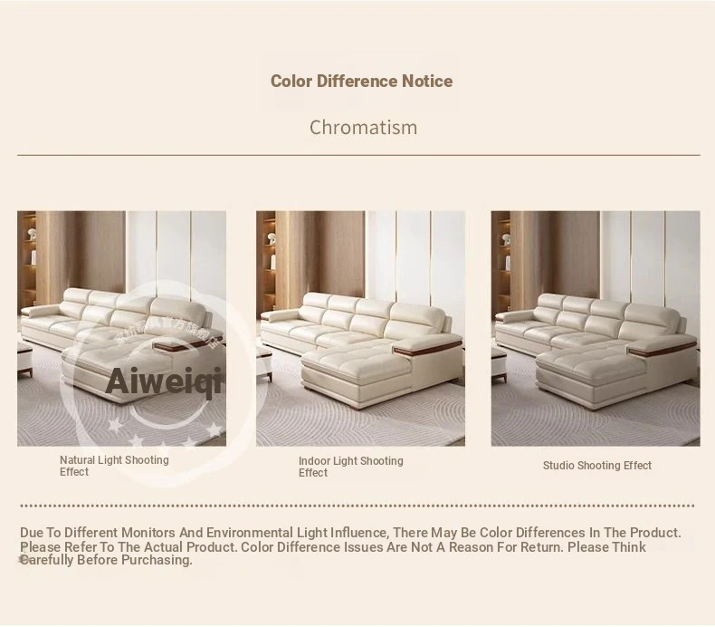 Aiveki Genuine Leather Sofa - Modern Minimalist Cream Style, Top-Grain Cowhide Chaise Lounge for Living Room, Perfect for Any Size Home