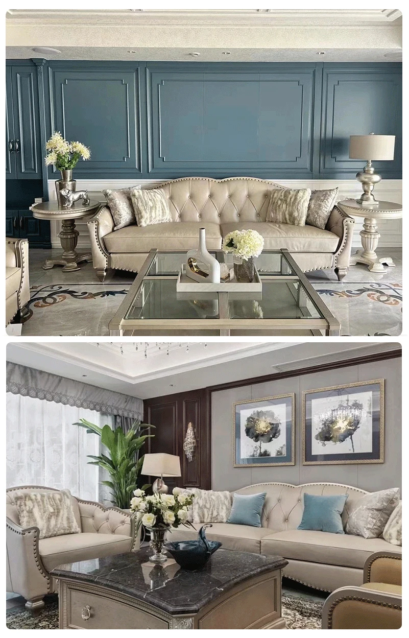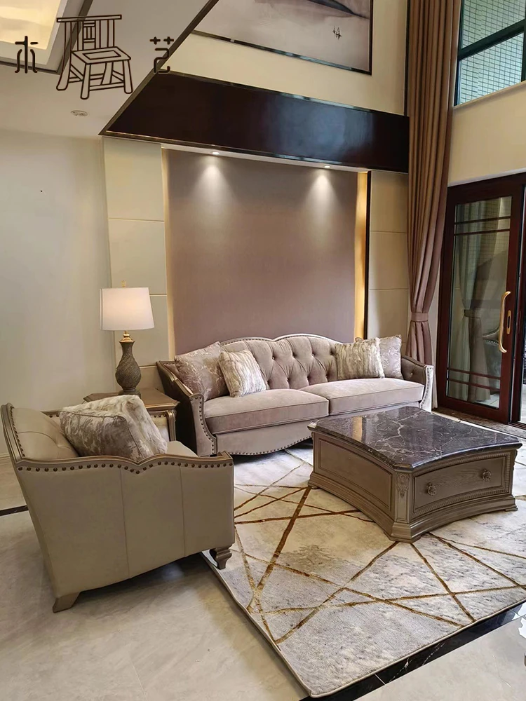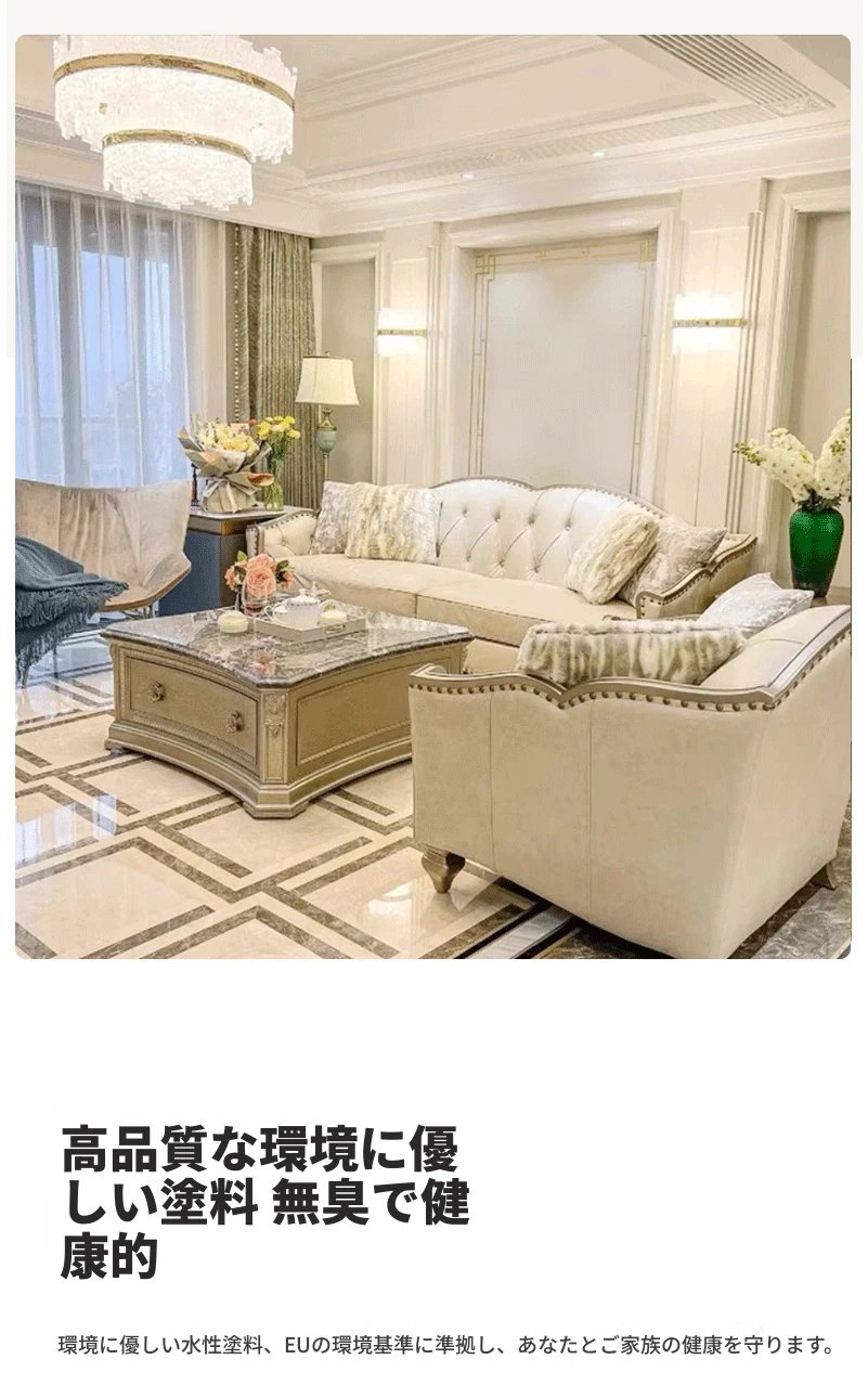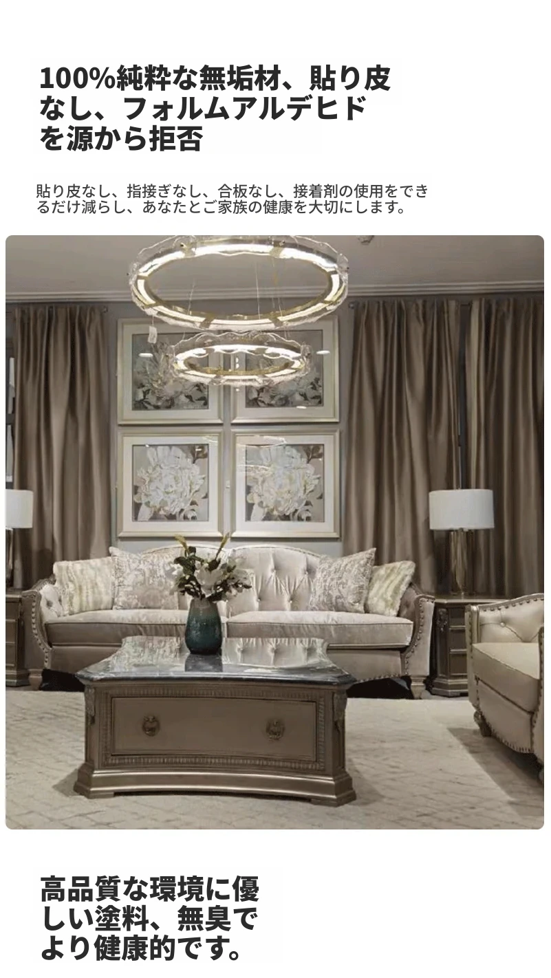 アメリカンラグジュアリーの無垢材ソファ - SRT筑源フレンチヴィンテージ彫刻デザイン、別荘リビングにぴったりな高級本革ソファ!快適さとスタイルを兼ね備えた一品。