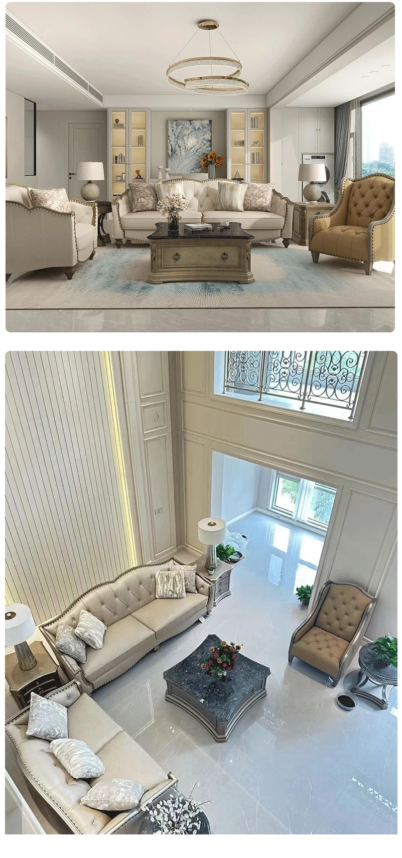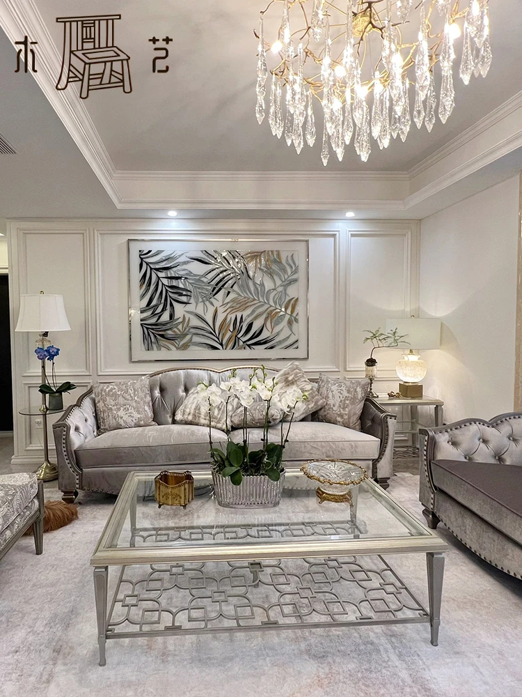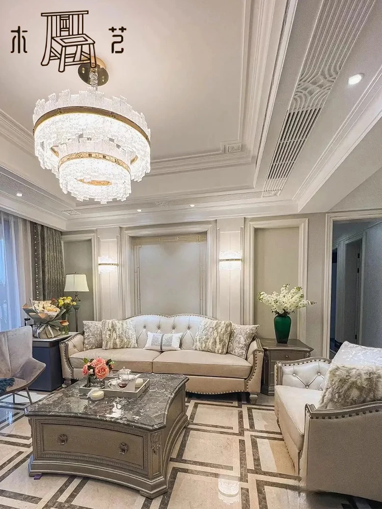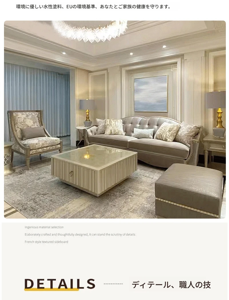 アメリカンラグジュアリーの無垢材ソファ - SRT筑源フレンチヴィンテージ彫刻デザイン、別荘リビングにぴったりな高級本革ソファ!快適さとスタイルを兼ね備えた一品。