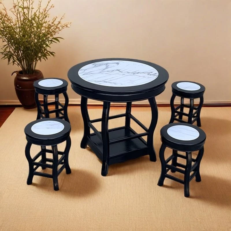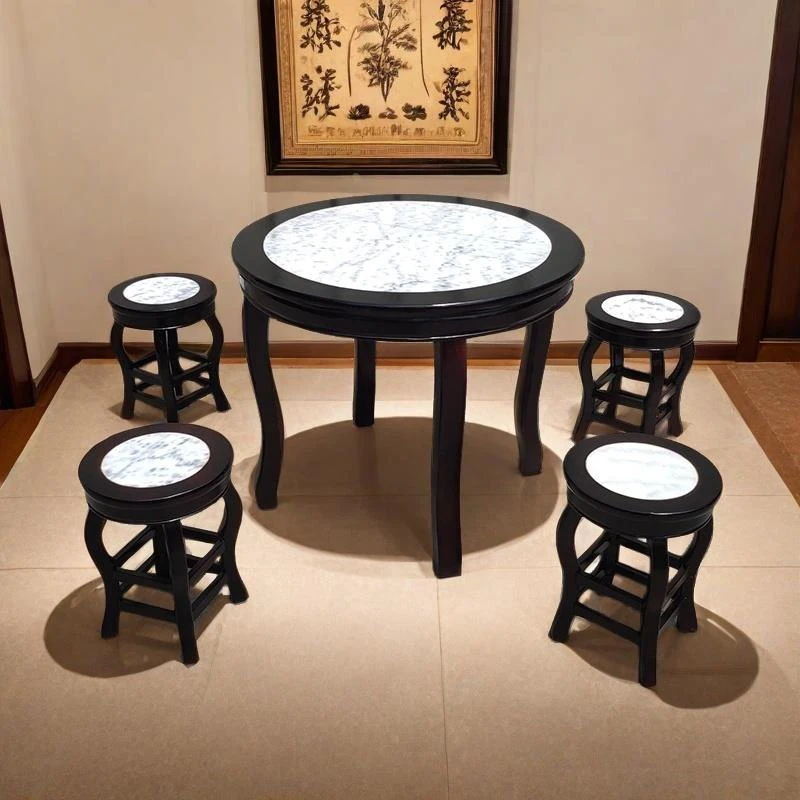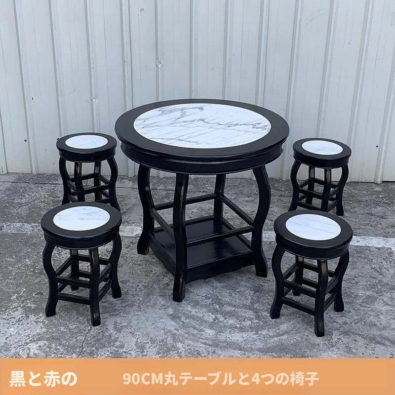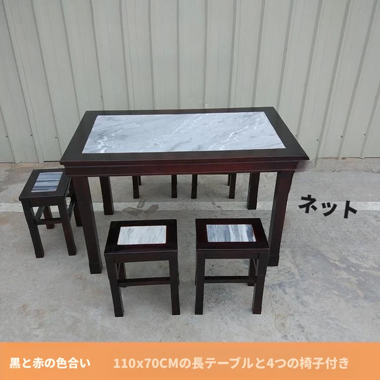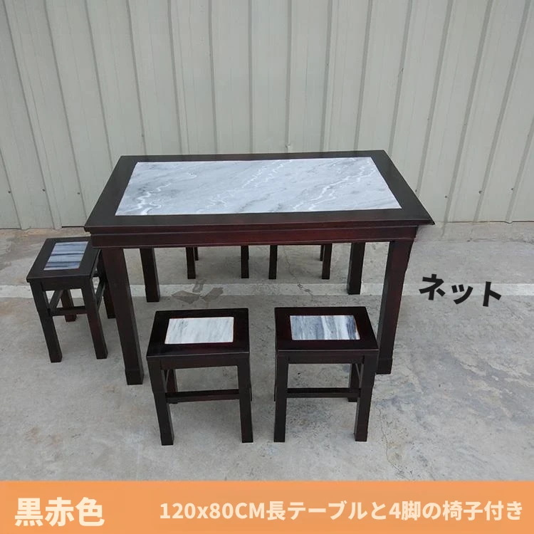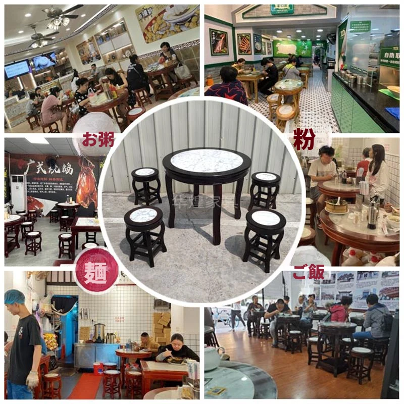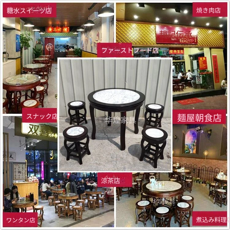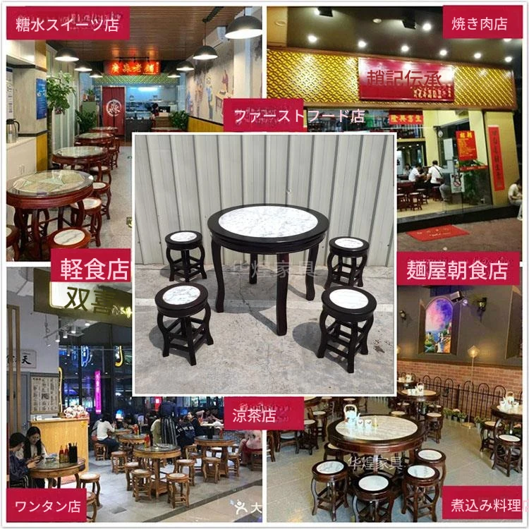 ヴィンテージ中式の無垢材と大理石のダイニングテーブル - おしゃれなカフェや飲食店に最適!快適な座席と洗練されたデザインで、客を惹きつける理想的な空間を演出します。商業用にもおすすめ!