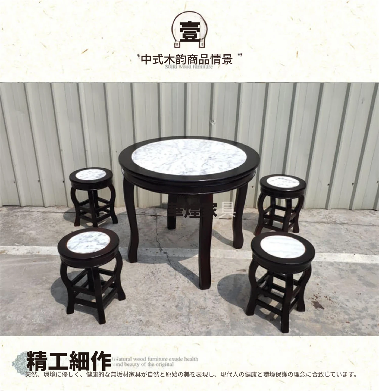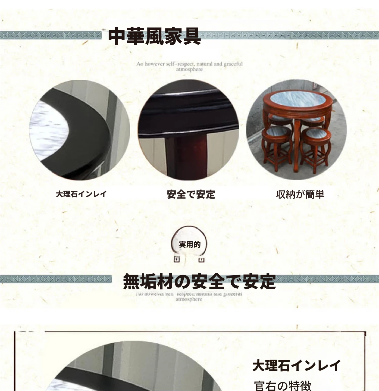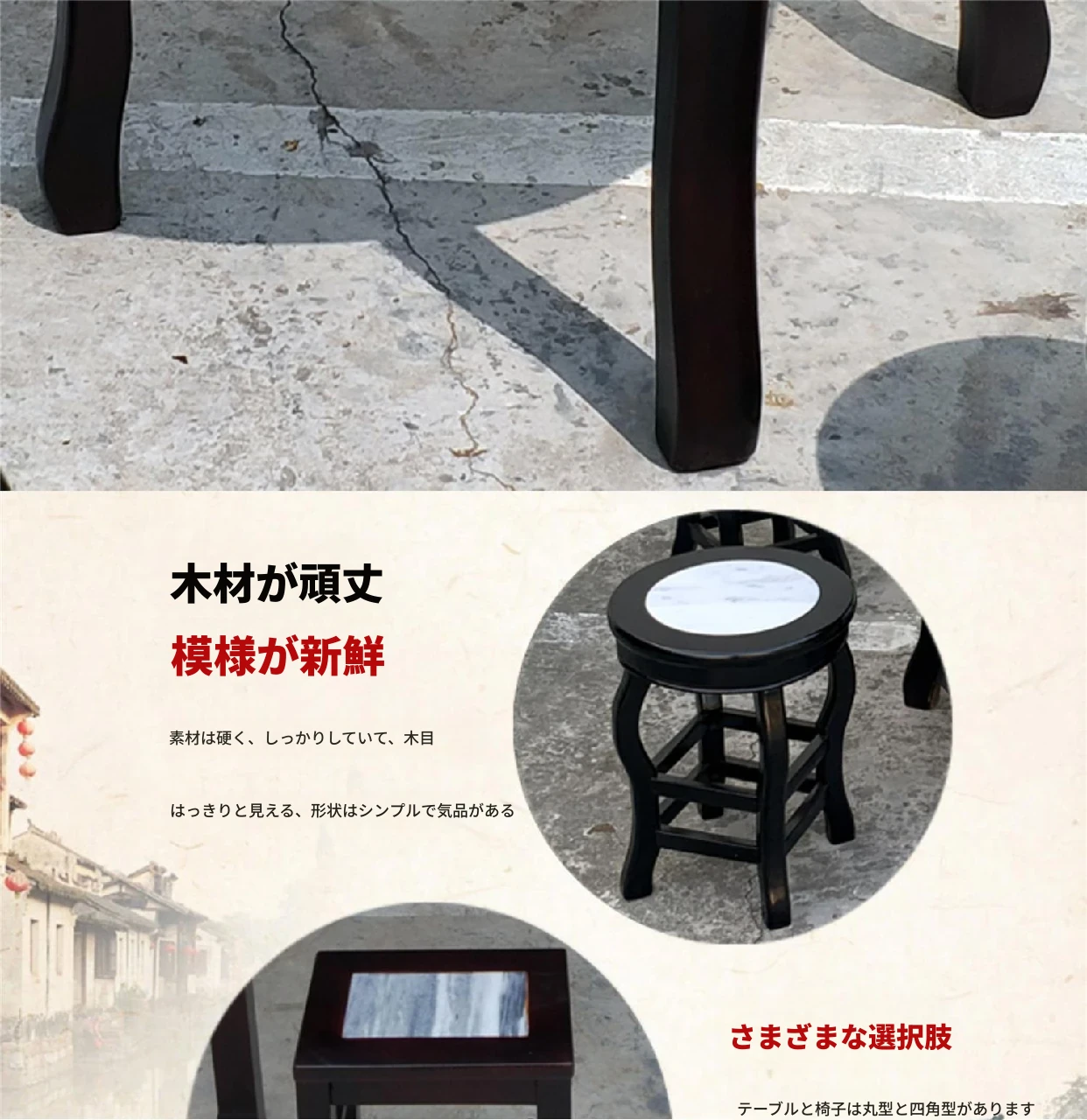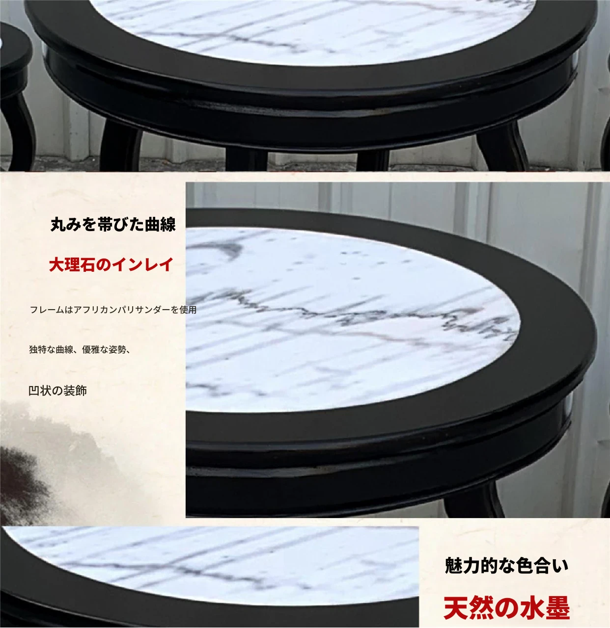 ヴィンテージ中式の無垢材と大理石のダイニングテーブル - おしゃれなカフェや飲食店に最適!快適な座席と洗練されたデザインで、客を惹きつける理想的な空間を演出します。商業用にもおすすめ!