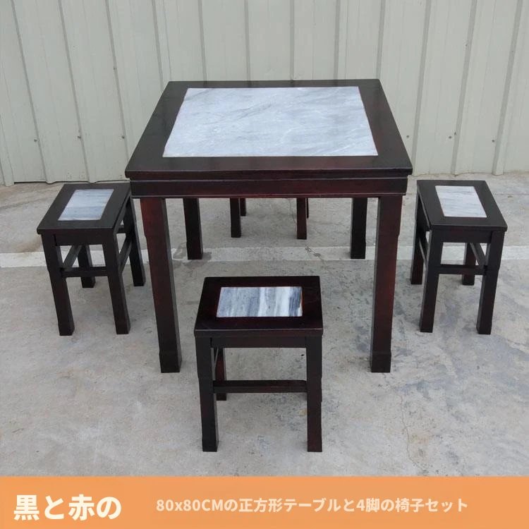 アフリカン・マホガニー80x80角卓と四つの椅子