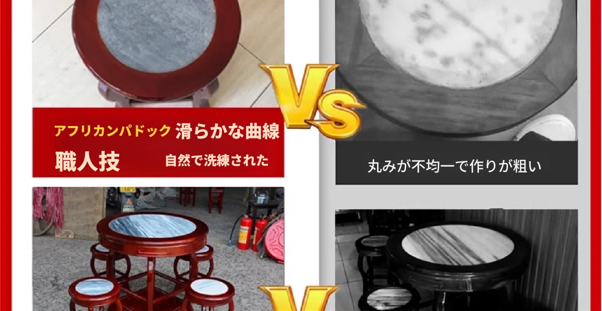 アフリカン・マホガニー80cm円卓と四つの椅子