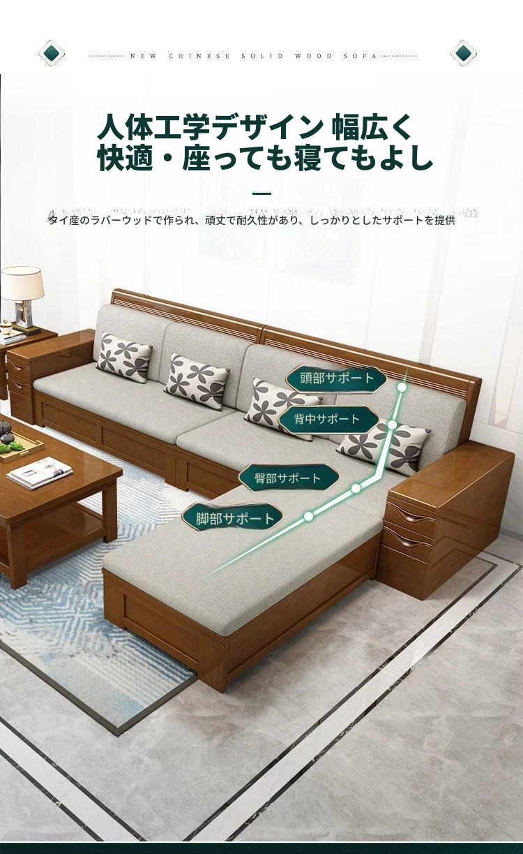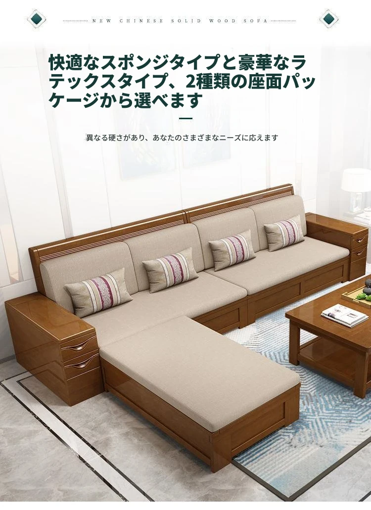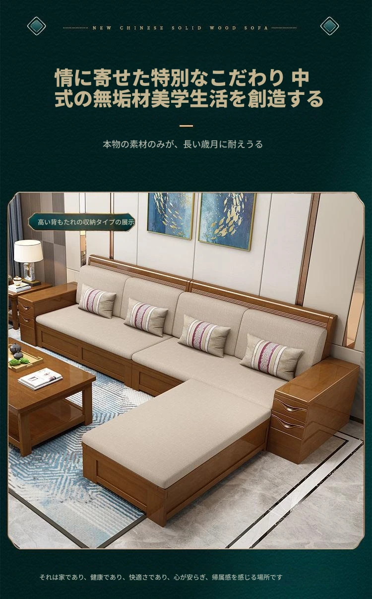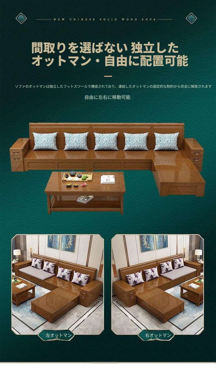 中華風の天然木製ソファセット | 大小さまざまな居住空間やオフィスに最適 | 多機能なデザインで、リビングルームをスタイリッシュに演出 | 高品質な家具メーカーの直販!