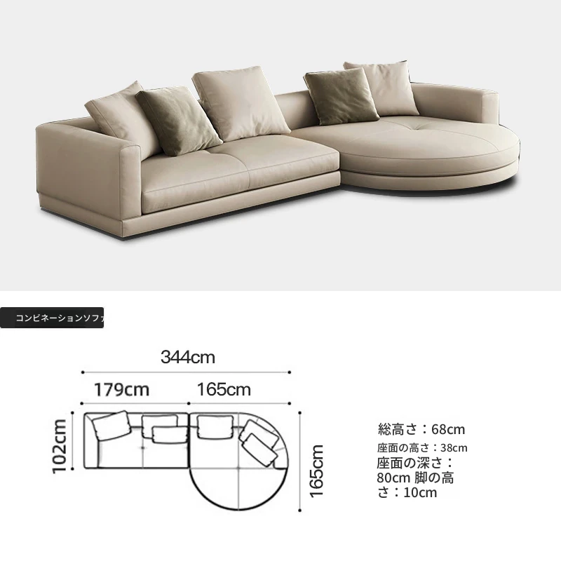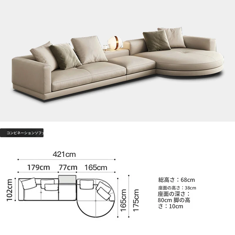 コンナリ高級サイズ対応コーナー本革ソファー|イタリアンラグジュアリーデザインの広々リビングソファセット!洗練されたスタイルで、心地よい空間を演出します。