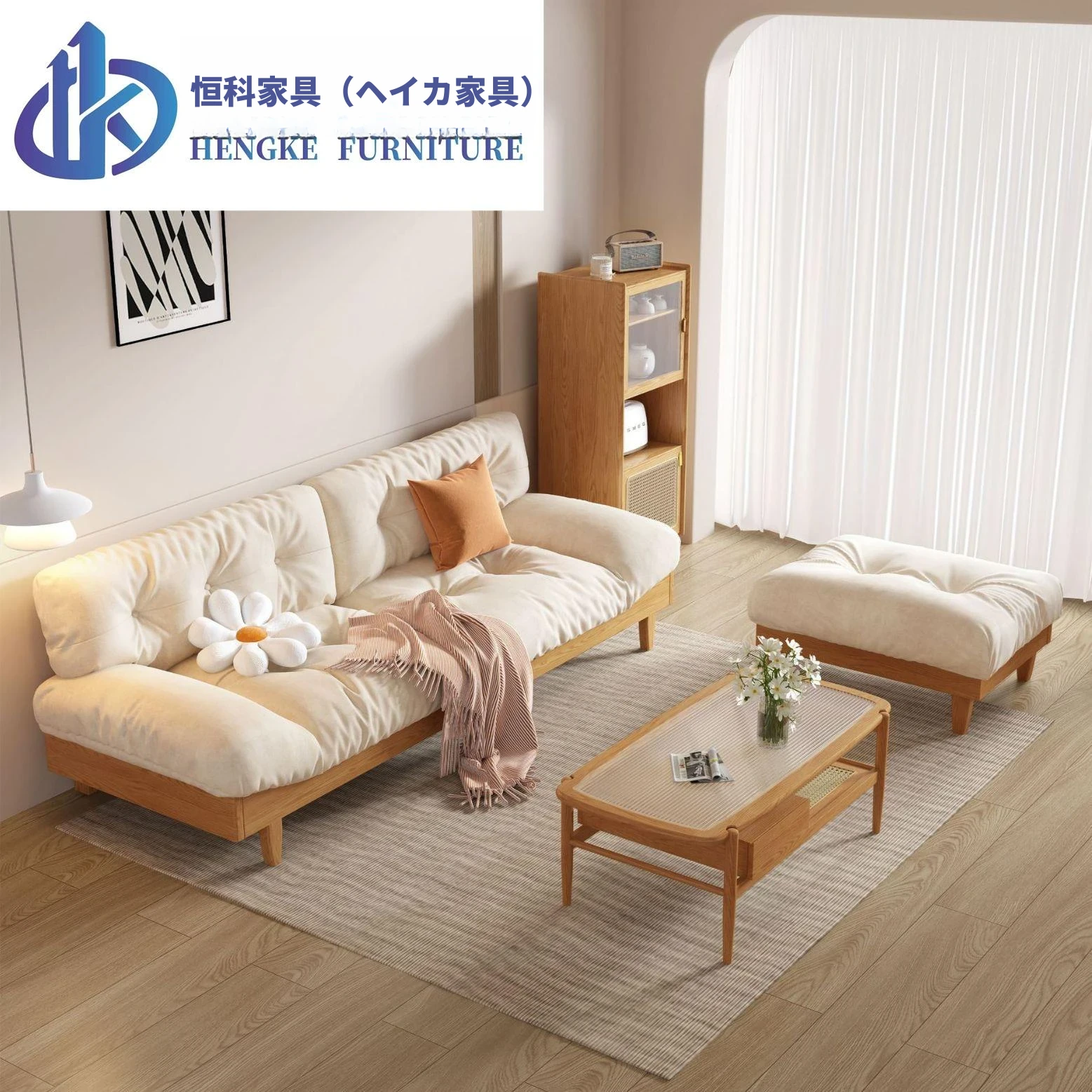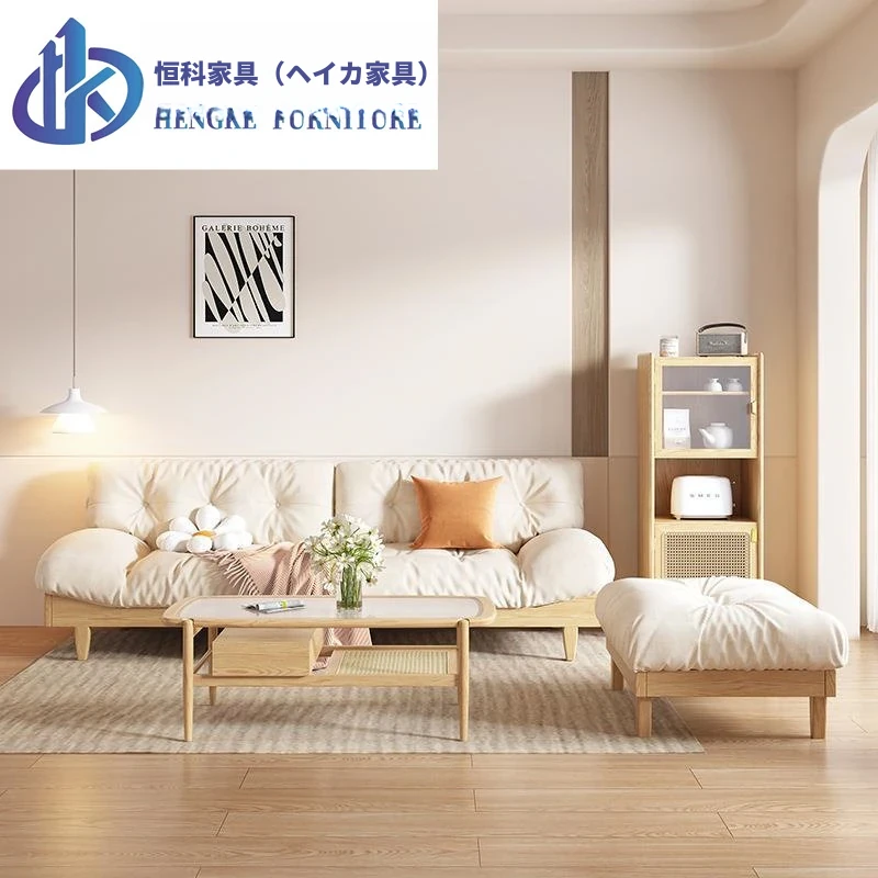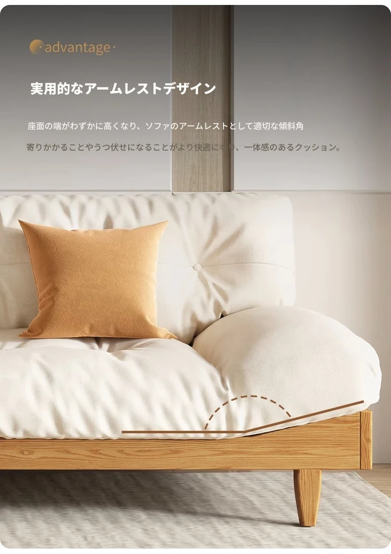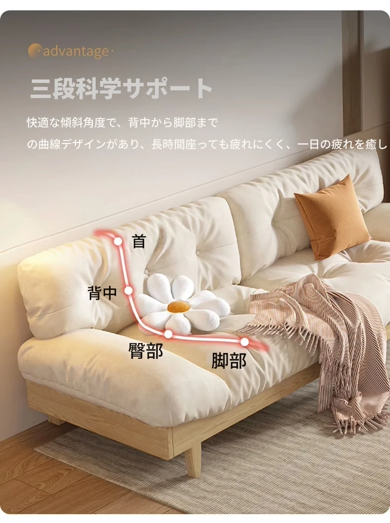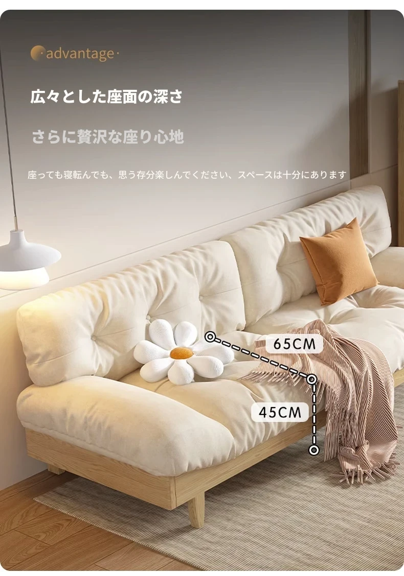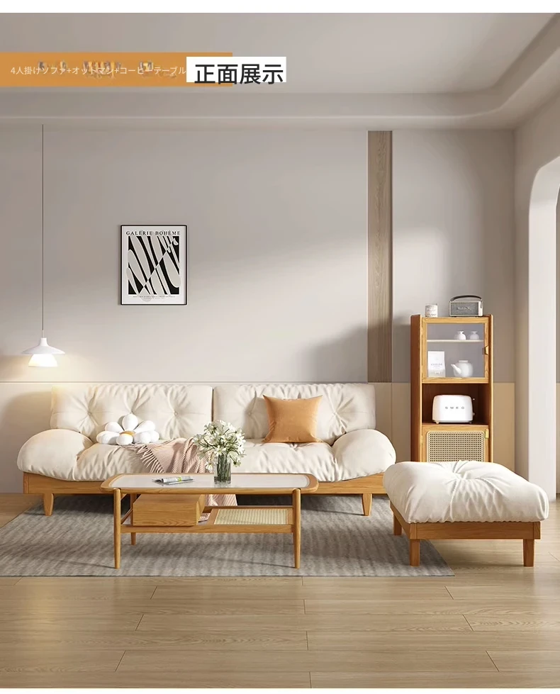 ホワイトアッシュの和風侘寂スタイル、雲のようなデザインのクリームホワイトソファ。高級天然木とテクスチャー感のあるファブリックを使用した実木コンビネーションソファで、快適さと美しさを両立。お部屋を優雅に彩ります!