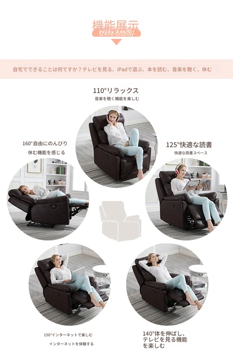 最高級マルチ機能コンビネーションスペースソファ|電動リクライニング|家庭用シアターやネイルサロンに最適な本革ソファチェア|贅沢なひとときをあなたに!