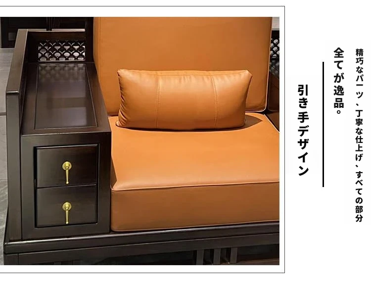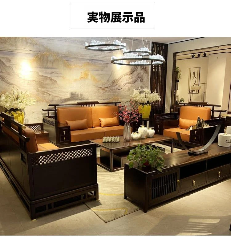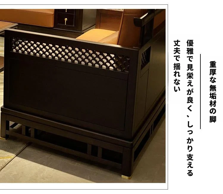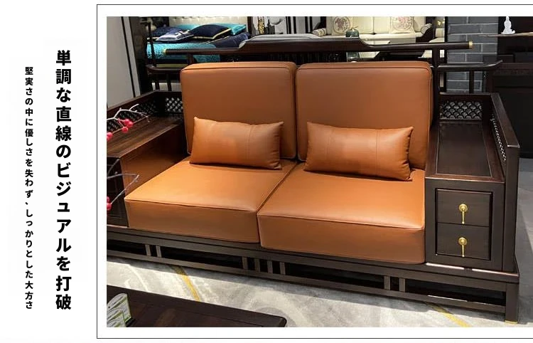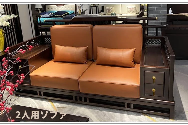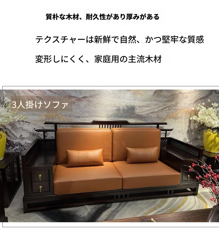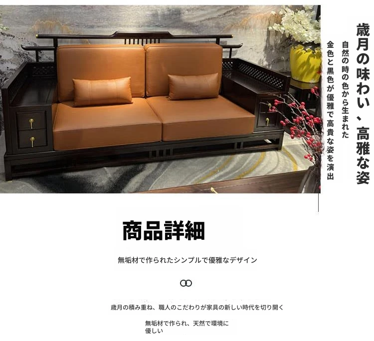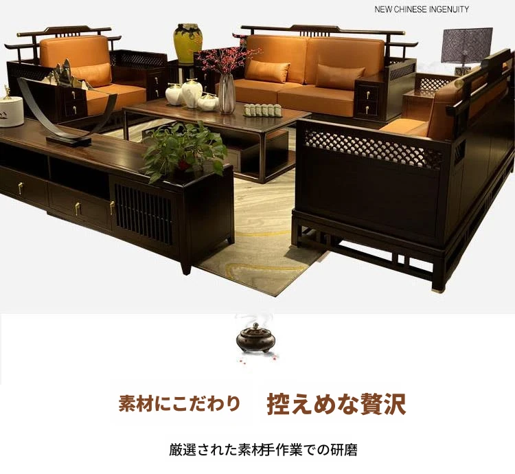 デザイナー新中式無垢材ソファー|現代的なラグジュアリー、大型ヴィラのリビングに最適な禅の雰囲気を演出する中国風モデルルーム用家具です。