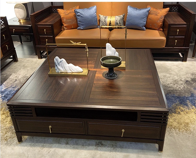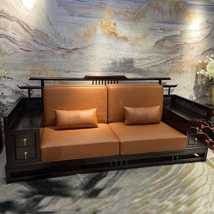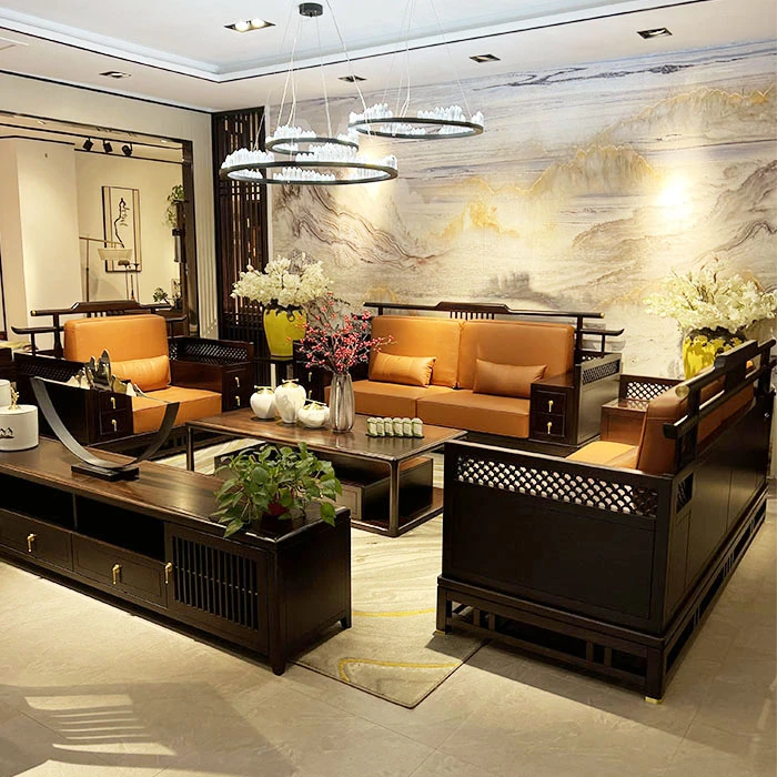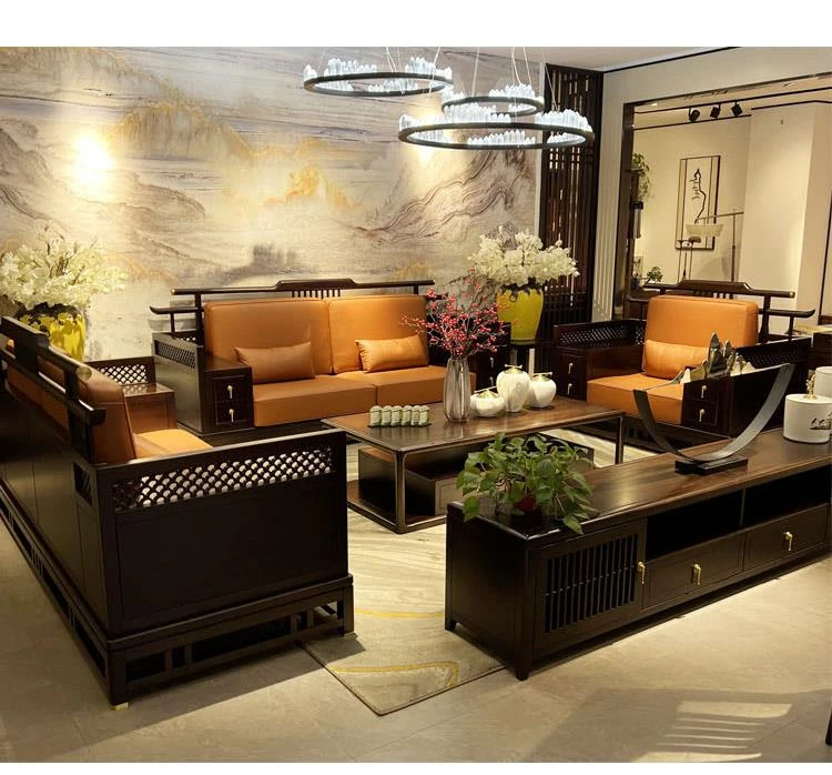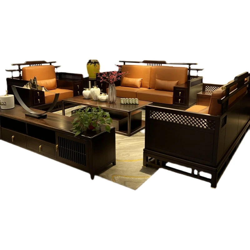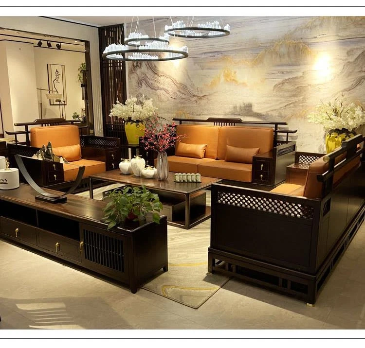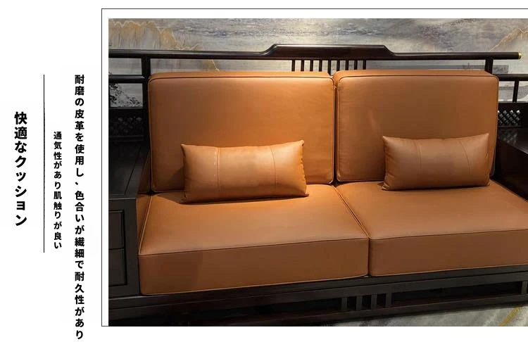 デザイナー新中式無垢材ソファー|現代的なラグジュアリー、大型ヴィラのリビングに最適な禅の雰囲気を演出する中国風モデルルーム用家具です。
