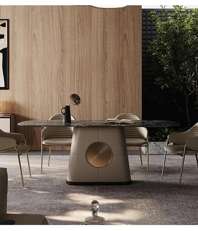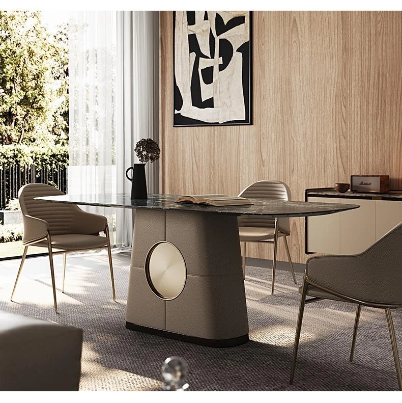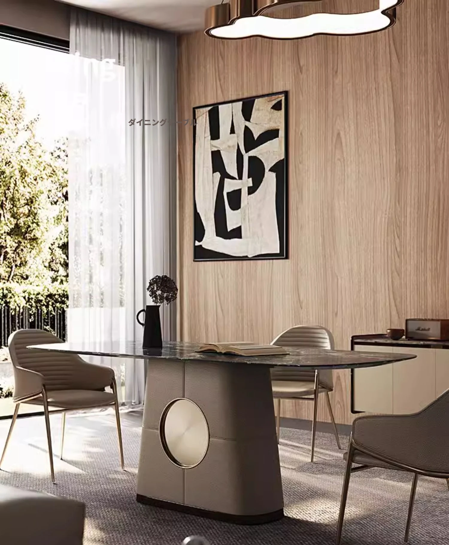 天然石の贅沢ダイニングテーブルセット - デザイナーによる洗練されたデザイン、別荘や豪邸に最適なダイニング&リビングルームのコーディネート。高級感溢れる空間を演出します!