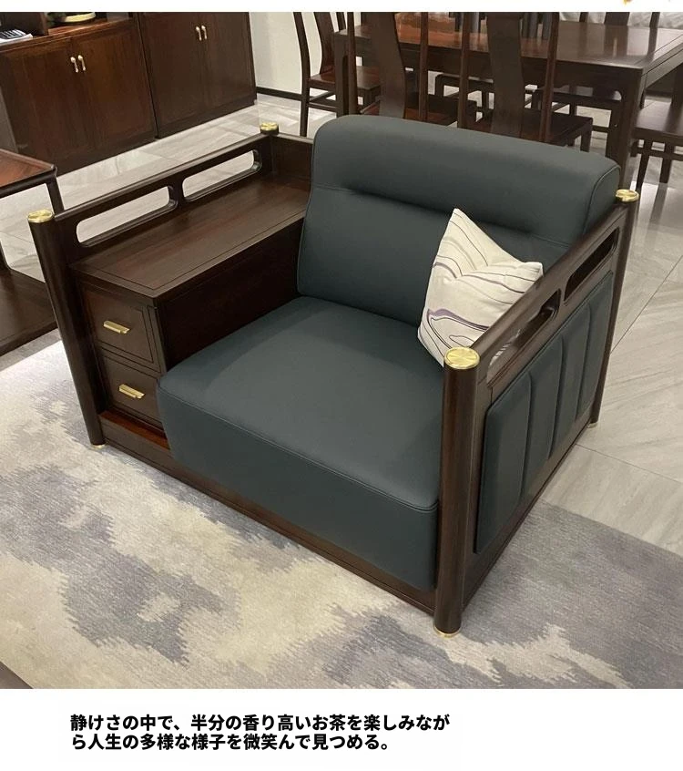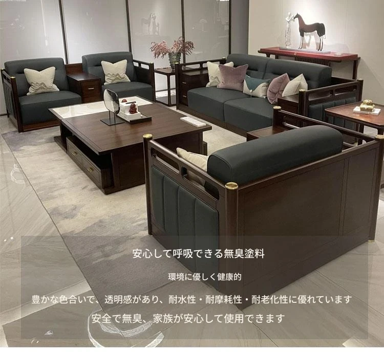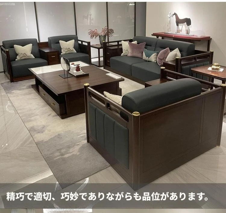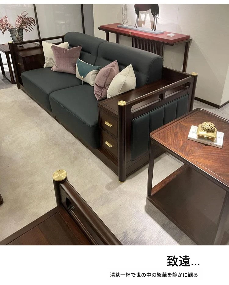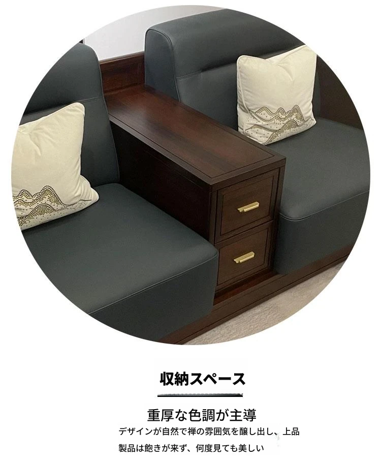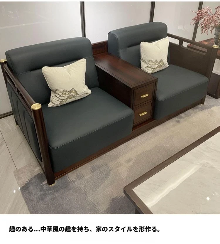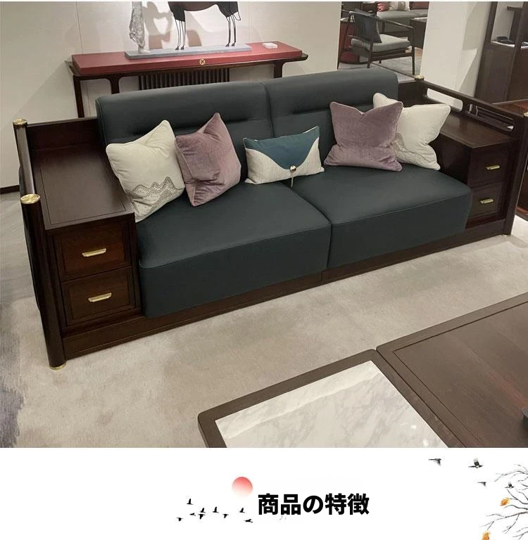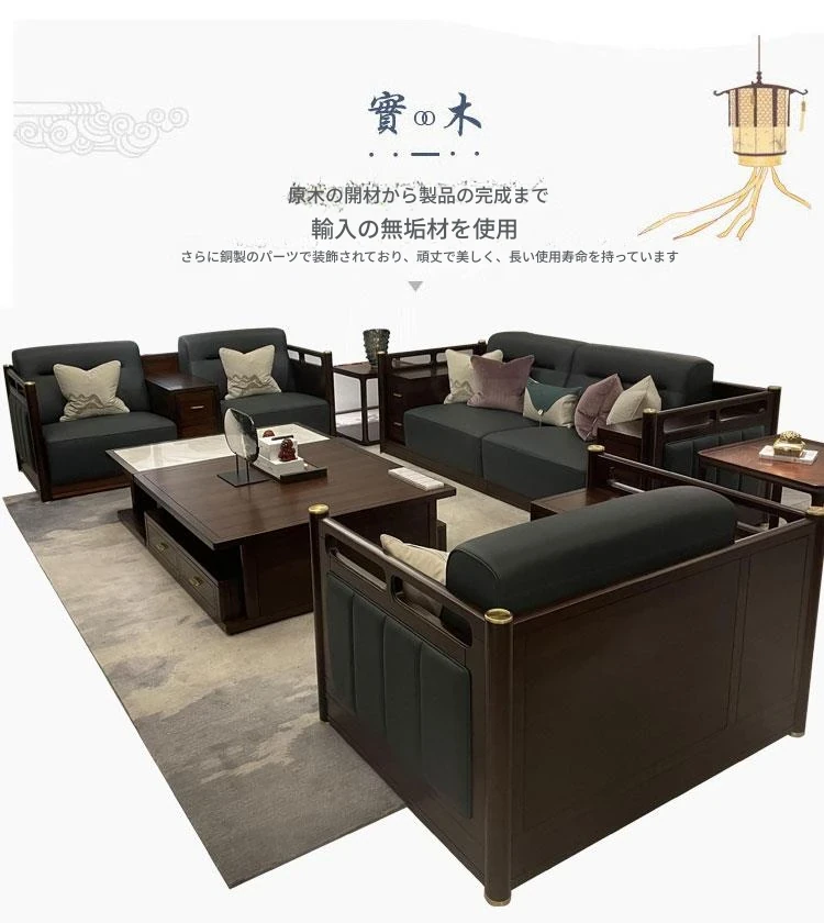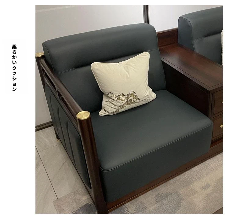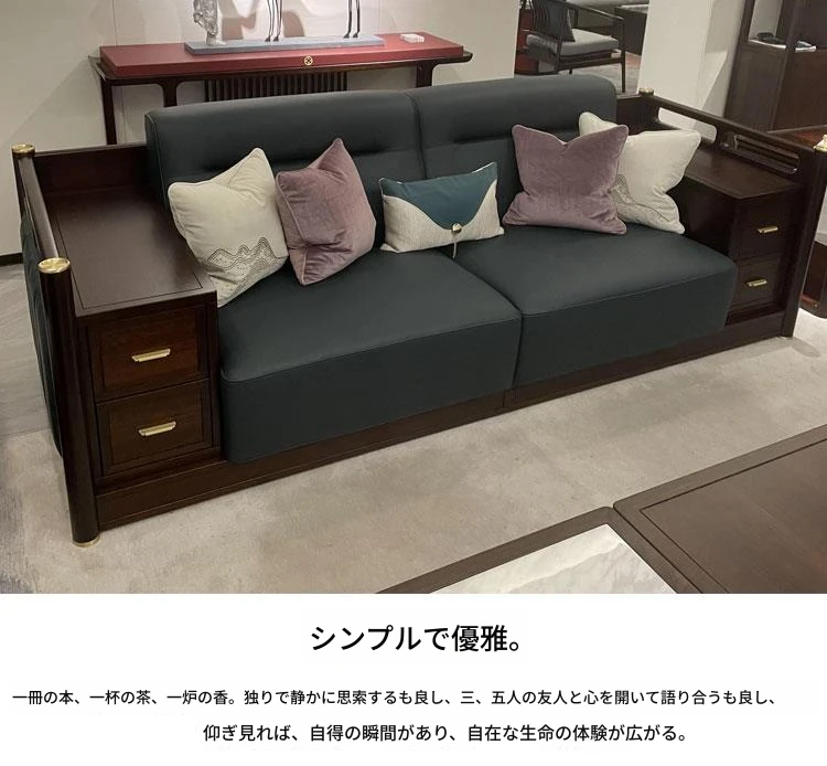 デザイナー新中式ソファー|現代的でシンプルなラグジュアリー|高級レザー製|別荘やリビングに最適|サンプルルームや民宿にもぴったりな禅の雰囲気を演出!