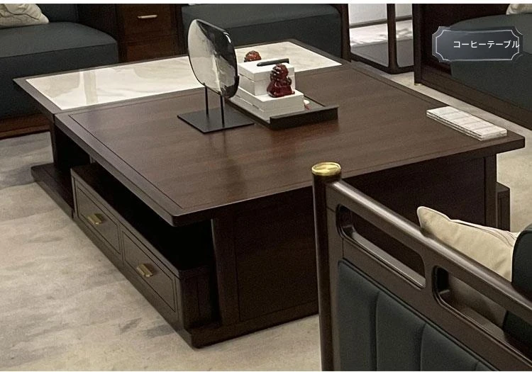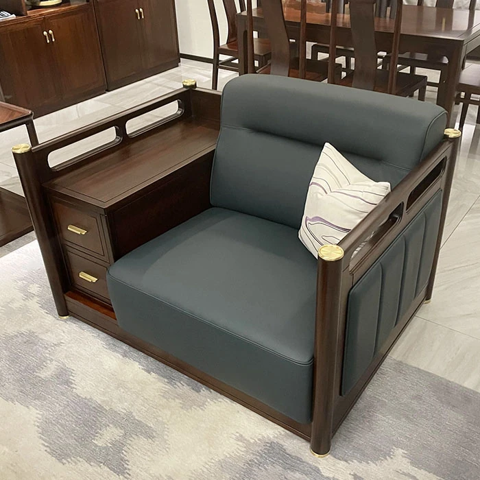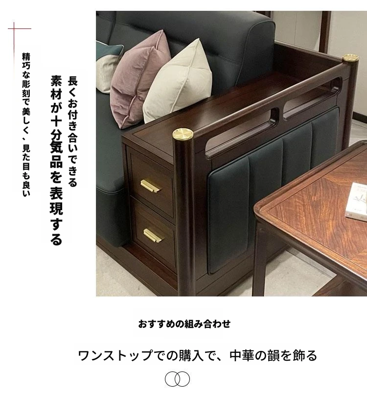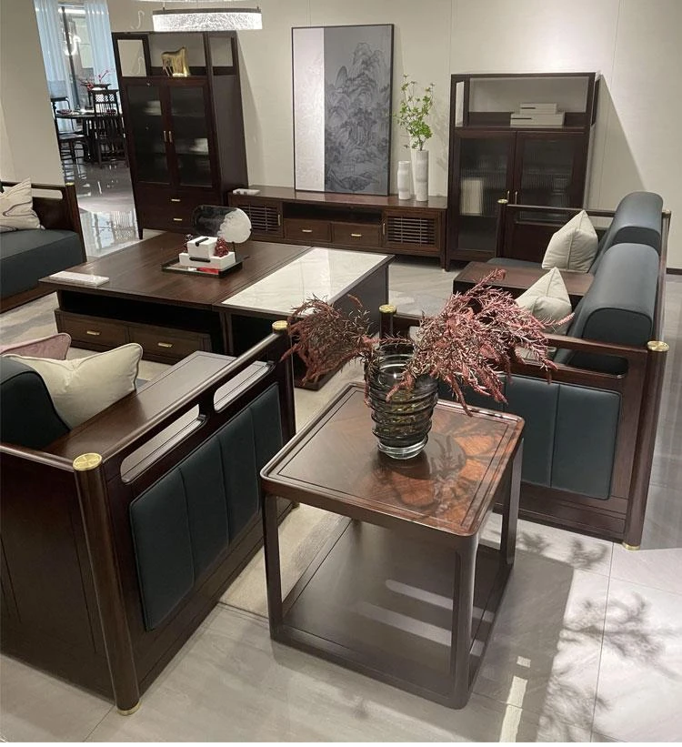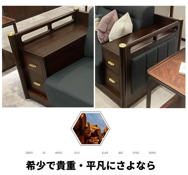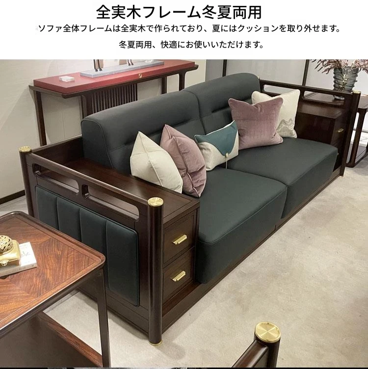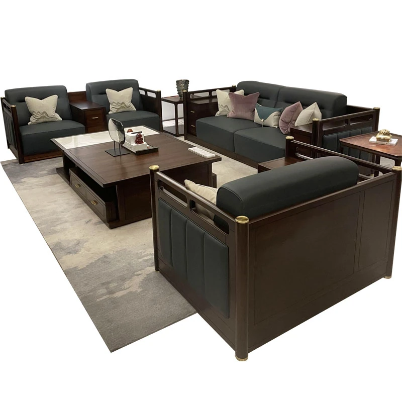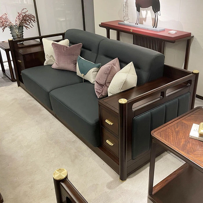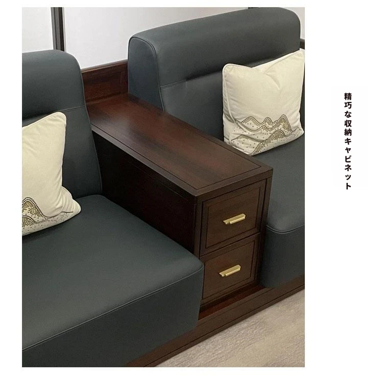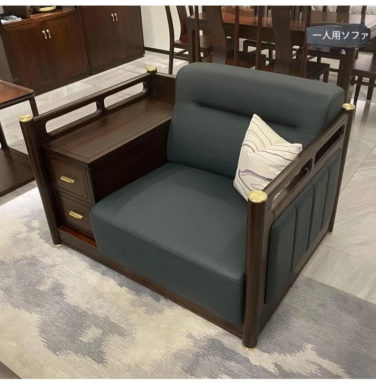 デザイナー新中式ソファー|現代的でシンプルなラグジュアリー|高級レザー製|別荘やリビングに最適|サンプルルームや民宿にもぴったりな禅の雰囲気を演出!