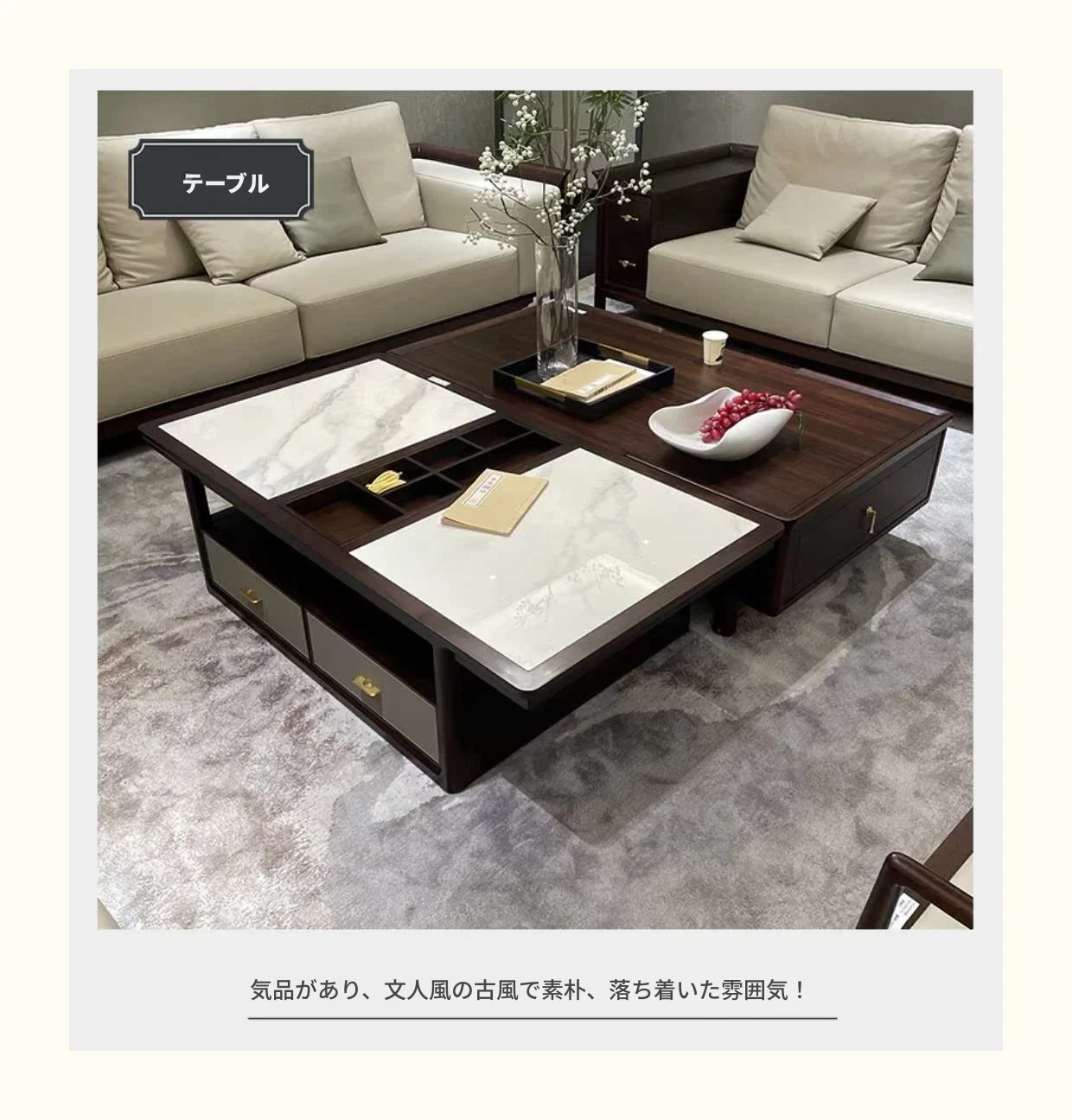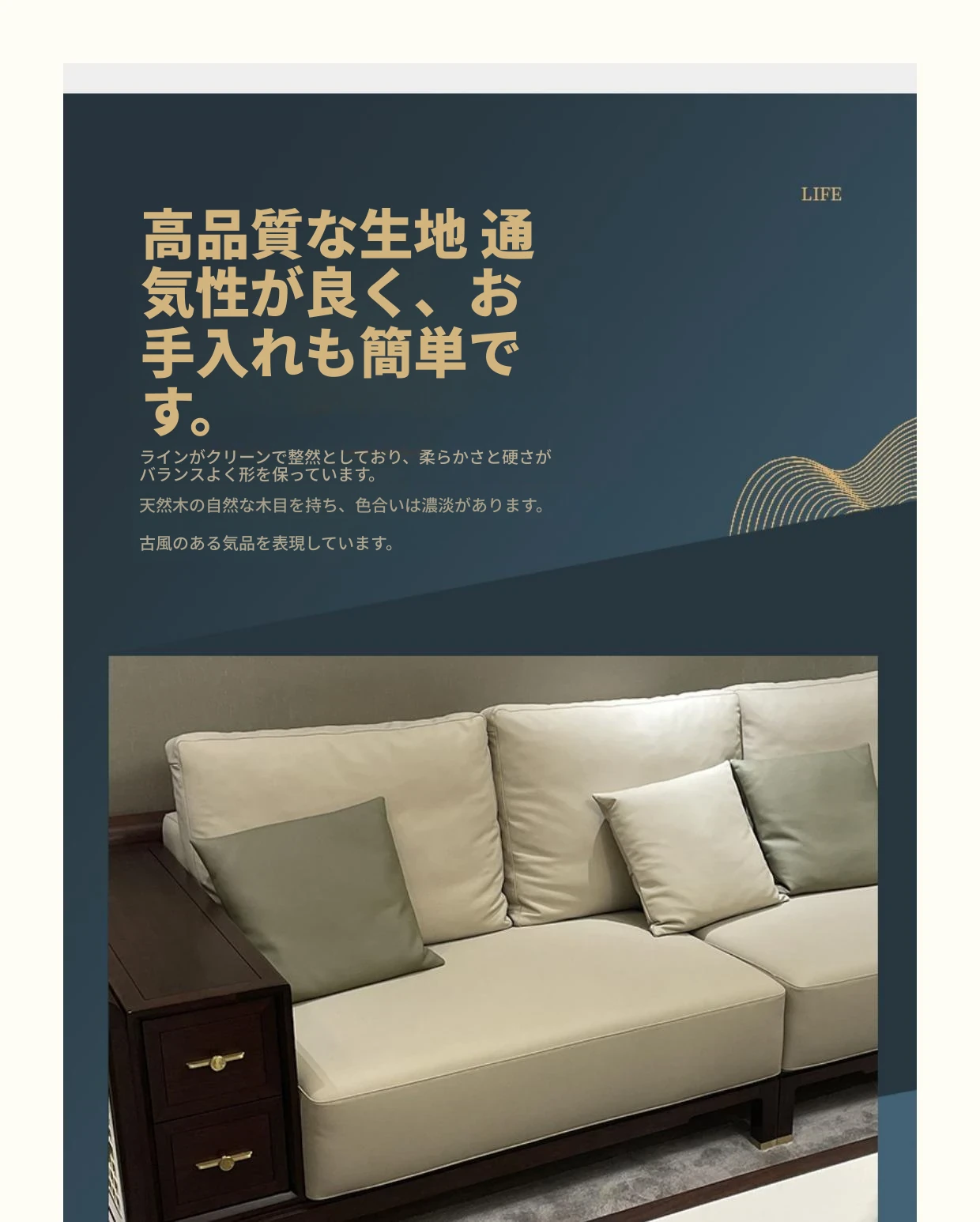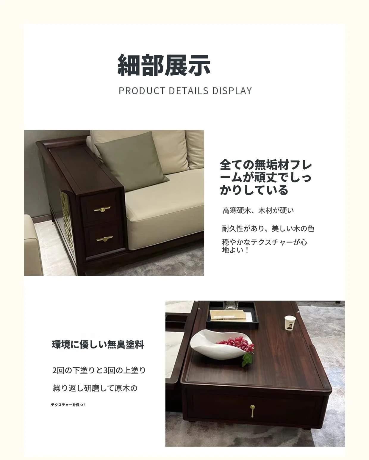 デザイナー新中式無垢材ソファセット|現代的な高級別荘のリビングや広さに合わせた中国風民宿の禅スタイル。上質な素材で心地よい空間を演出します!