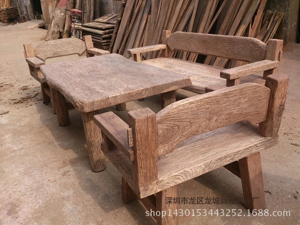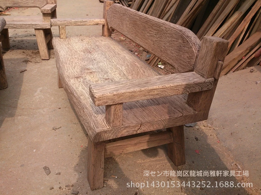 自然派家具!全香樟木製ソファチェア&ティーテーブルセット - シンプルでナチュラルな田舎スタイル、民宿やリビングルームにぴったりの受け入れ空間を演出します!