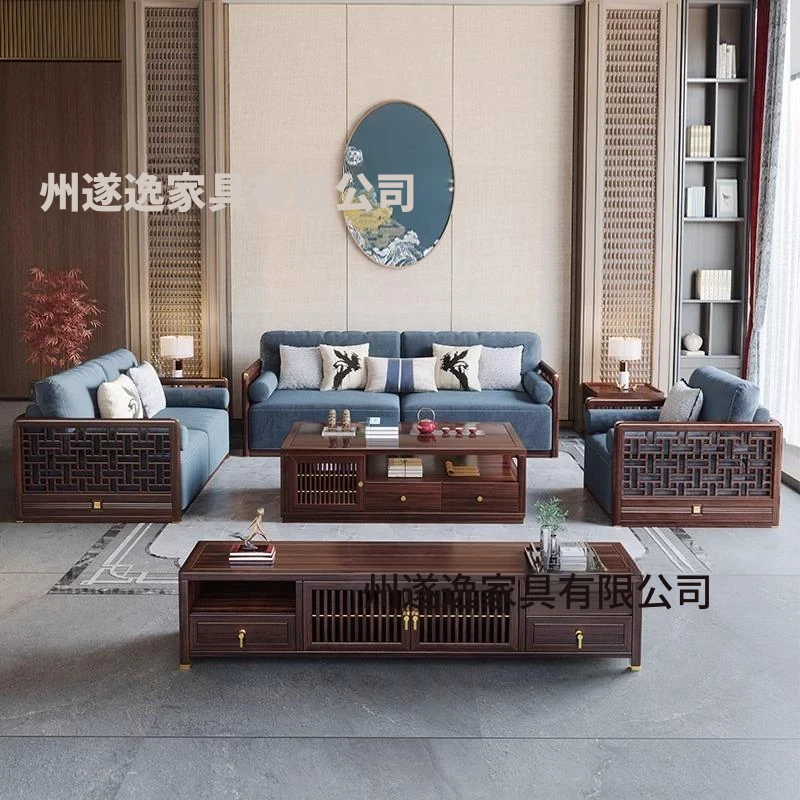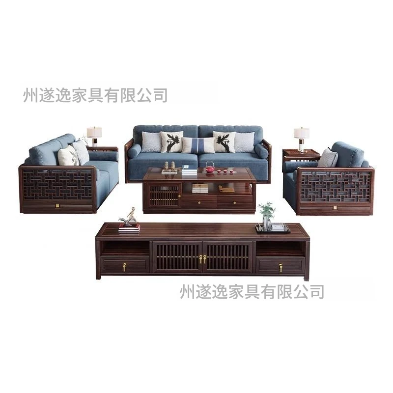 新中式ウー金木のフル無垢材ソファセット|大規模なヴィラに最適な中華スタイルのリビングルーム用ソファ、青水秀木の美しさを引き立てる贅沢な一品!