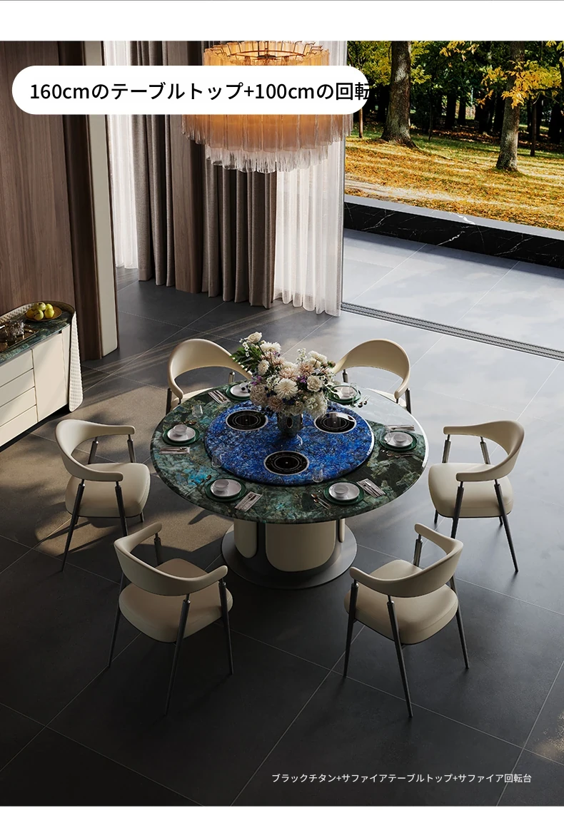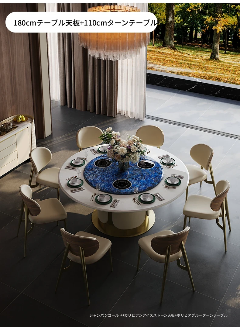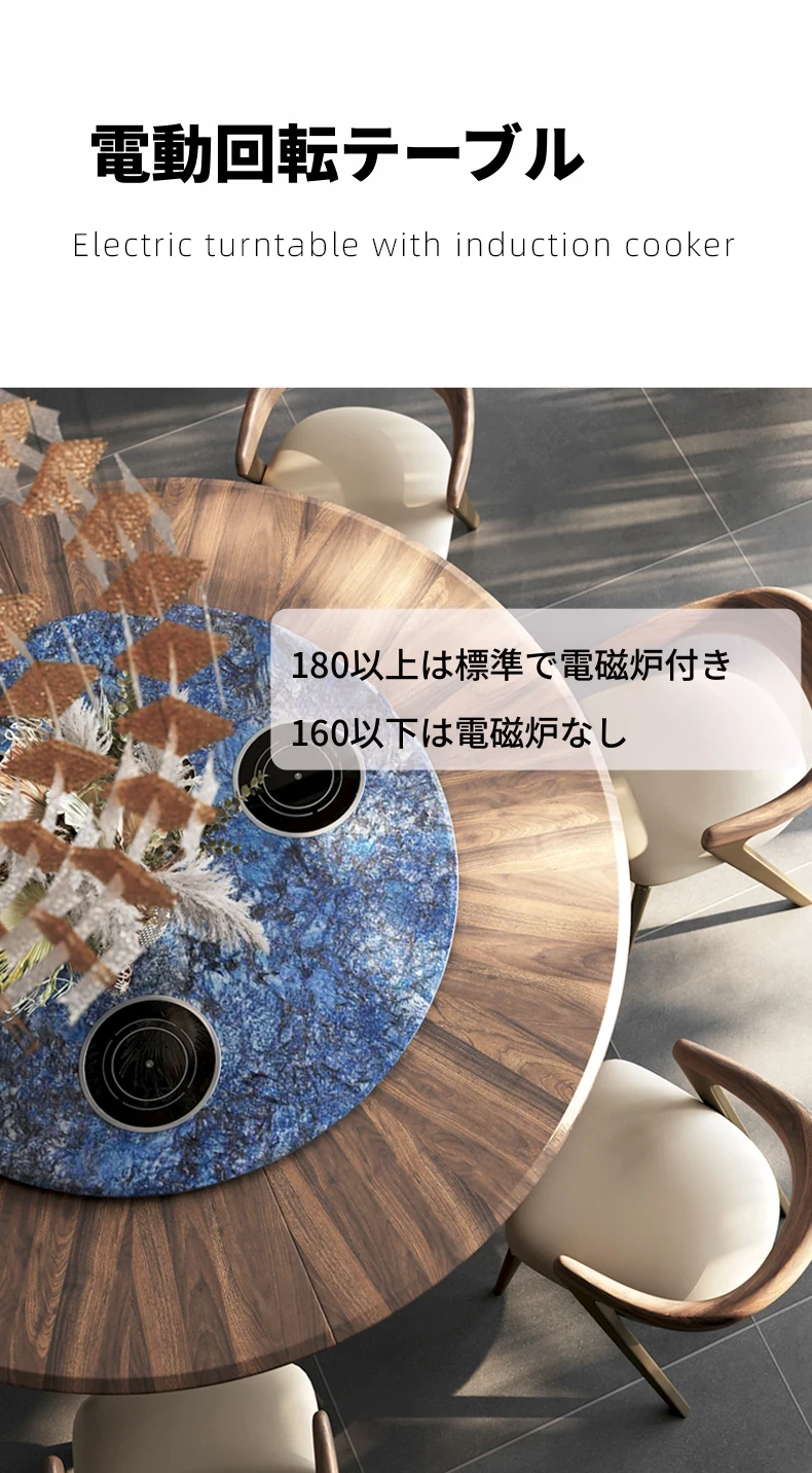 電動テーブル/ブルーサファイア1.8m天板+1.1mターンテーブル 三つの電磁調理器