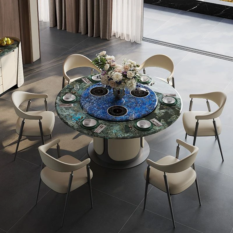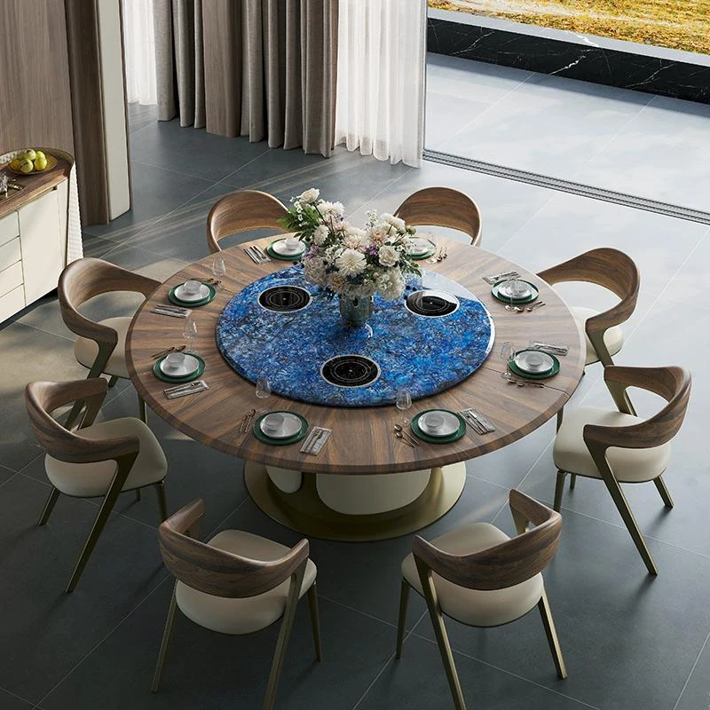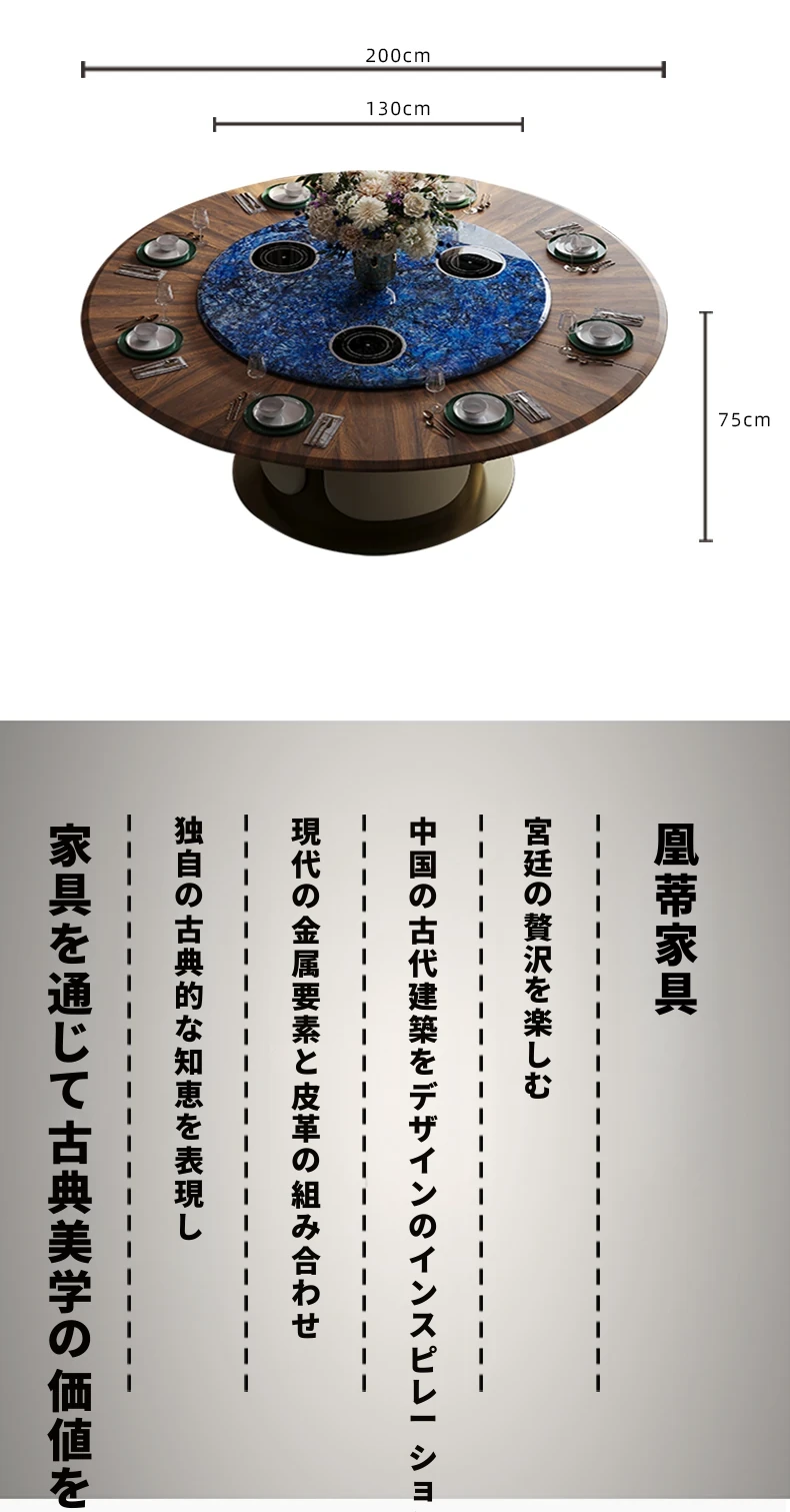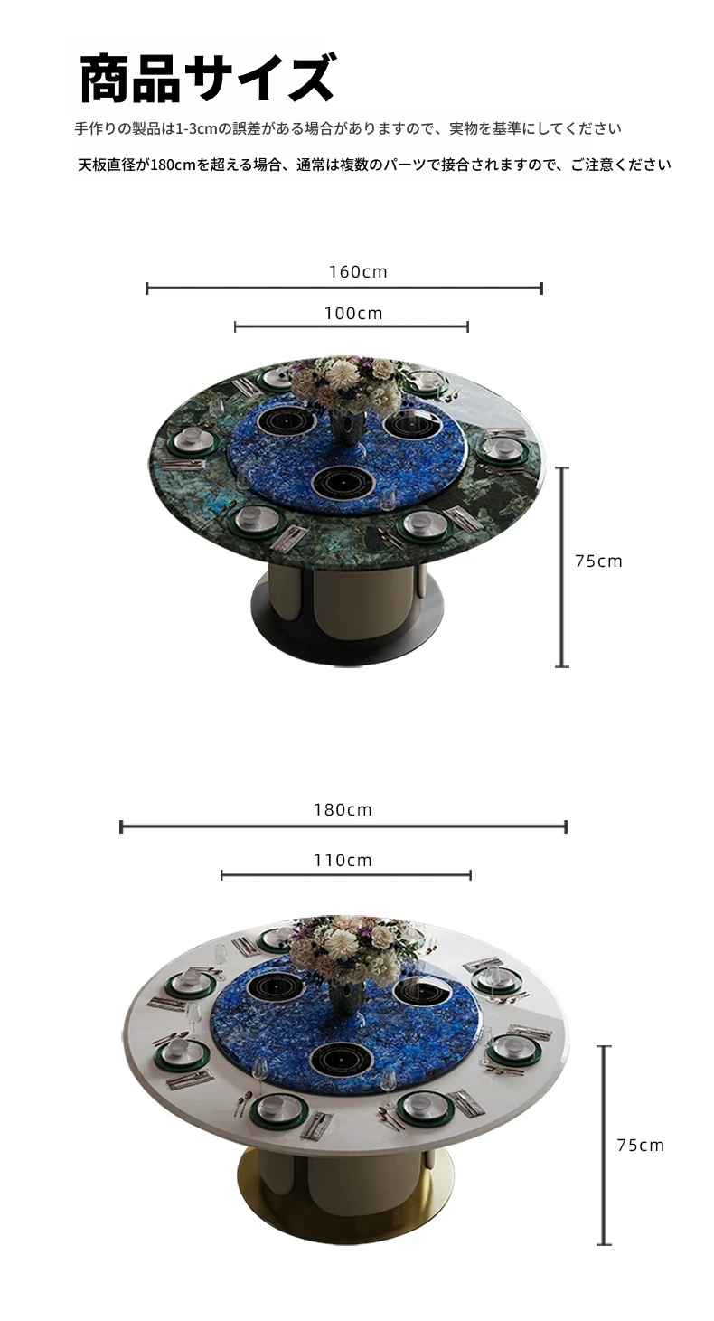 電動テーブル/ブルーサファイア1.8m天板+1.1mターンテーブル 三つの電磁調理器