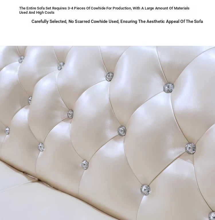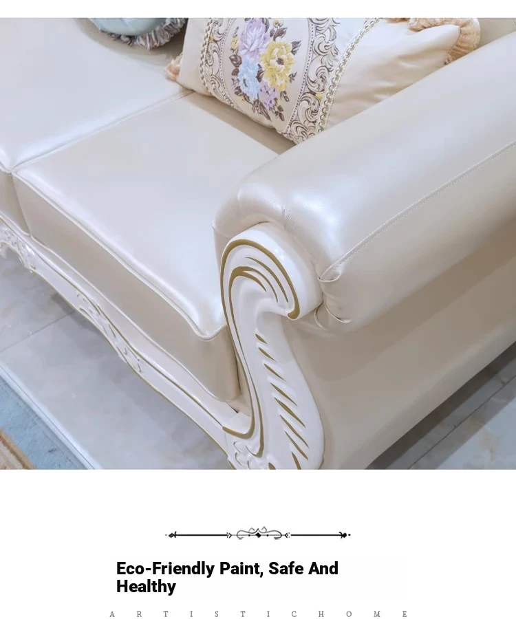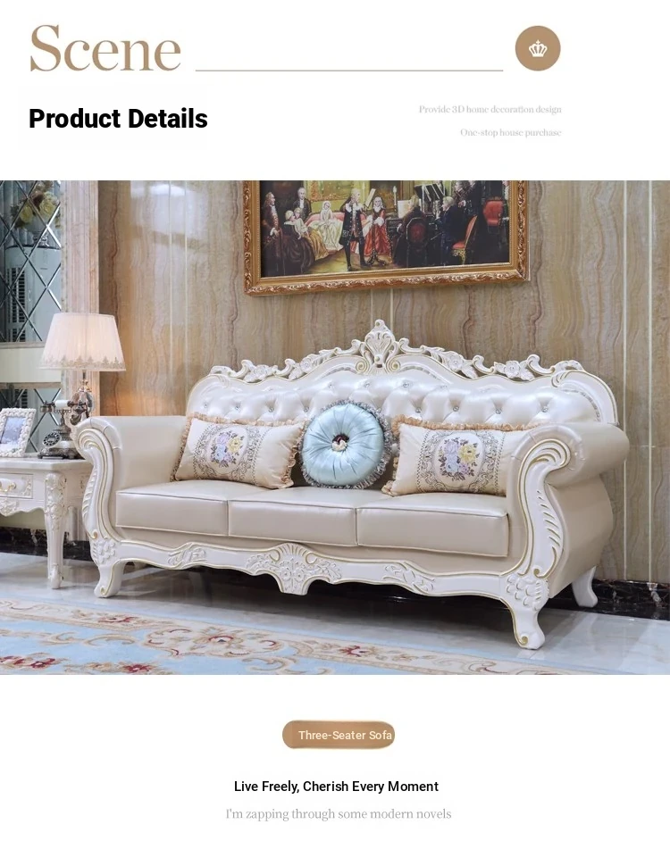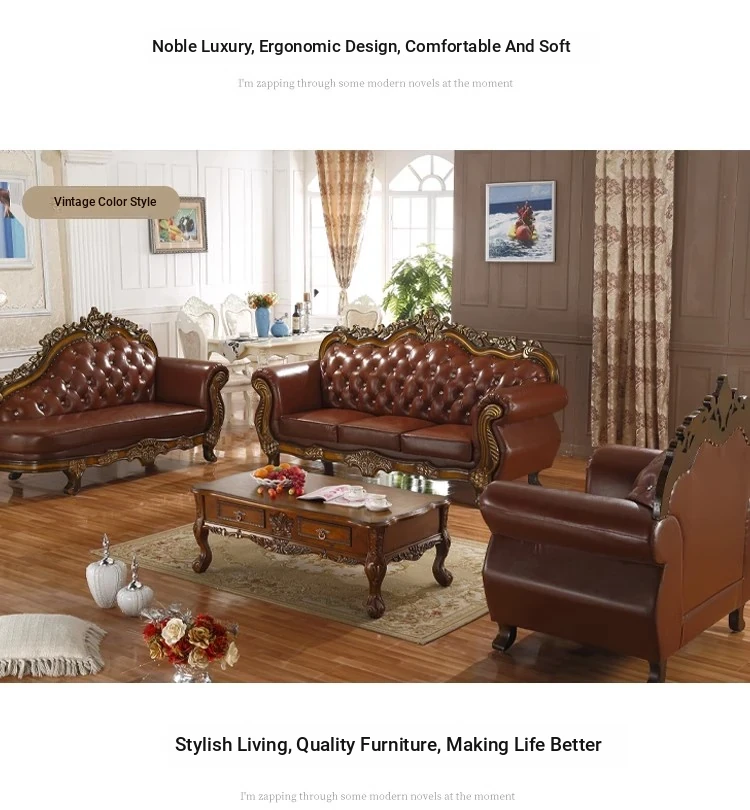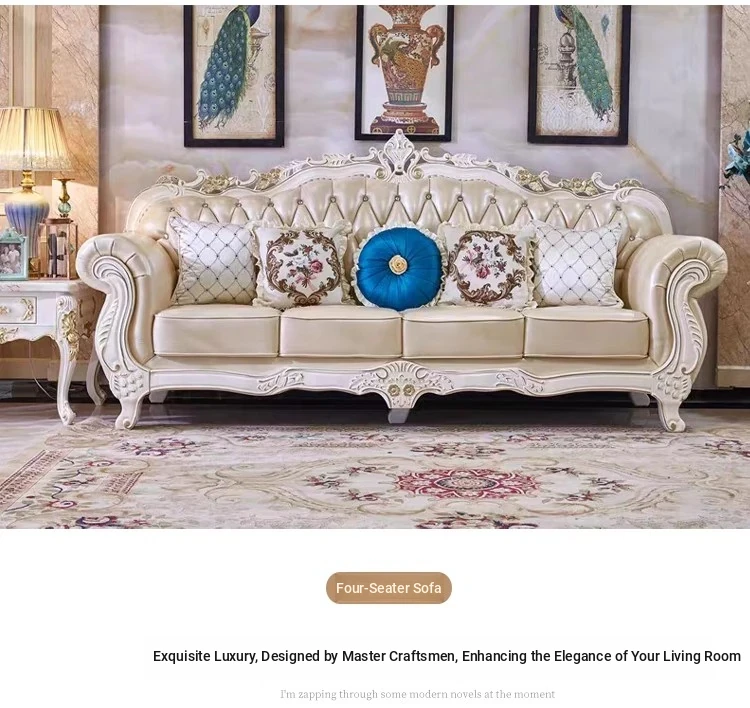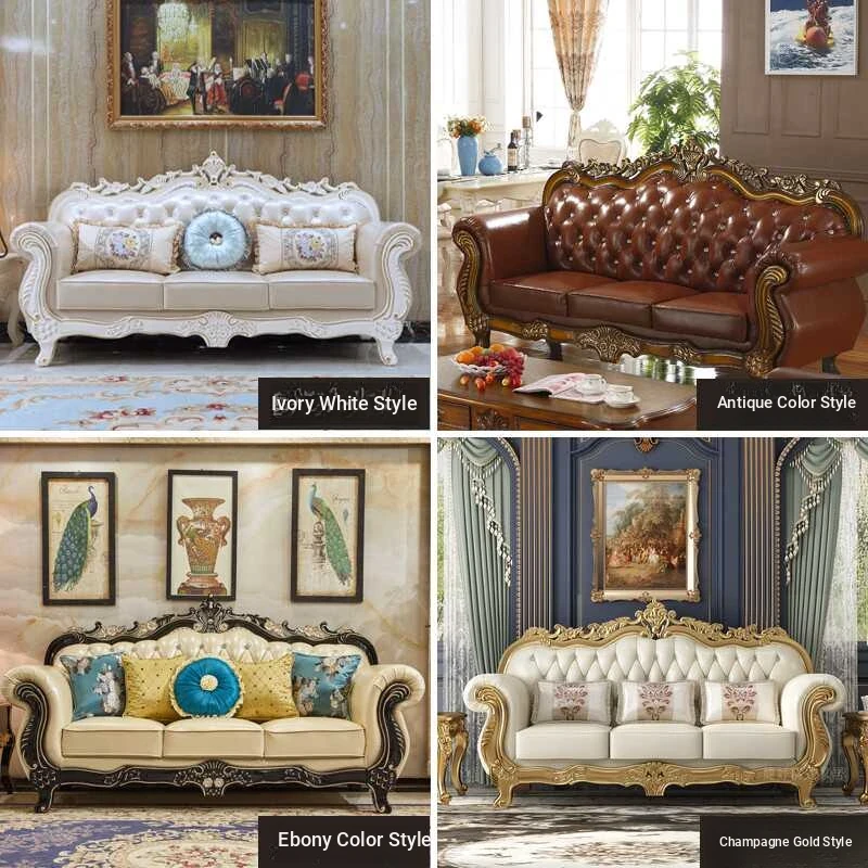 Elegant European Leather Sofa Set - French Ebony Solid Wood Carved Luxury First Layer Cowhide Sofa for Living Room - Stylish 1-2-3 Combination Design