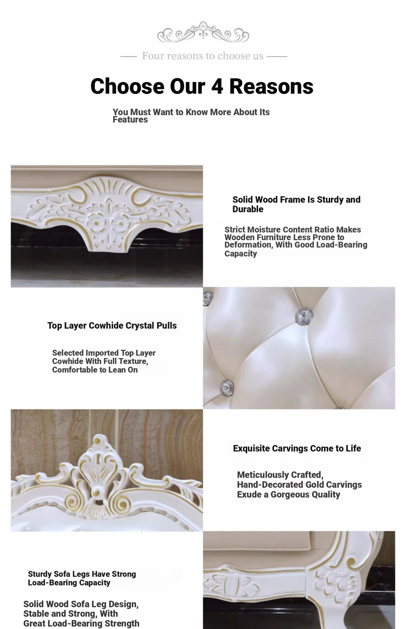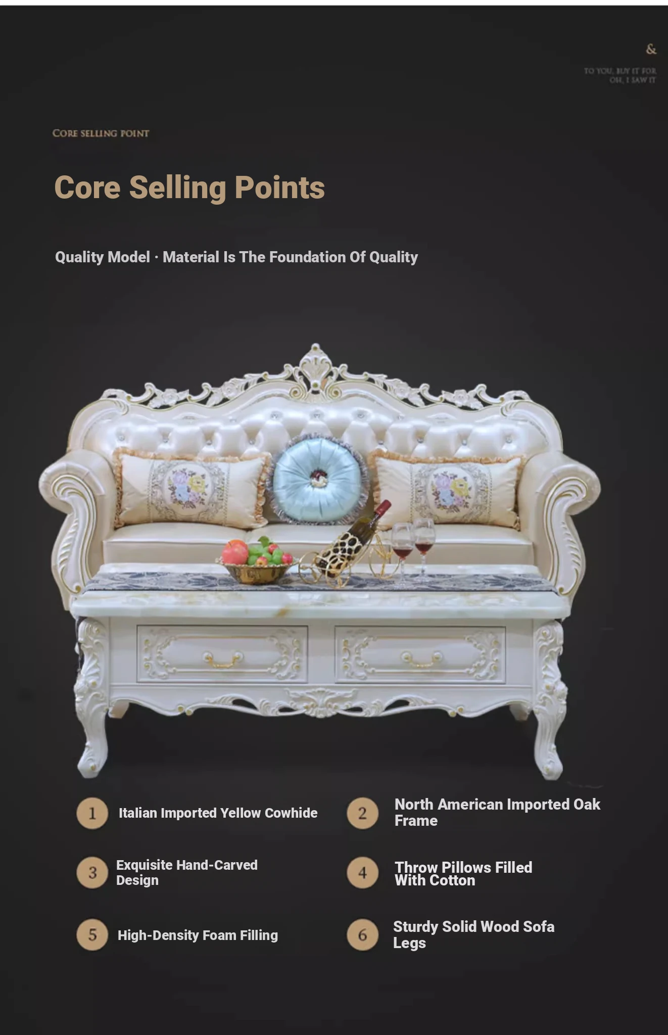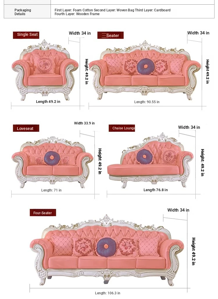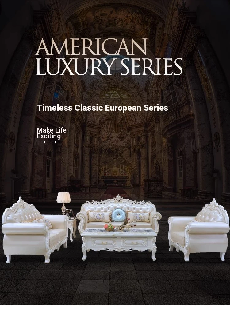 Elegant European Leather Sofa Set - French Ebony Solid Wood Carved Luxury First Layer Cowhide Sofa for Living Room - Stylish 1-2-3 Combination Design