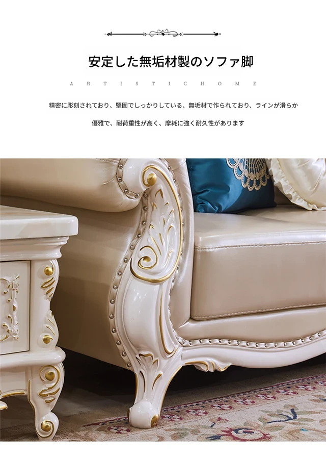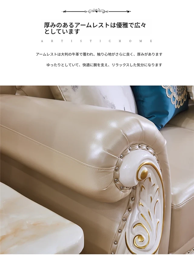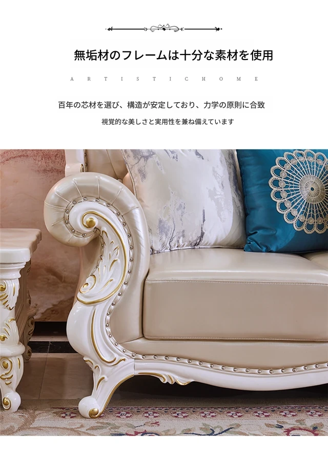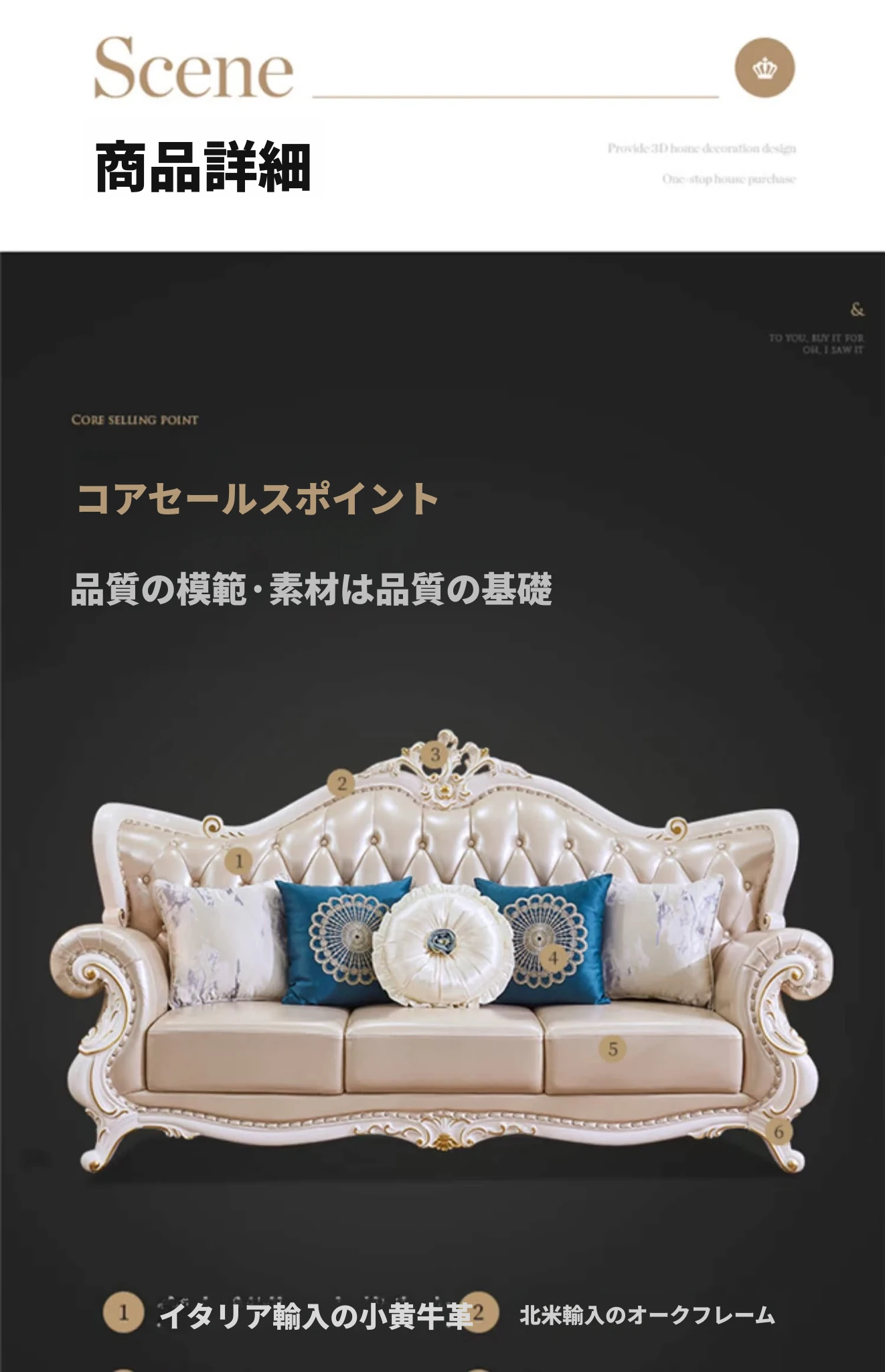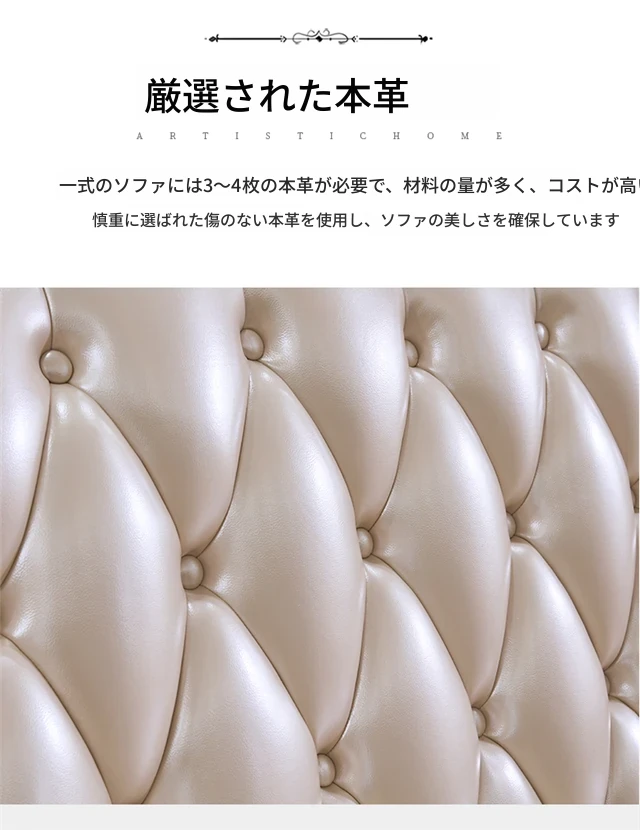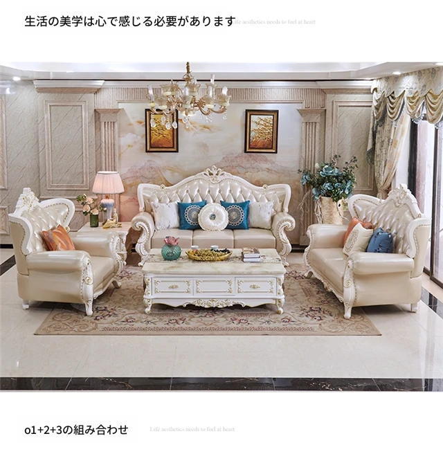 欧風スタイルの123コンビネーションソファ|フランス風ラグジュアリー大サイズ|本革使用の高品質ファニチャーで、優雅なリビング空間を演出!