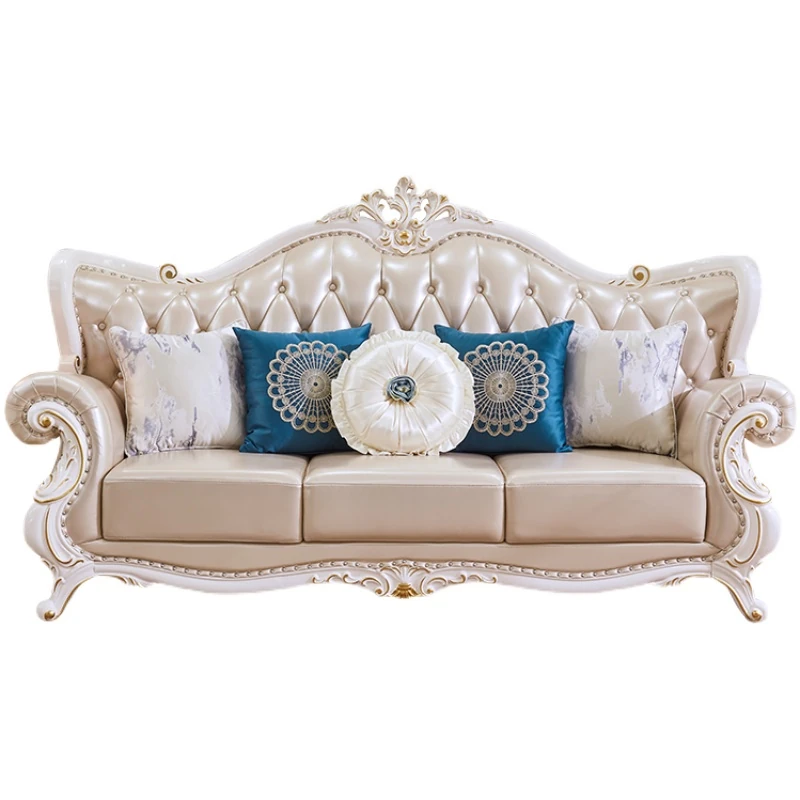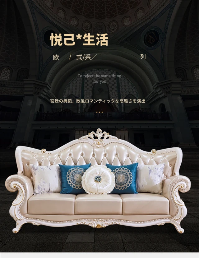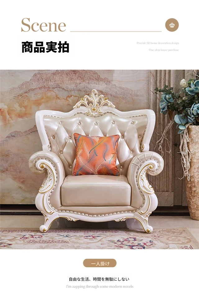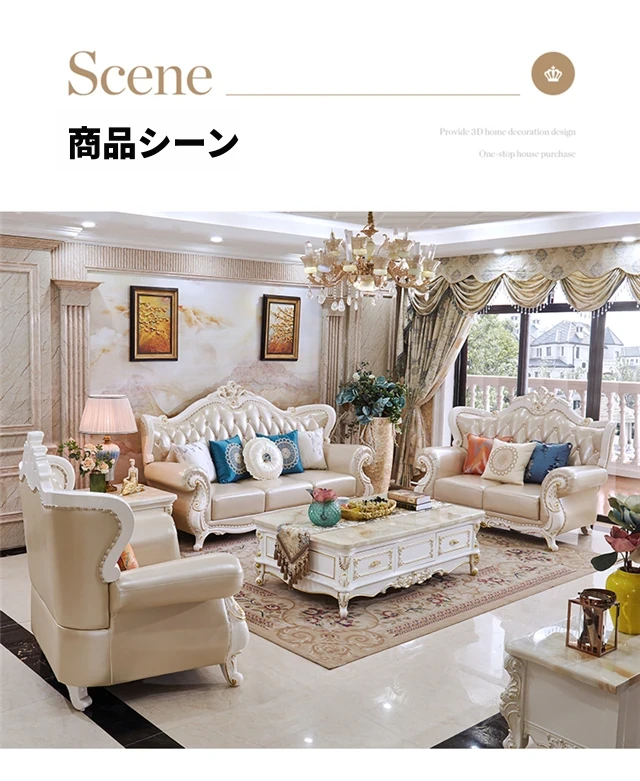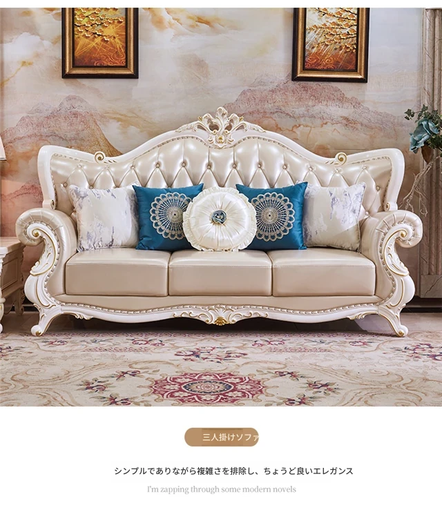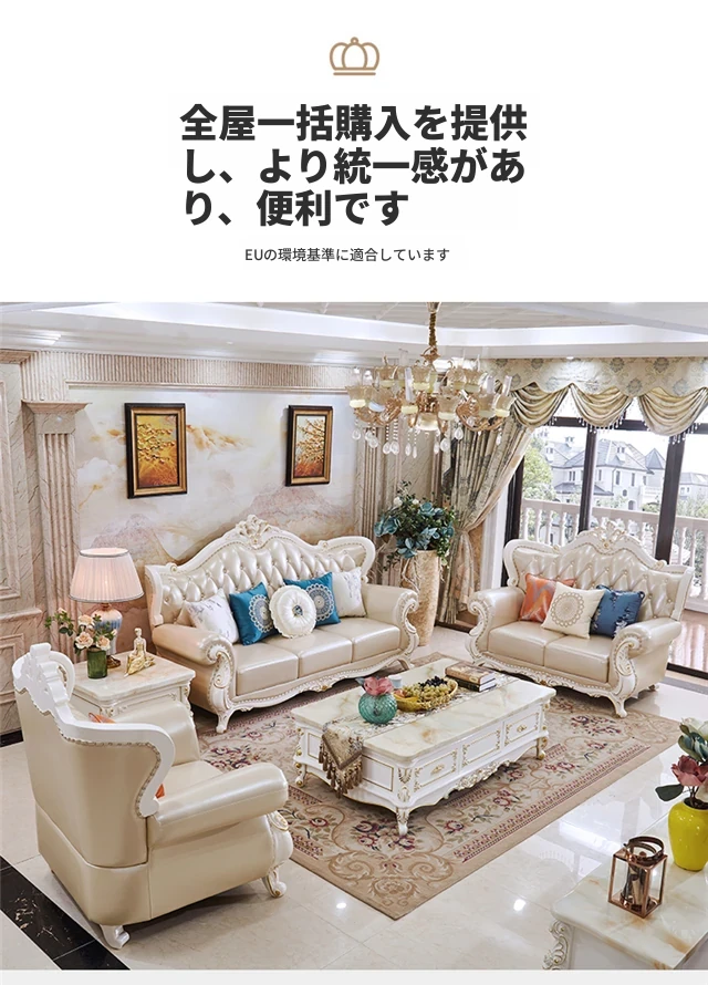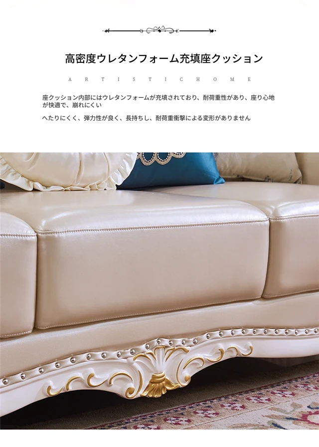 欧風スタイルの123コンビネーションソファ|フランス風ラグジュアリー大サイズ|本革使用の高品質ファニチャーで、優雅なリビング空間を演出!