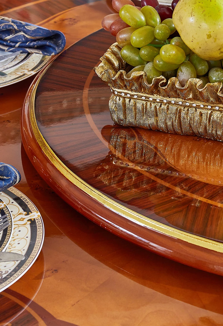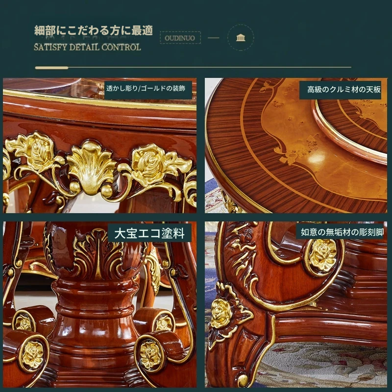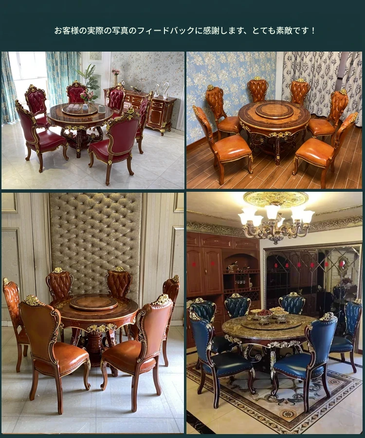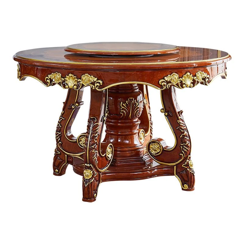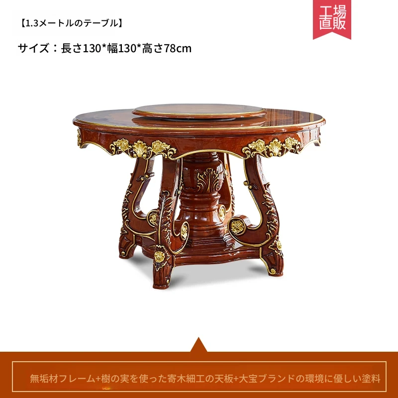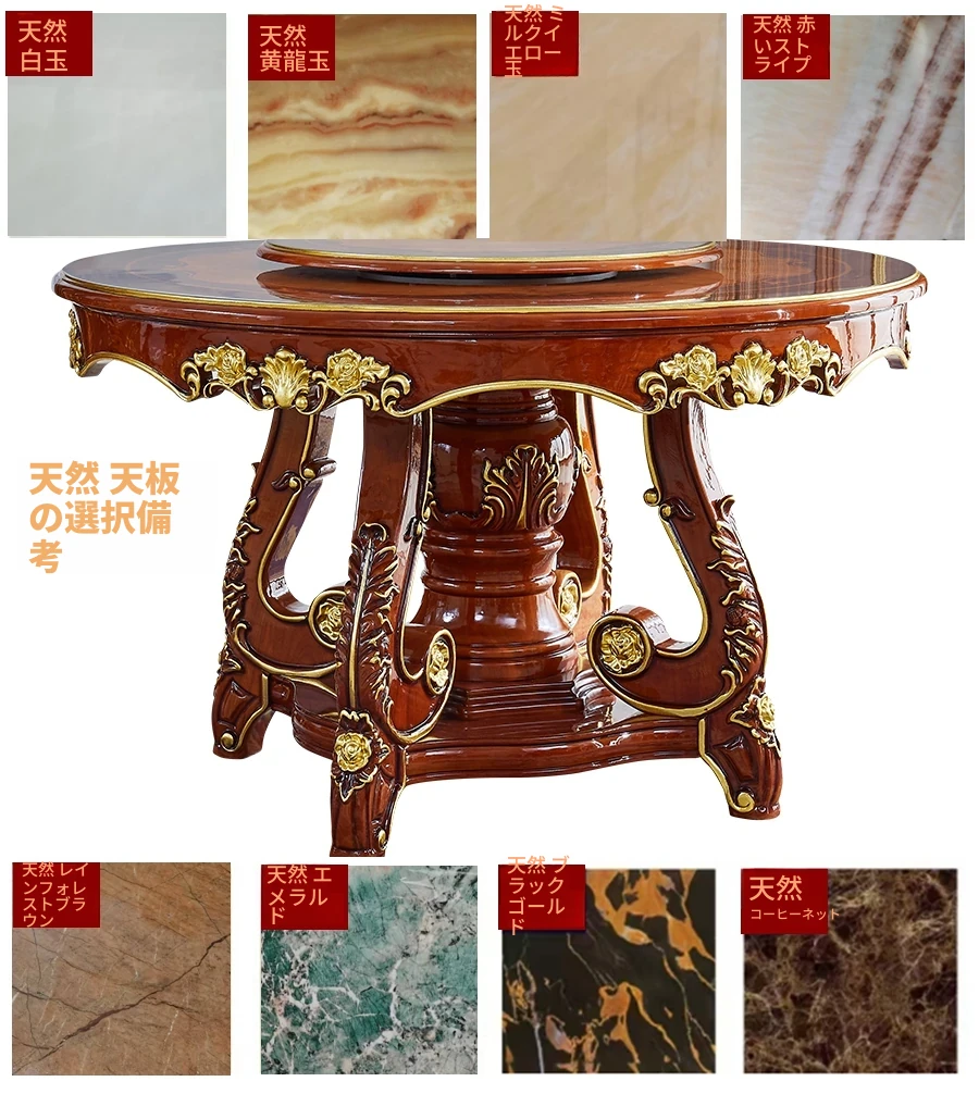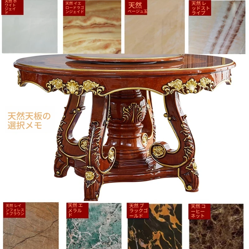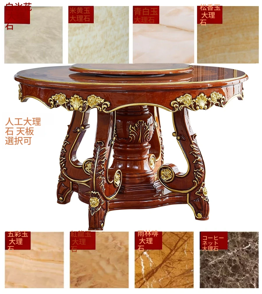 ヨーロピアンスタイルの無垢材ラウンドテーブル、大理石仕上げのアメリカンスタイルダイニングセット。回転式鍋テーブル付きで、家庭での食事を特別なひとときに演出します!