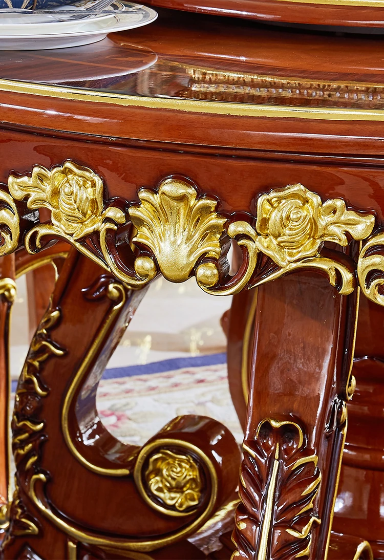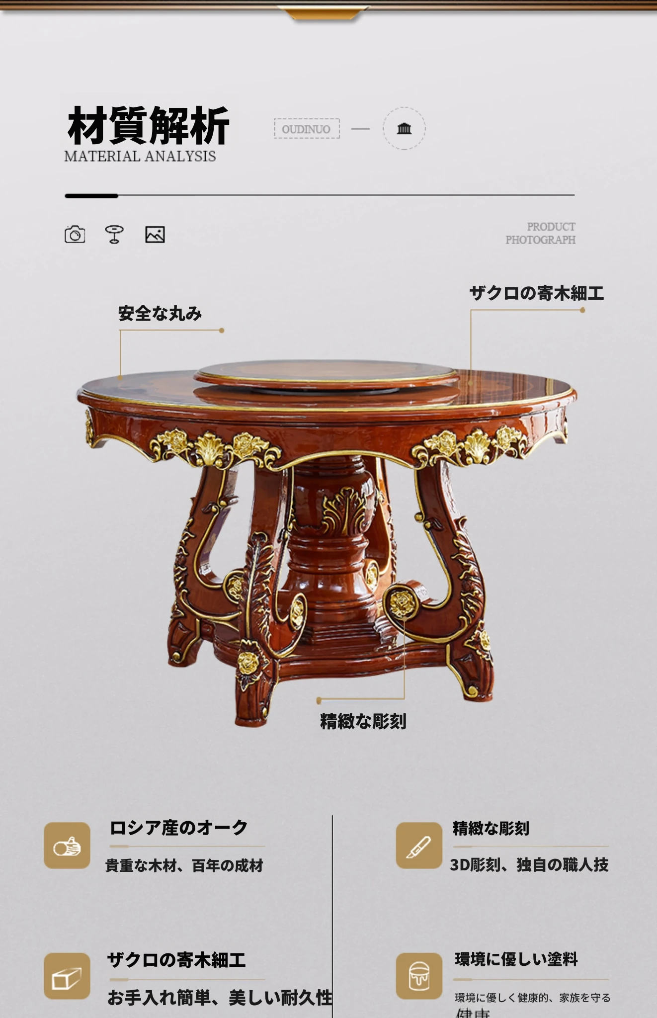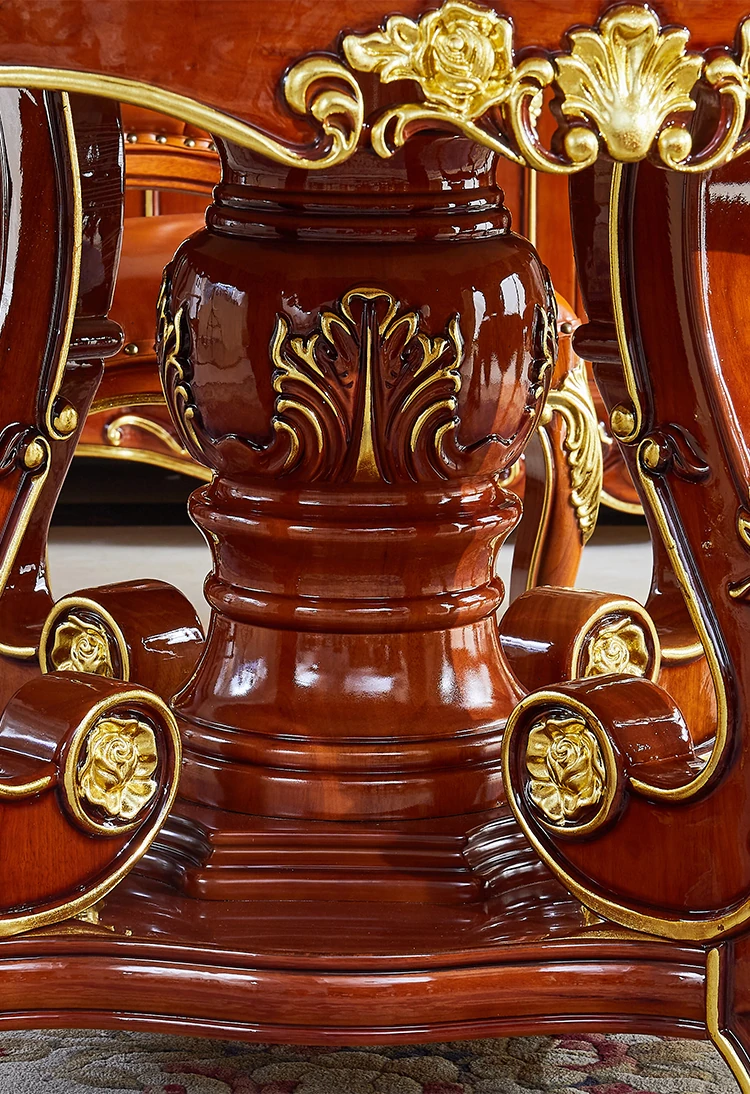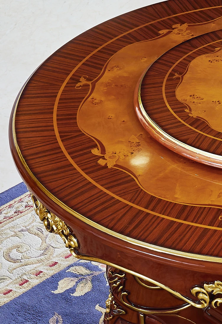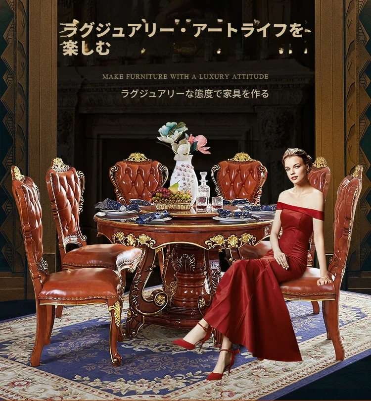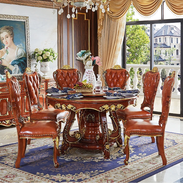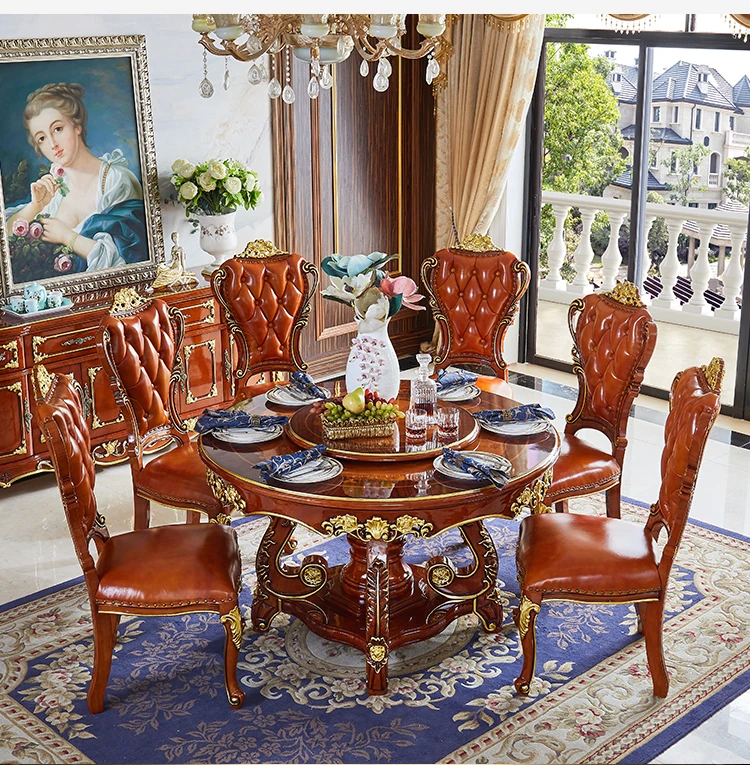 ヨーロピアンスタイルの無垢材ラウンドテーブル、大理石仕上げのアメリカンスタイルダイニングセット。回転式鍋テーブル付きで、家庭での食事を特別なひとときに演出します!