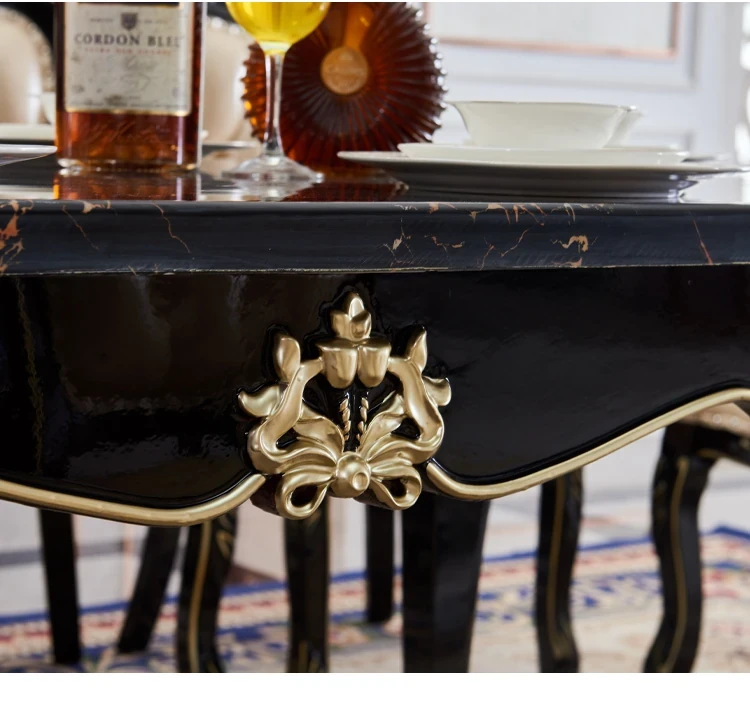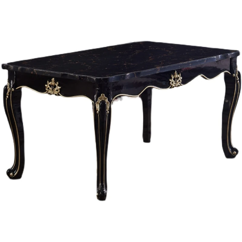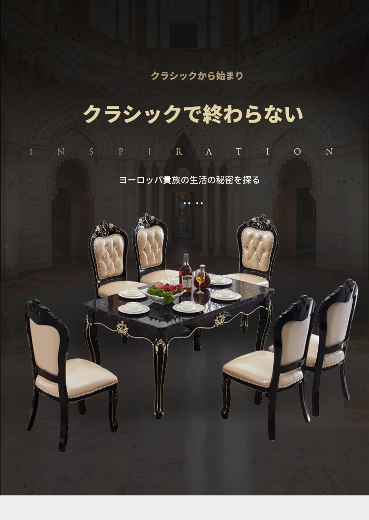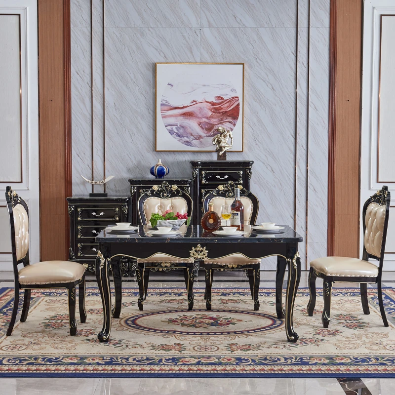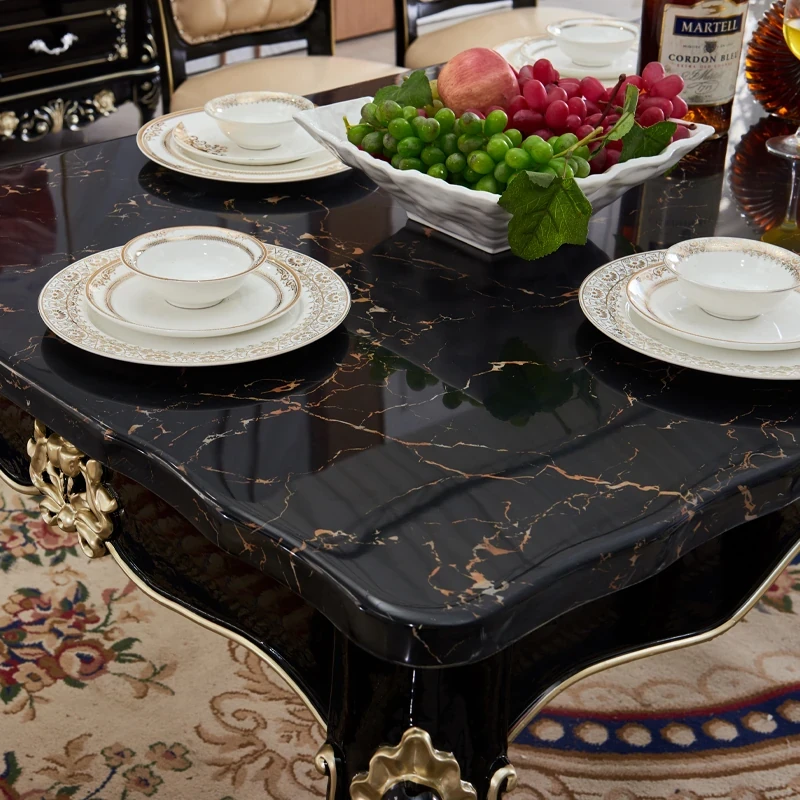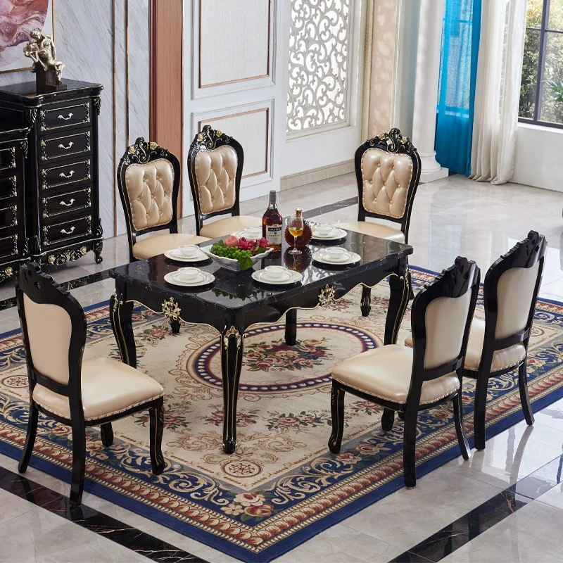 欧風マーブルダイニングテーブルセット|全無垢材使用の長方形テーブル|現代のシンプルなデザイン|大小の住宅に最適な家庭用食卓